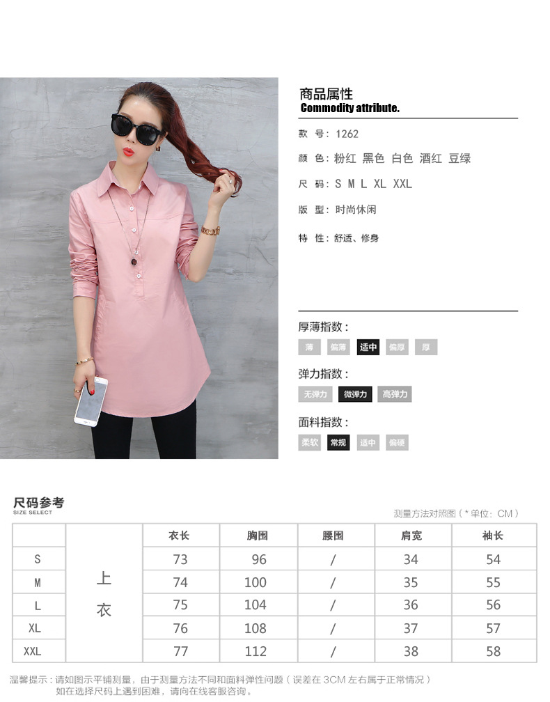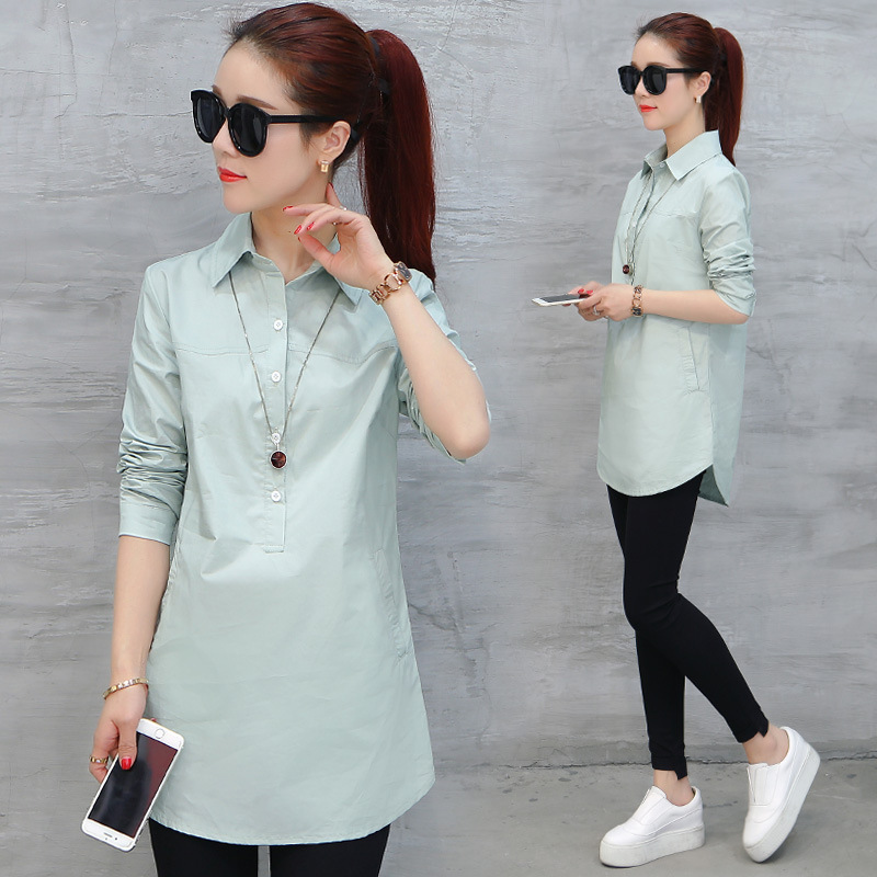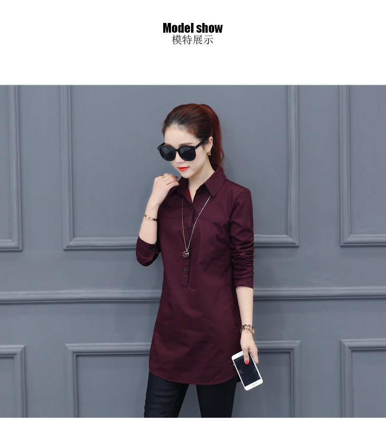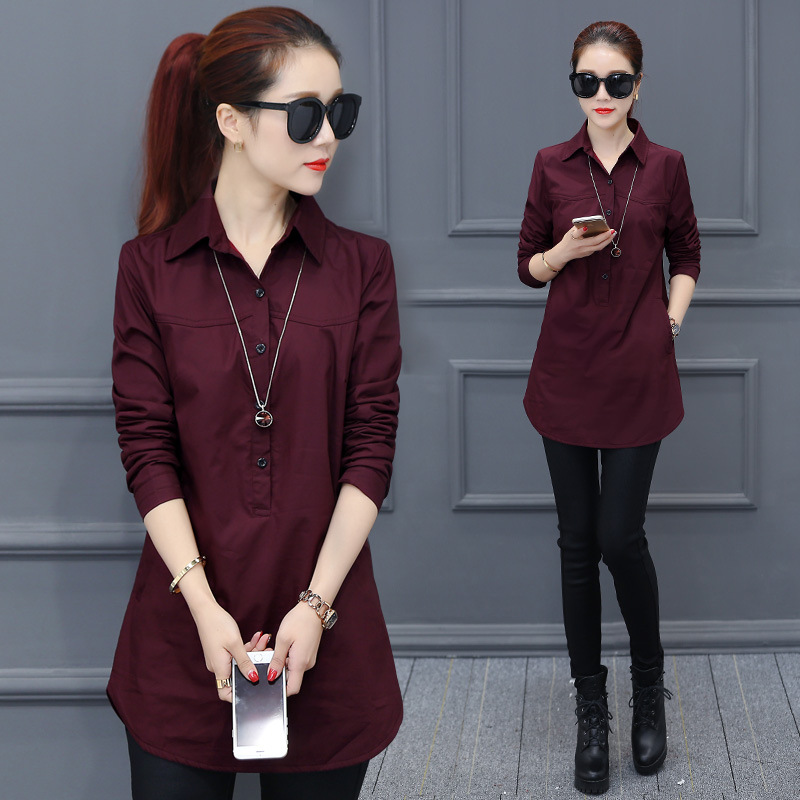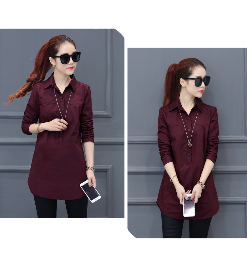 중장 셔츠 여성용 긴팔 캐주얼 베이스 탑 봄과 가을 한국 스타일 도시 스타일 슬림 핏 A 라인 옷깃 셔츠스토어 가기