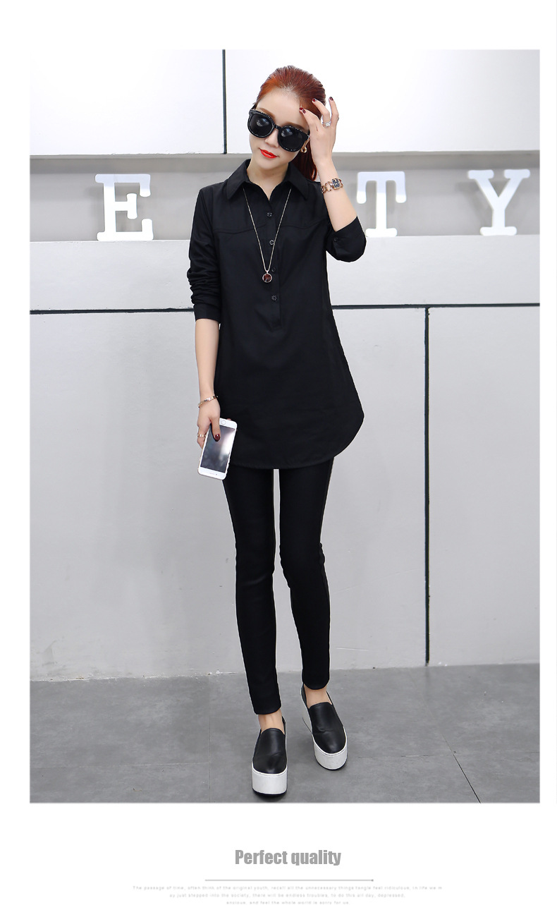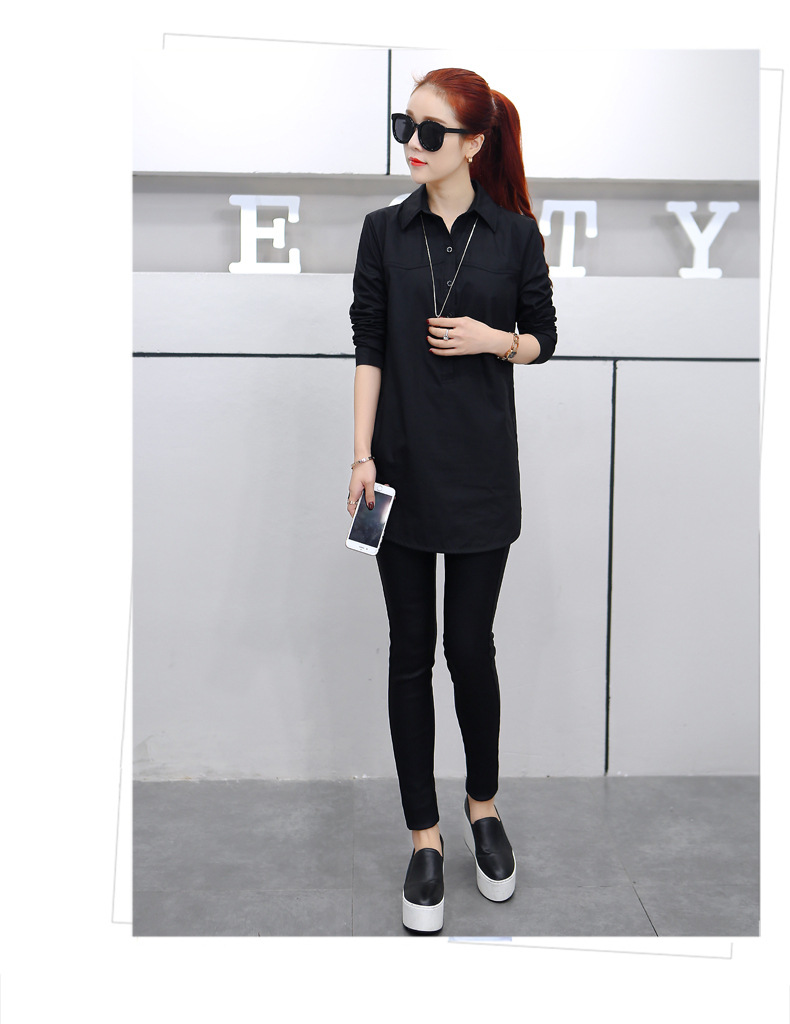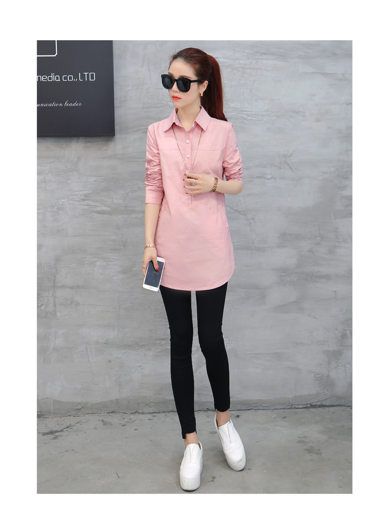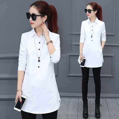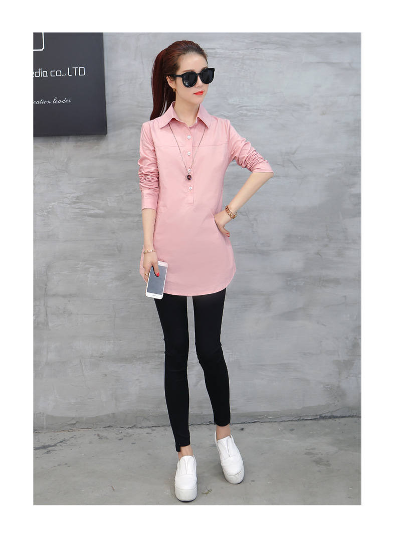 중장 셔츠 여성용 긴팔 캐주얼 베이스 탑 봄과 가을 한국 스타일 도시 스타일 슬림 핏 A 라인 옷깃 셔츠스토어 가기