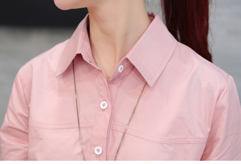 중장 셔츠 여성용 긴팔 캐주얼 베이스 탑 봄과 가을 한국 스타일 도시 스타일 슬림 핏 A 라인 옷깃 셔츠