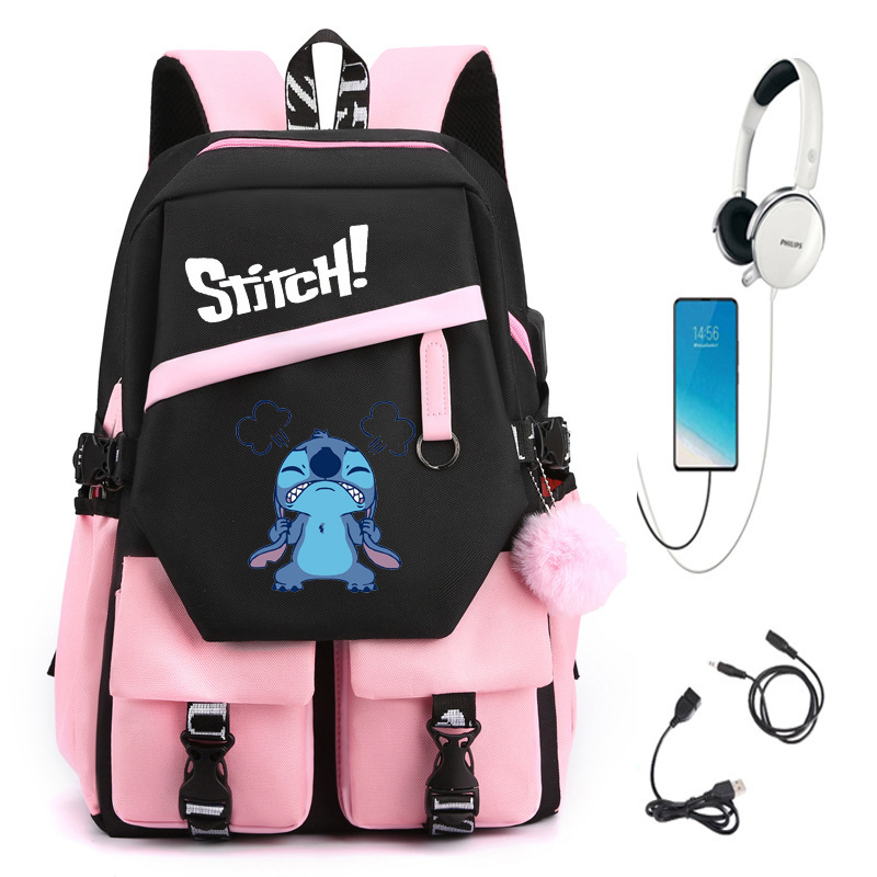 남성과 여성 학생을위한 국경 간 새로운 스티치 스티치 스티치 USB 충전 스쿨백 배낭 여행 가방