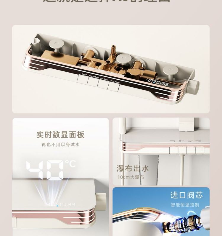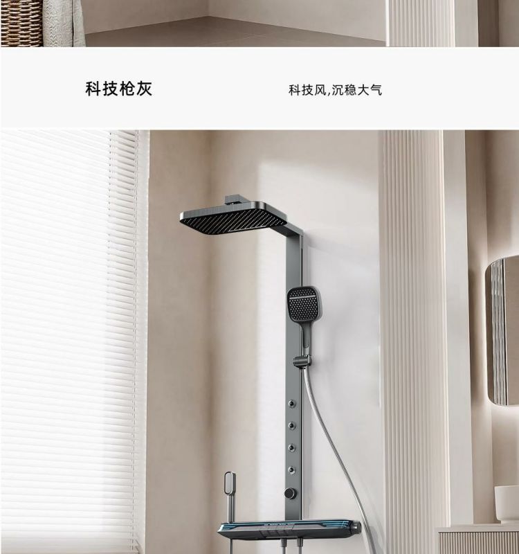 독일 총 회색 피아노 키 온도 조절 샤워 샤워 세트 디지털 디스플레이 욕실 목욕 슈퍼 모든 구리스토어 가기