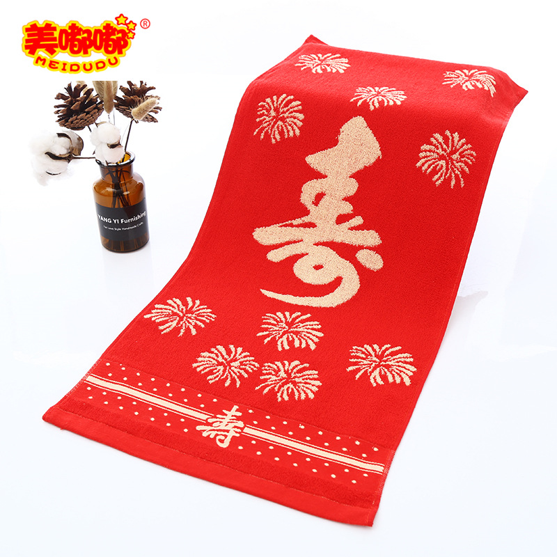 코튼 자카드 빅 레드 생일 축하 불꽃 놀이 Shou Zi 32 공유 헤어 페이딩 선물 생일 축하 타월스토어 가기