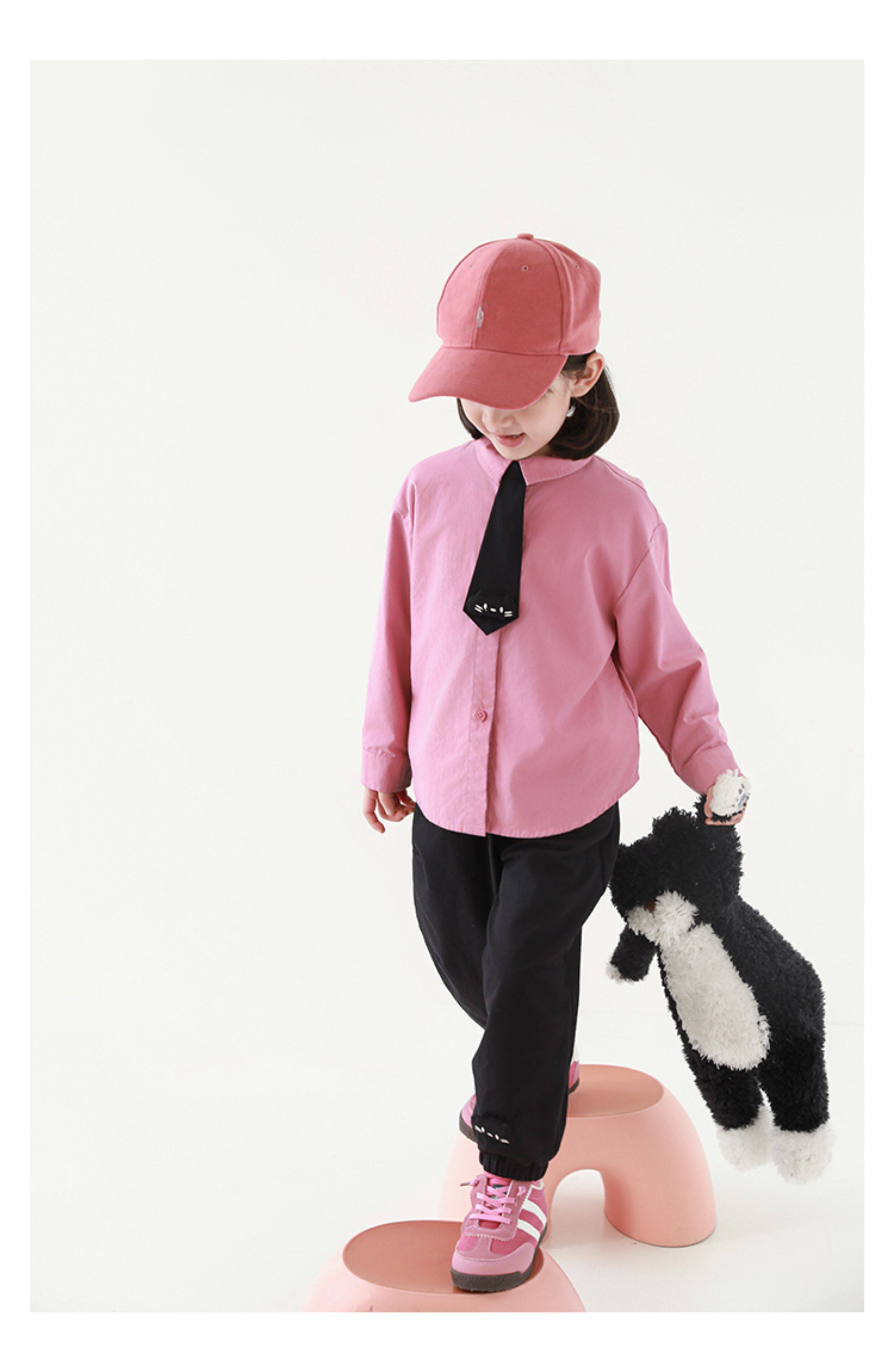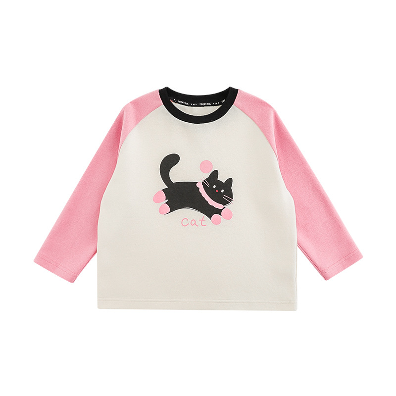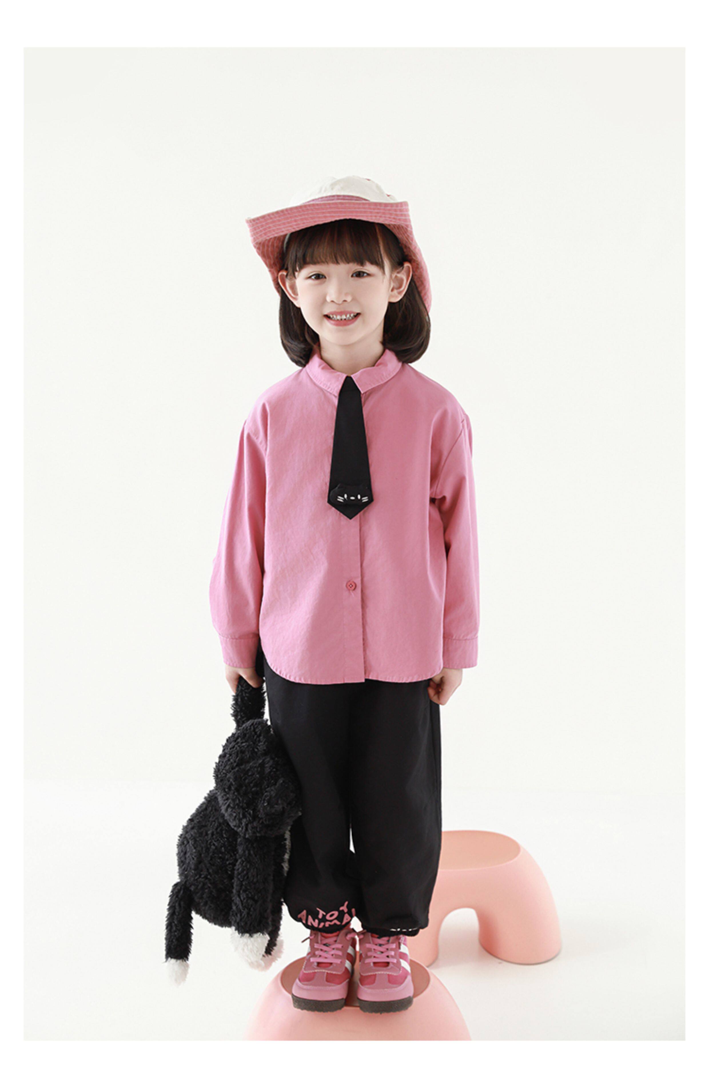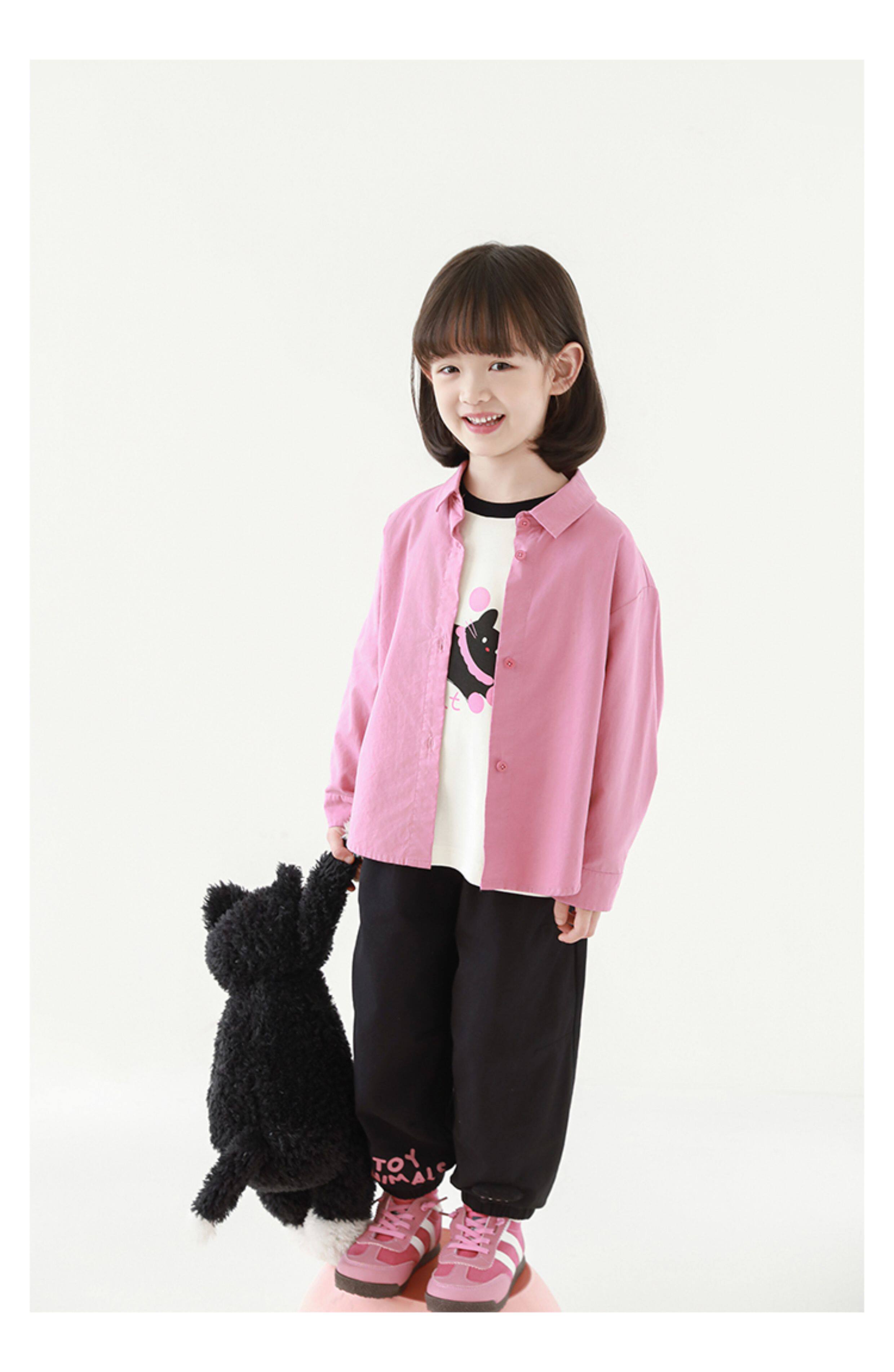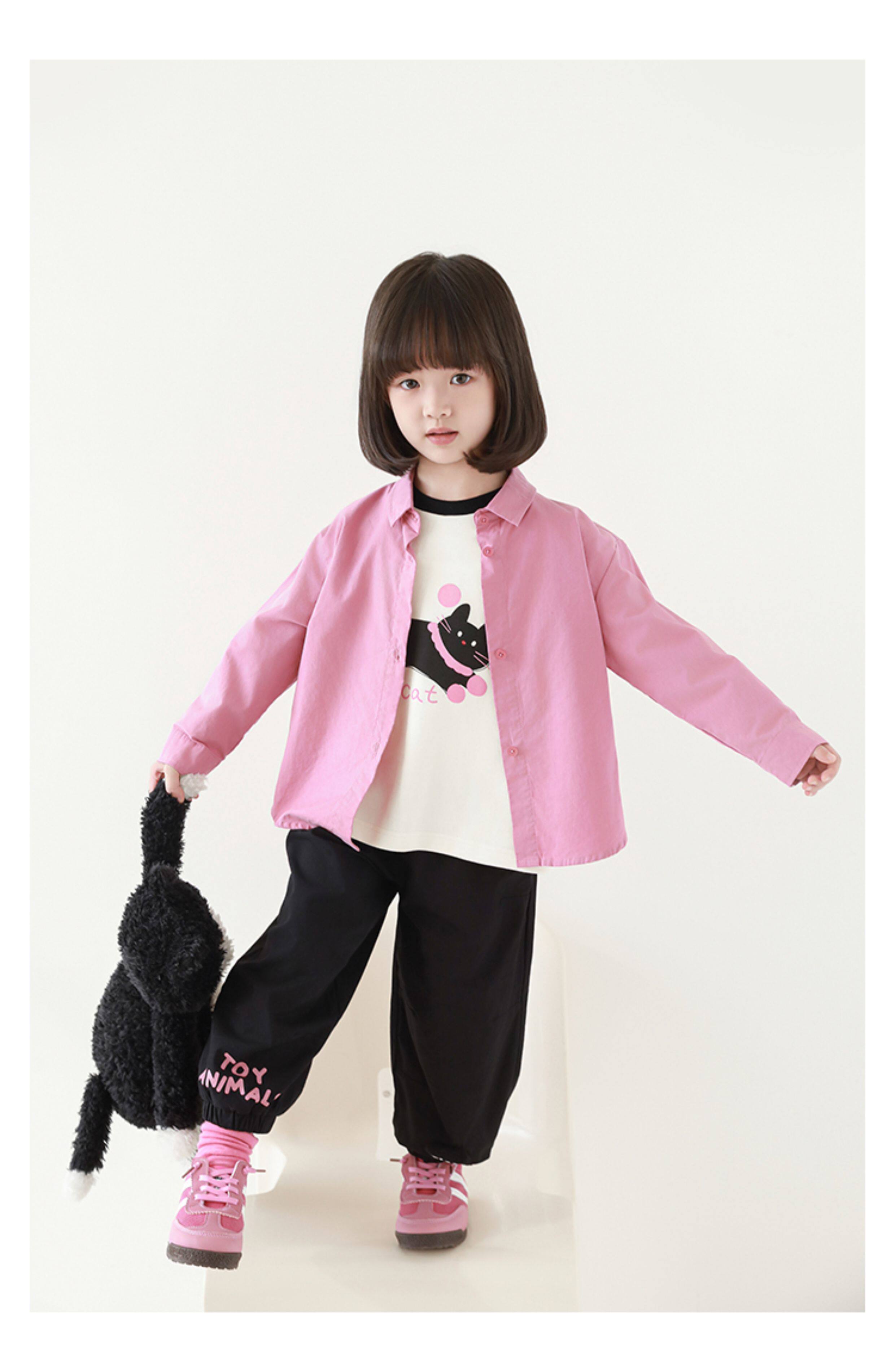 우리부이 여아 귀여운 애완동물 파라다이스 시리즈 봄 배색 래글런 티셔츠 심플하고 상큼한 카라 셔츠와 바지스토어 가기