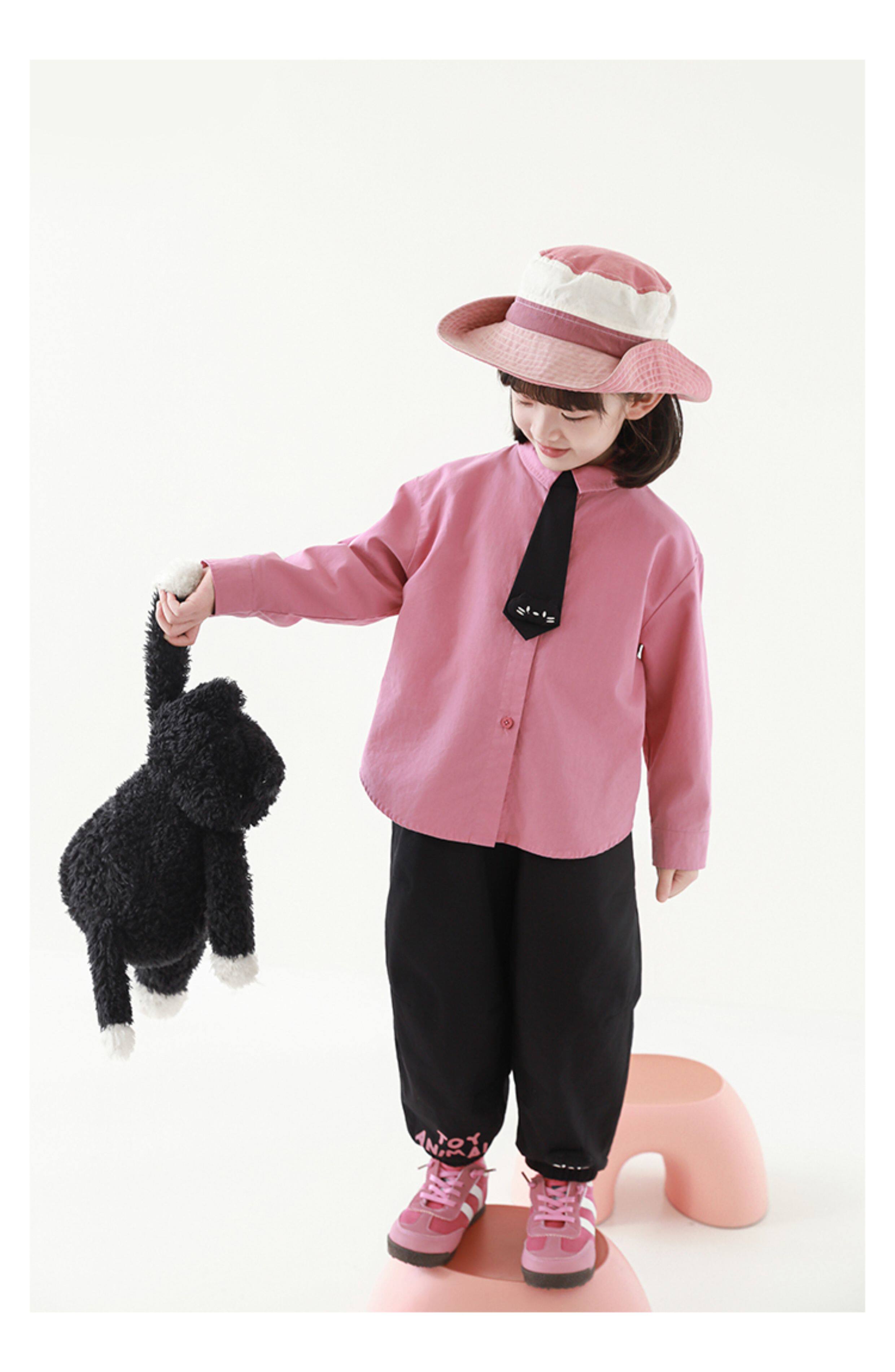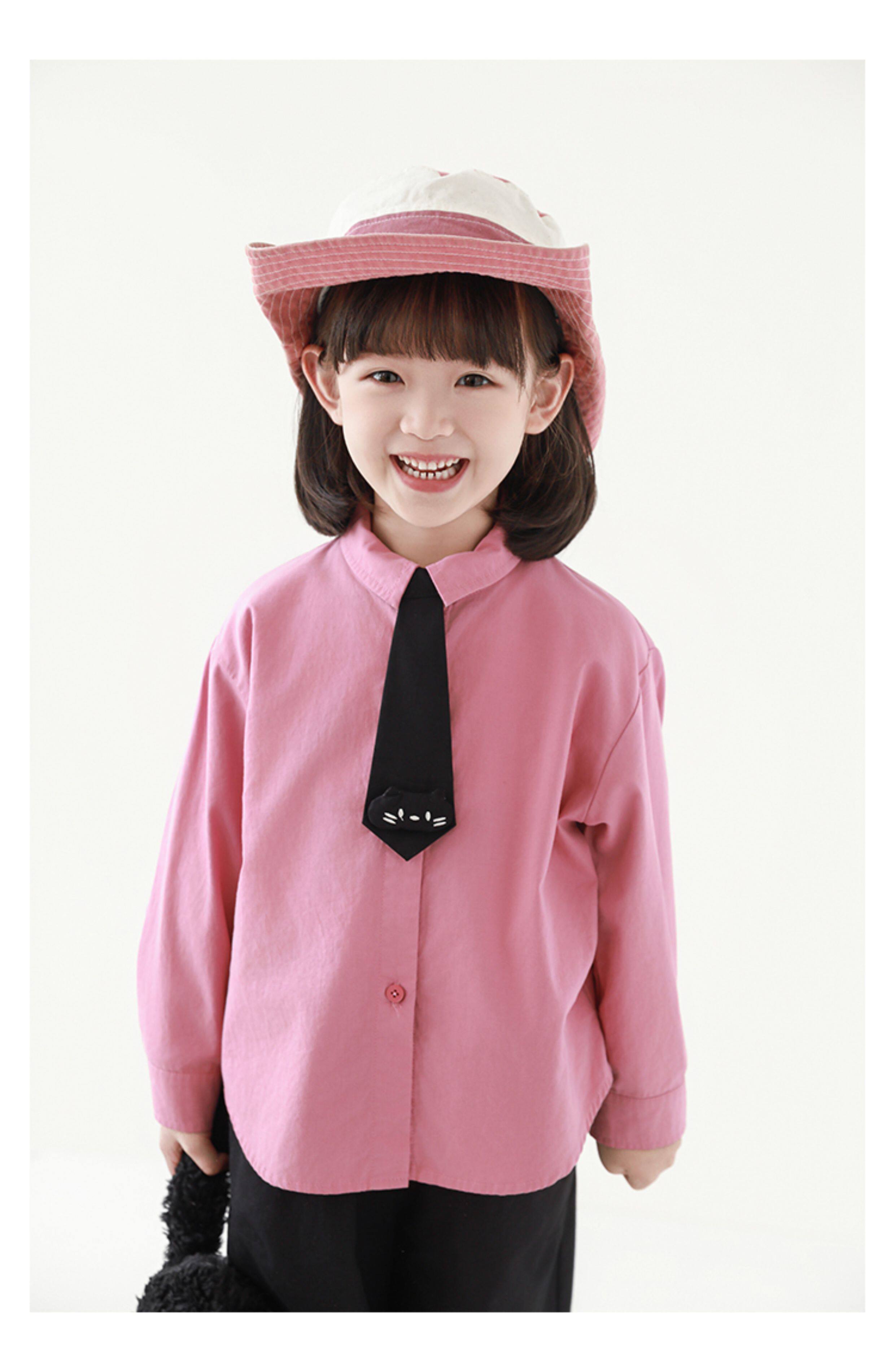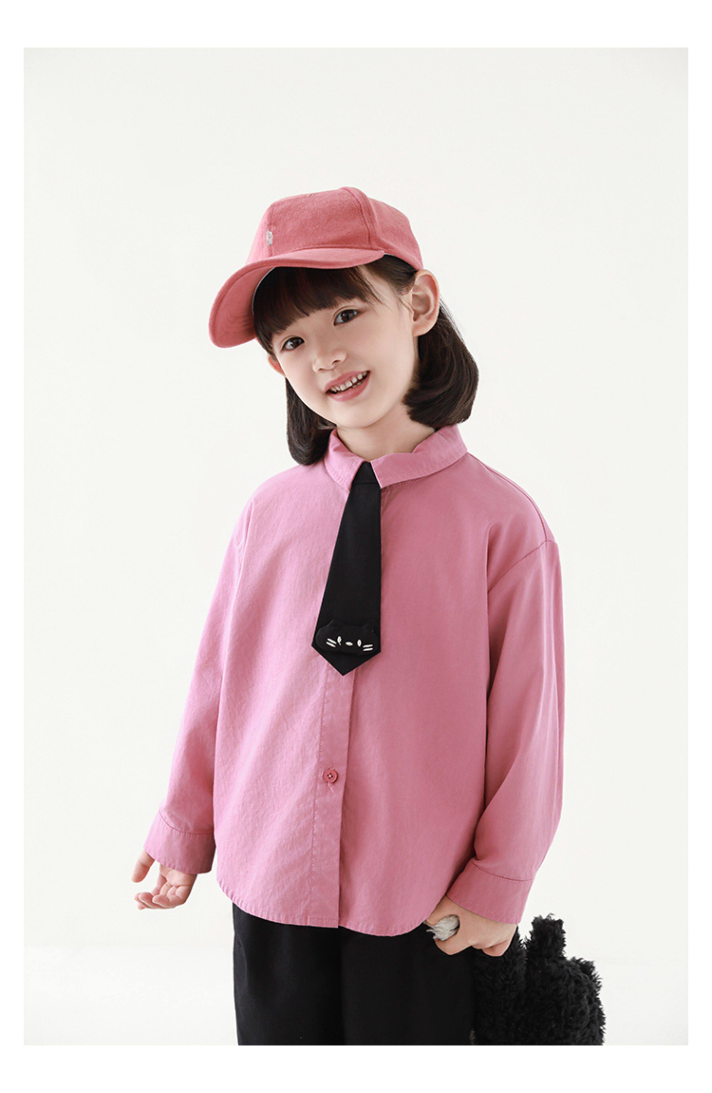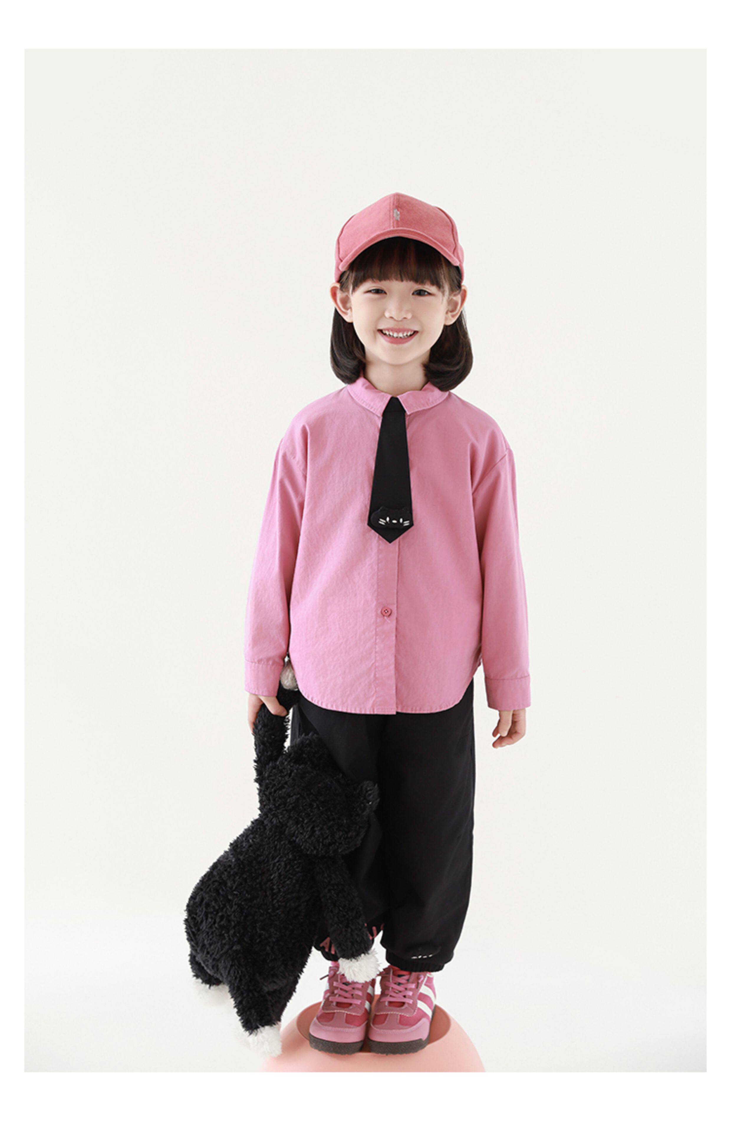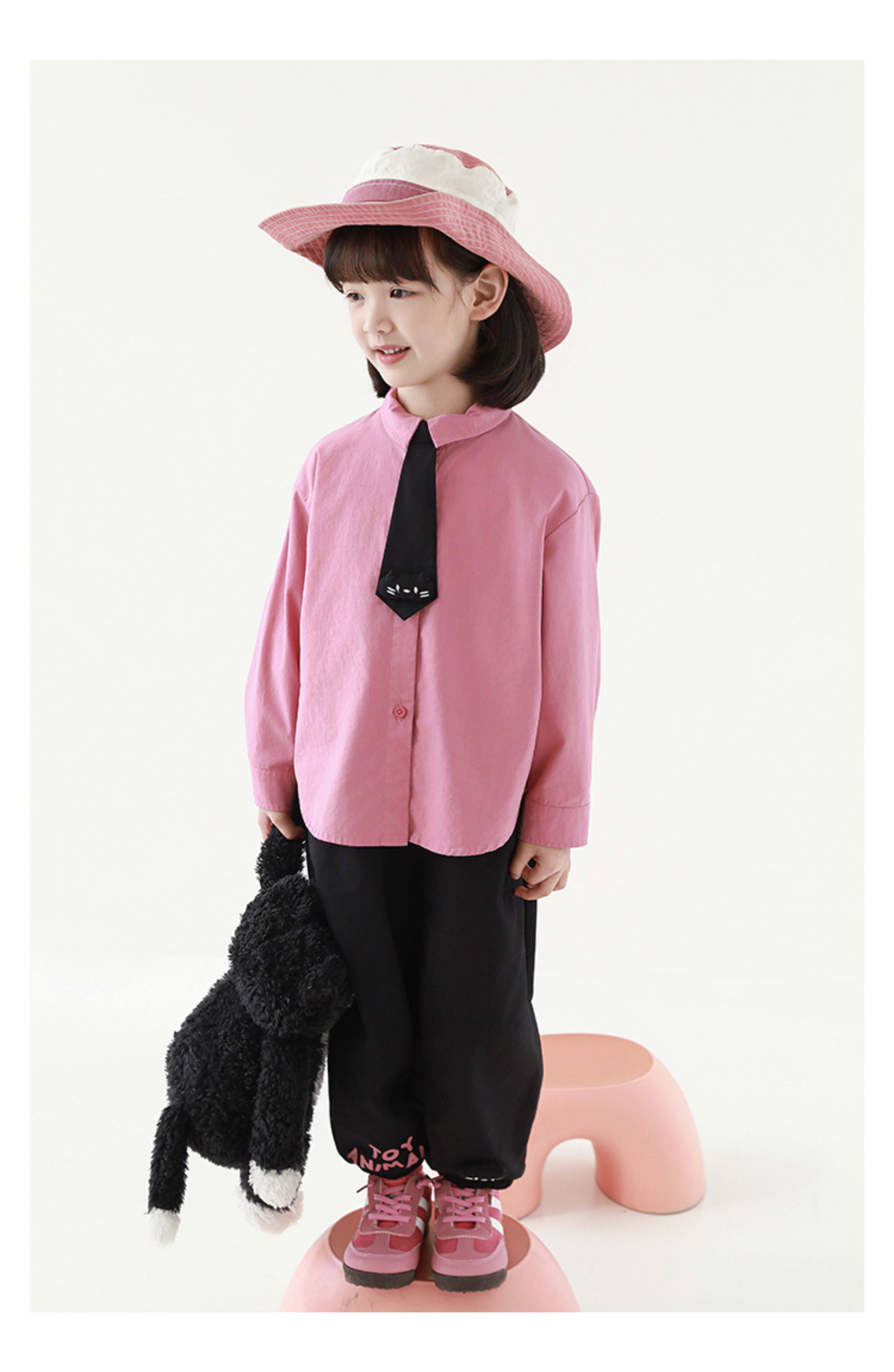 우리부이 여아 귀여운 애완동물 파라다이스 시리즈 봄 배색 래글런 티셔츠 심플하고 상큼한 카라 셔츠와 바지스토어 가기