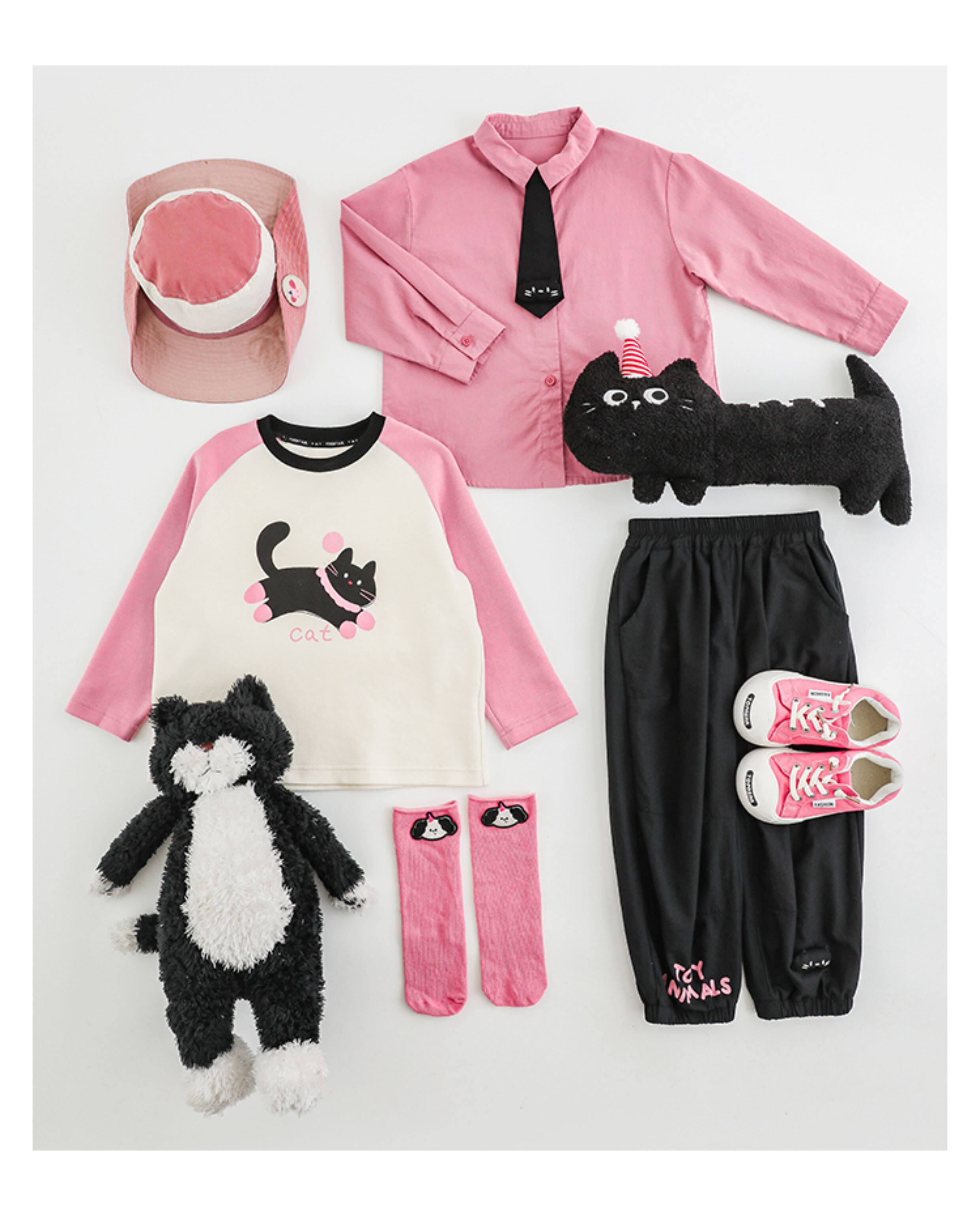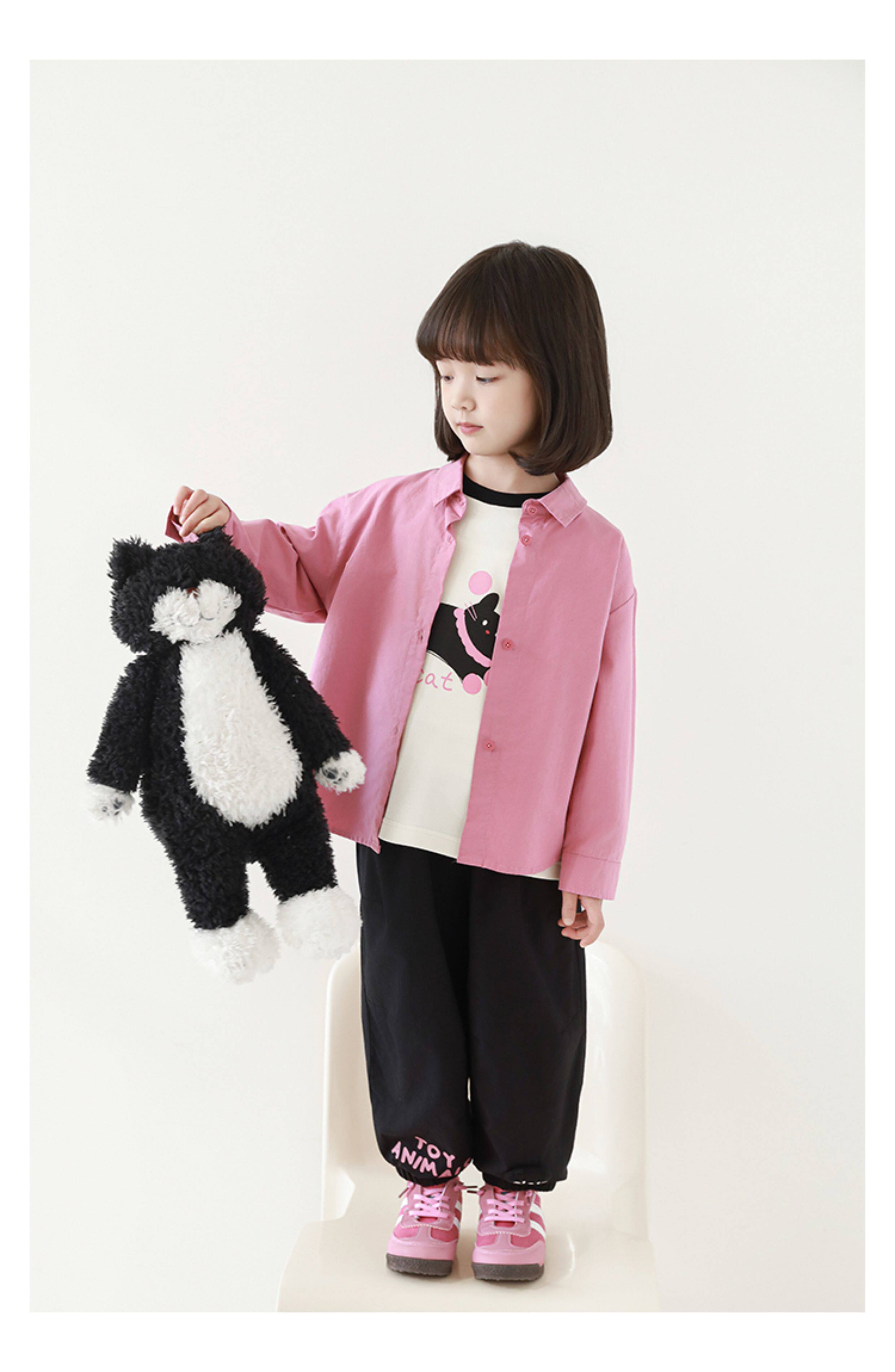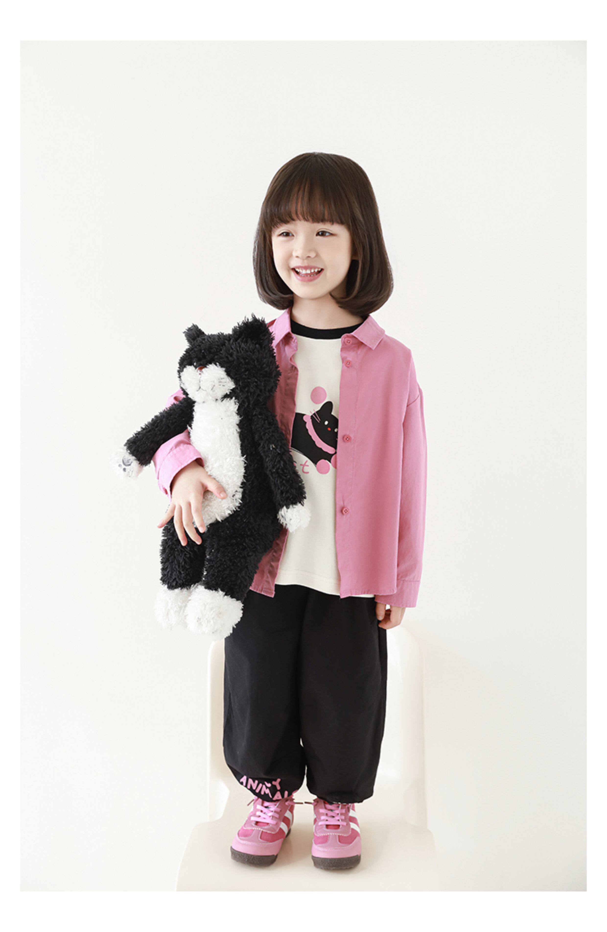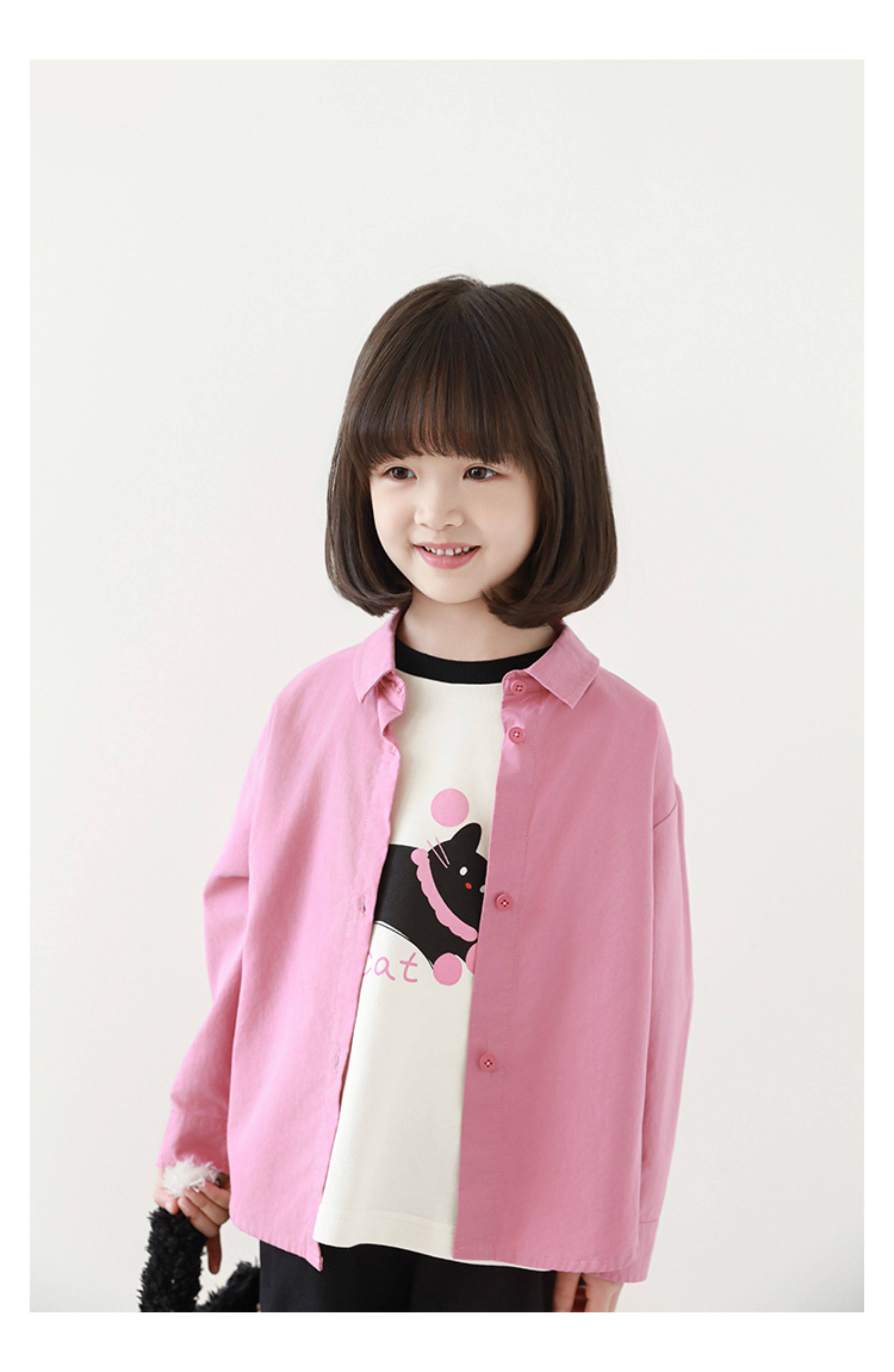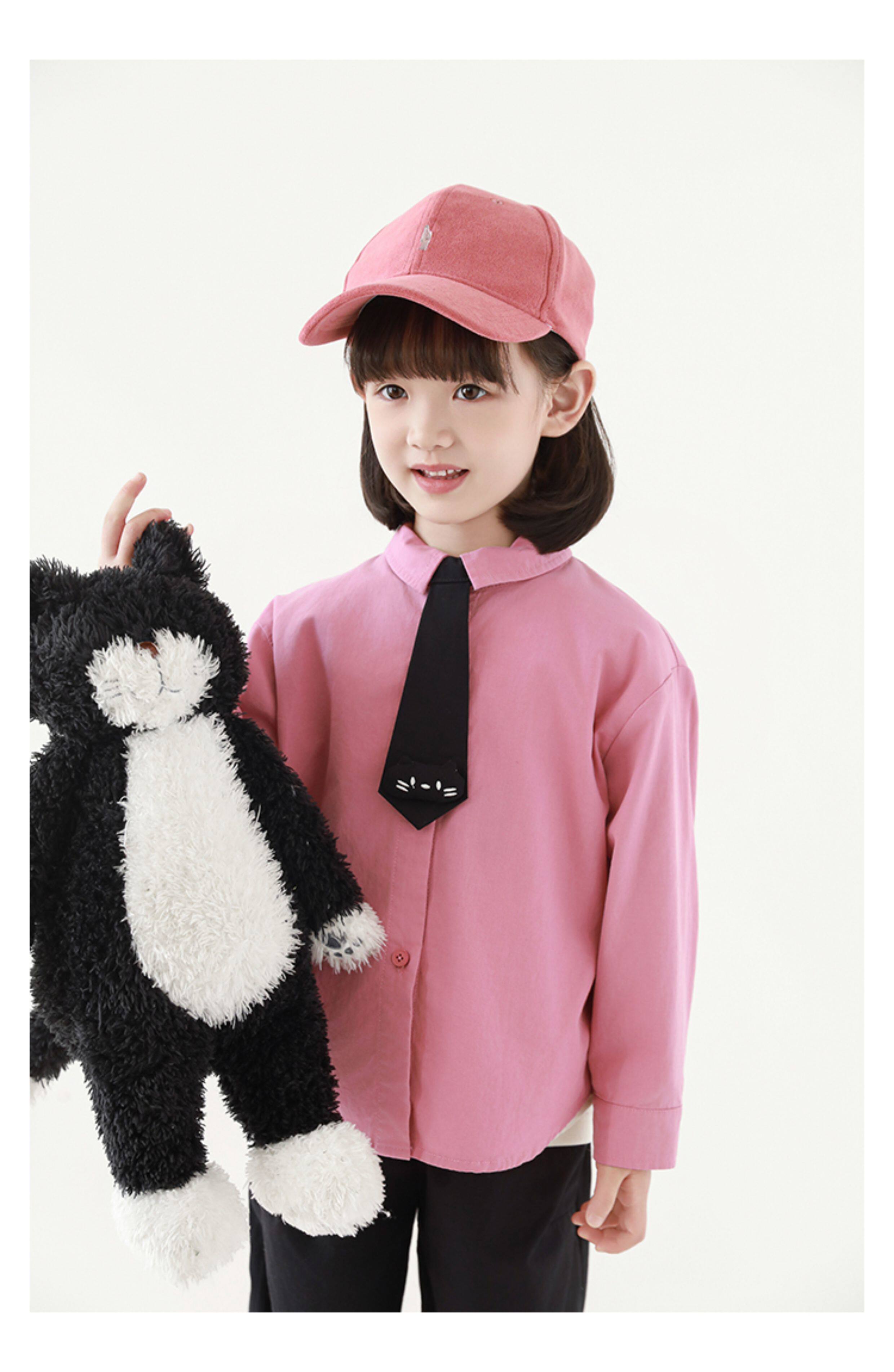 우리부이 여아 귀여운 애완동물 파라다이스 시리즈 봄 배색 래글런 티셔츠 심플하고 상큼한 카라 셔츠와 바지스토어 가기