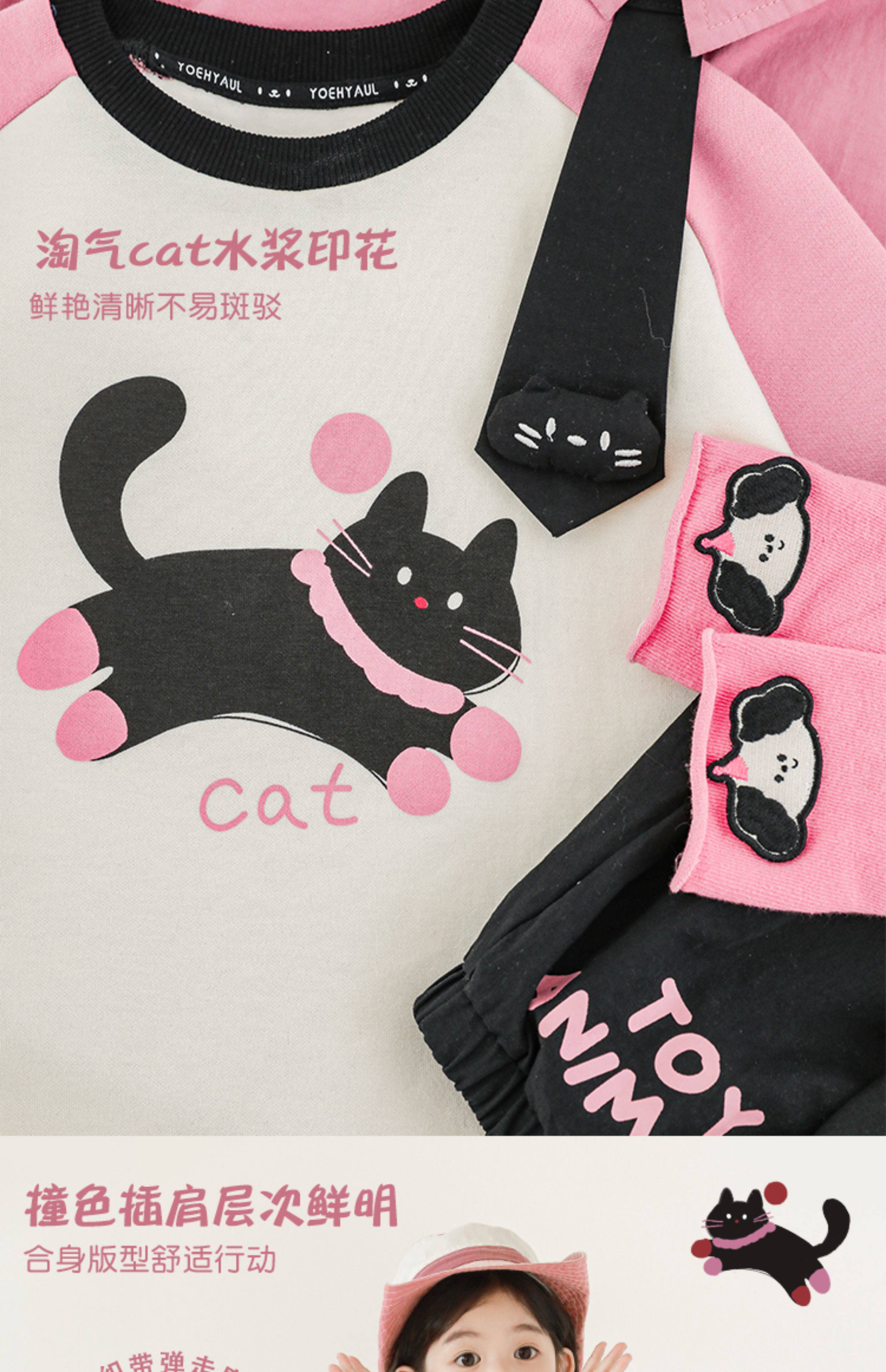 우리부이 여아 귀여운 애완동물 파라다이스 시리즈 봄 배색 래글런 티셔츠 심플하고 상큼한 카라 셔츠와 바지