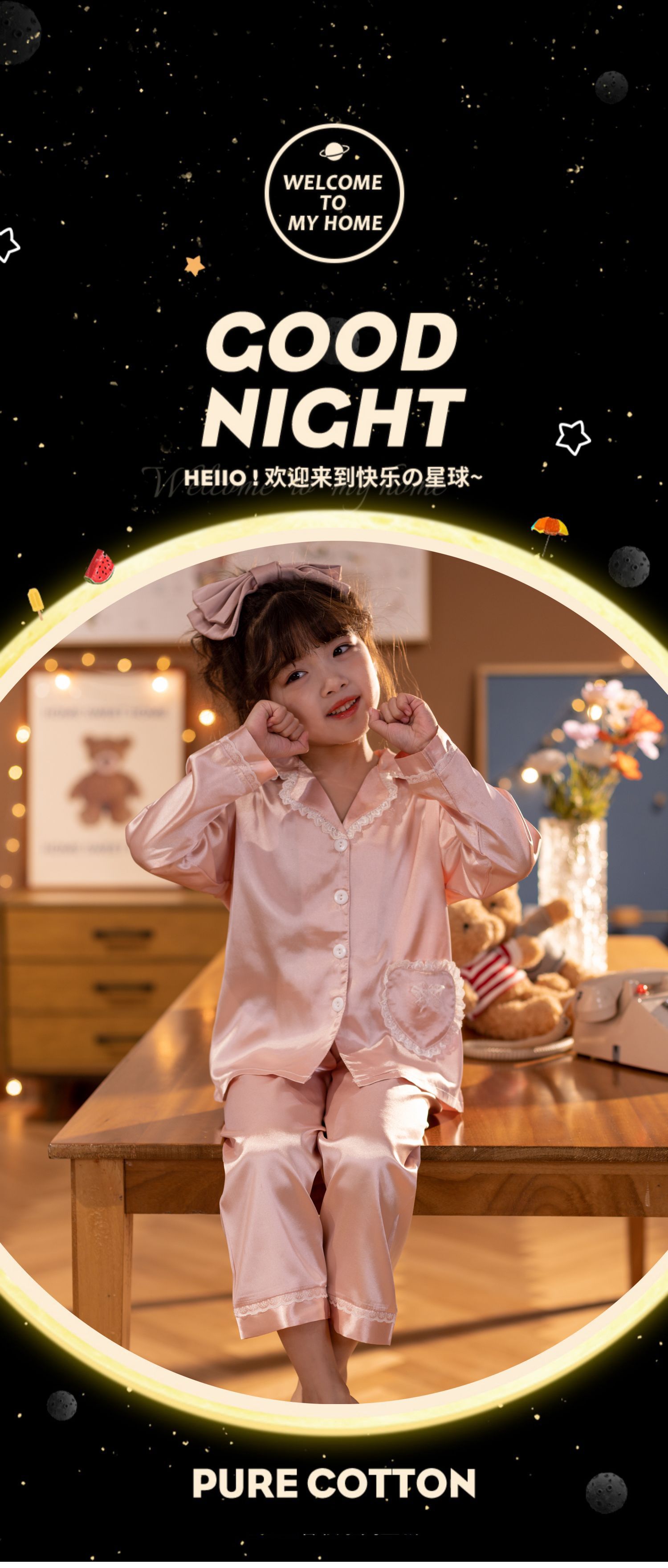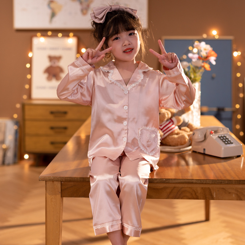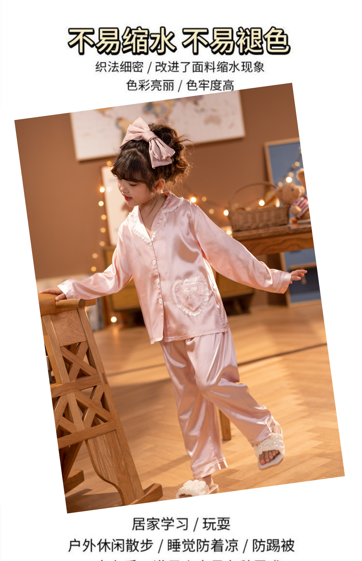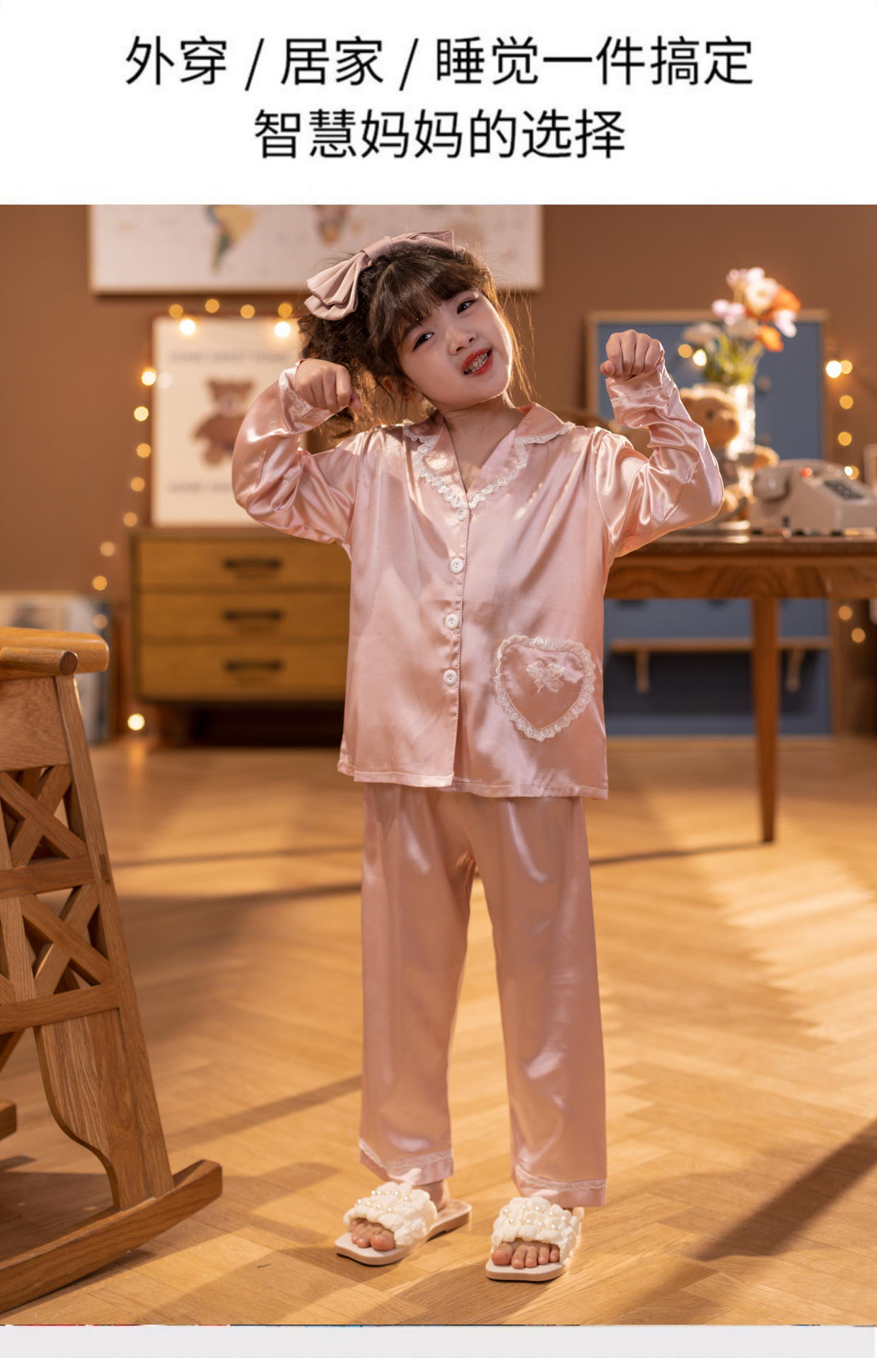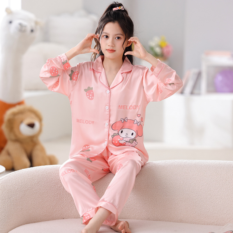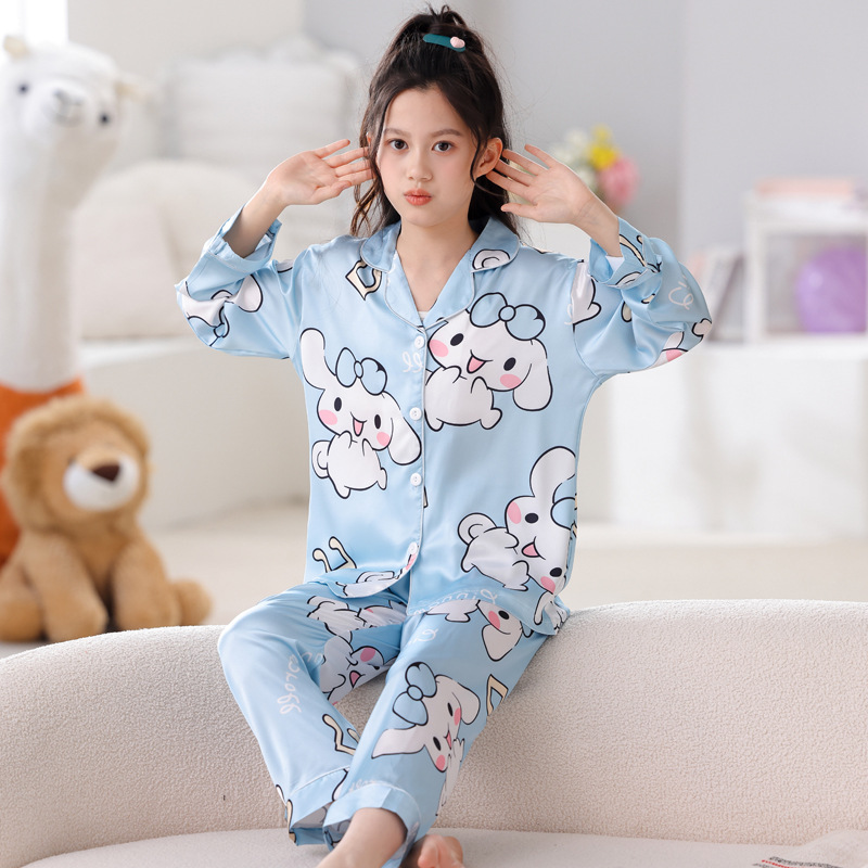 어린이 잠옷 소녀 봄과 가을 얼음 실크 긴 소매 세트 큰 아이 소녀 부모-아이 실크 만화 홈 옷스토어 가기