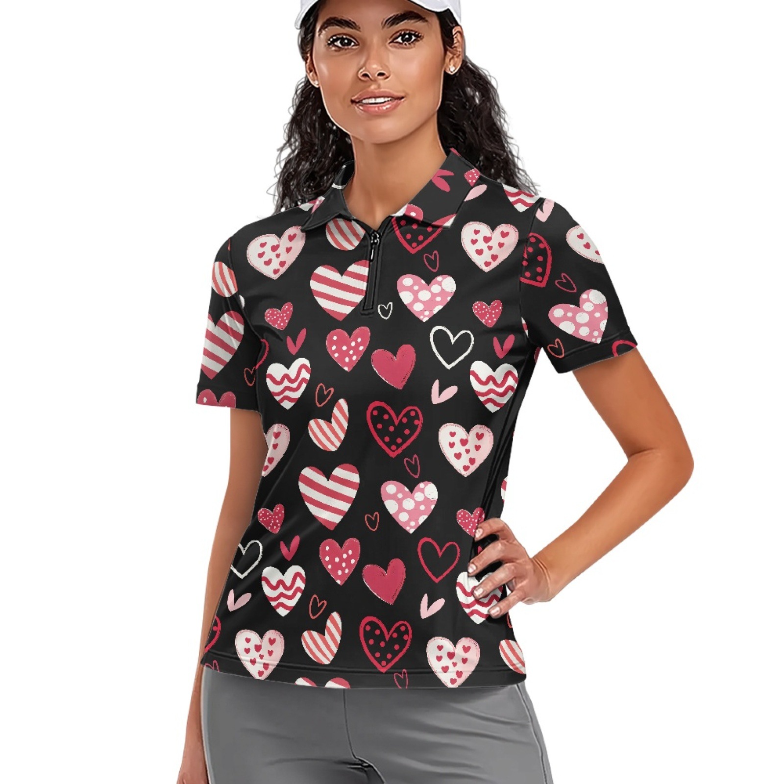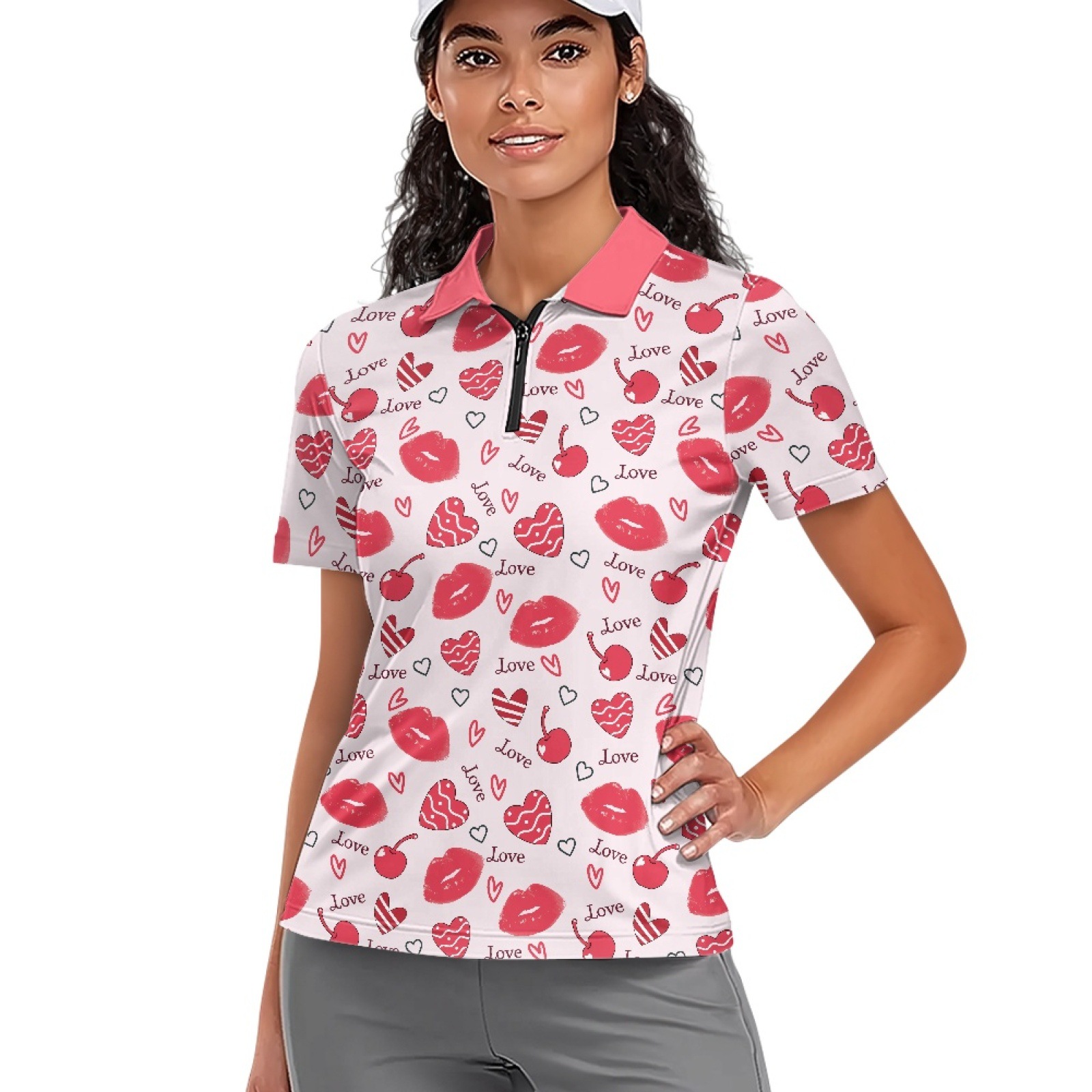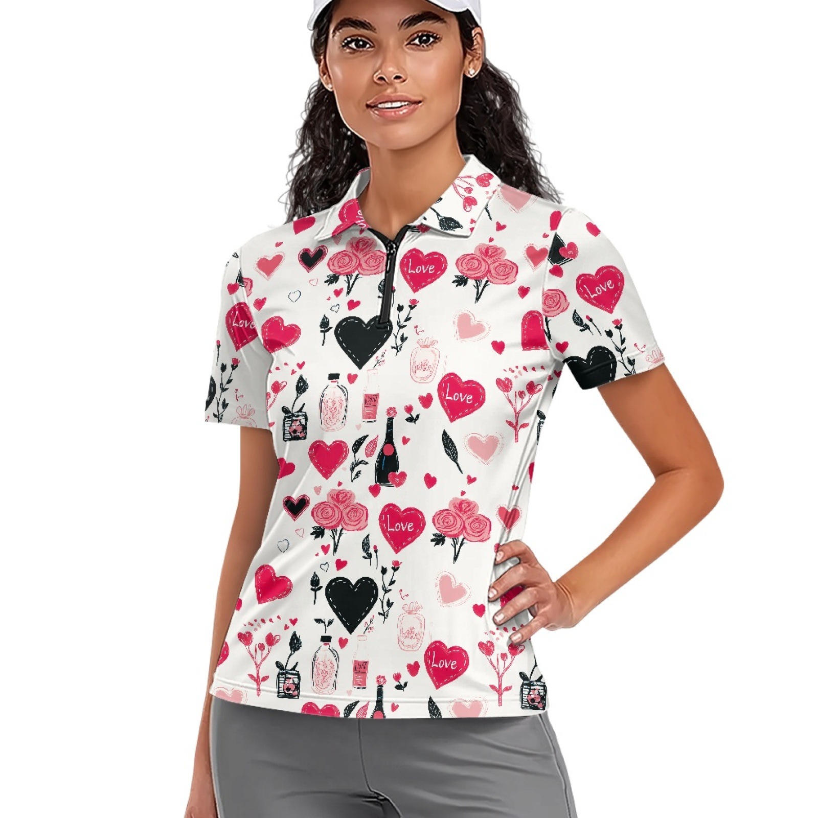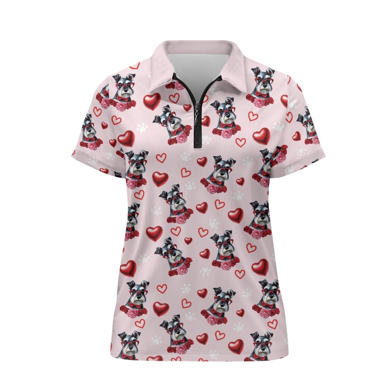 유럽과 미국 국경 일일 레저 폴리 에스테르 재킷 발렌타인 데이 사랑 개 인쇄 골프 셔츠 최소 주문스토어 가기