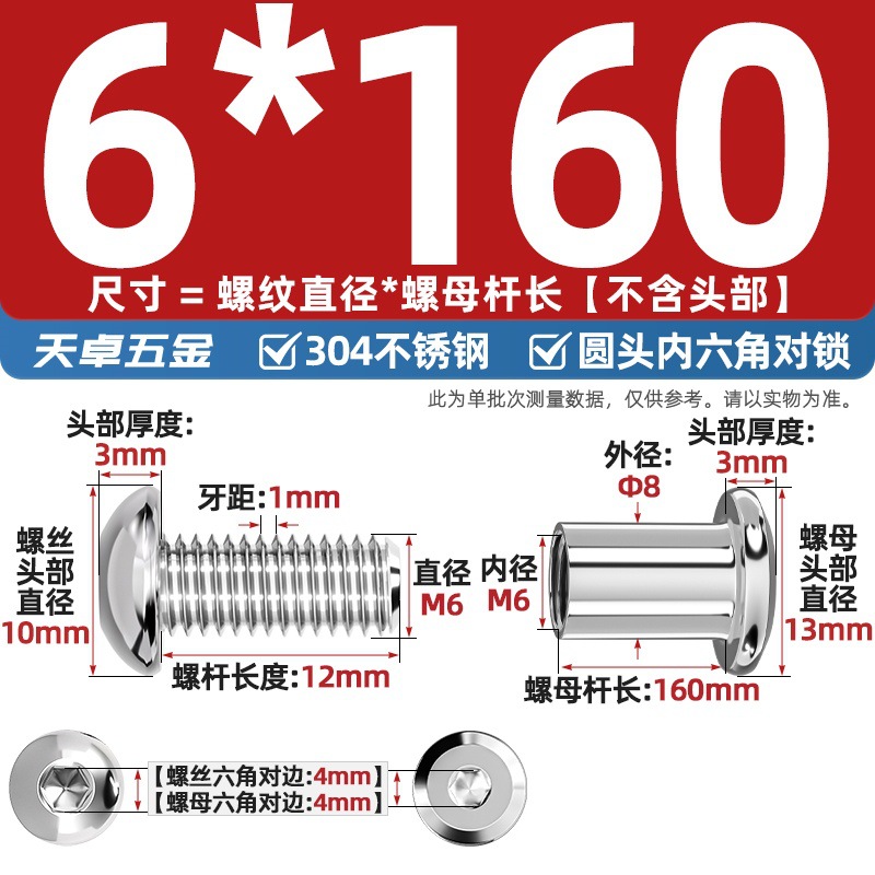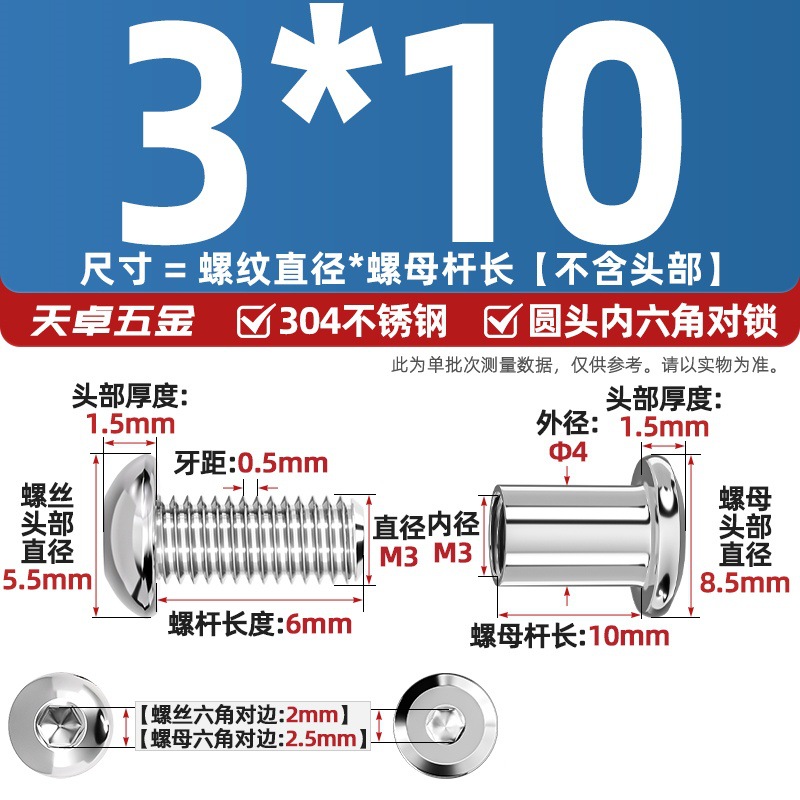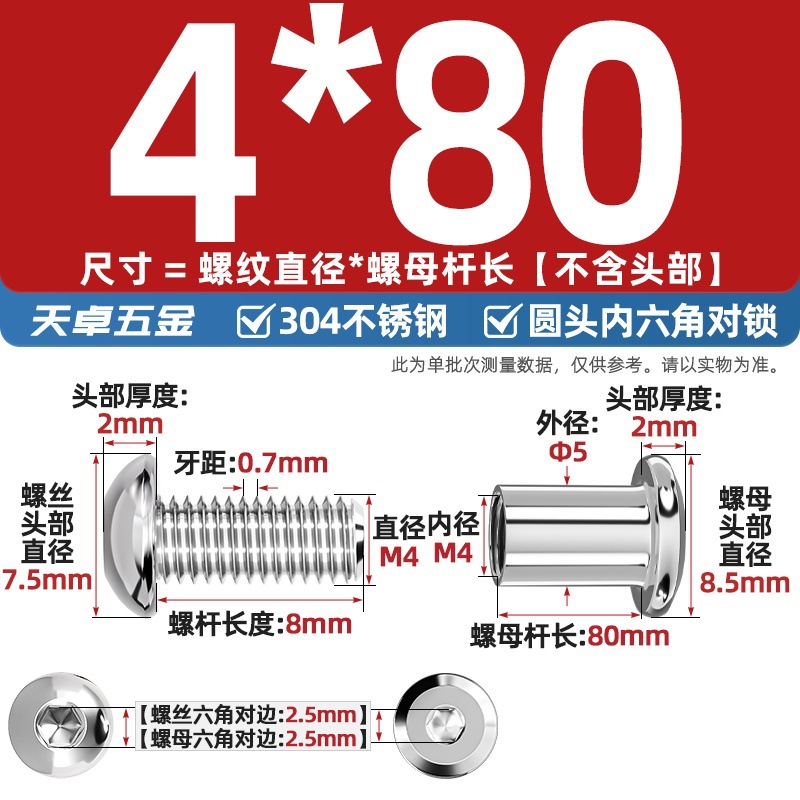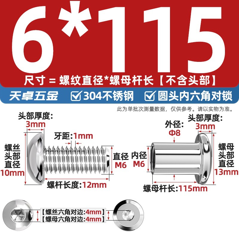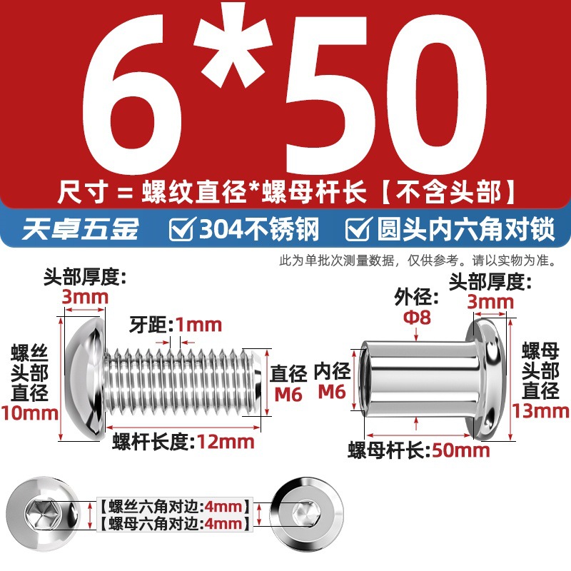 304 스테인레스 스틸 라운드 헤드 육각형 소켓 여성 리벳 엉덩이 자물쇠 나사 너트 부목 가구 조합 세트스토어 가기