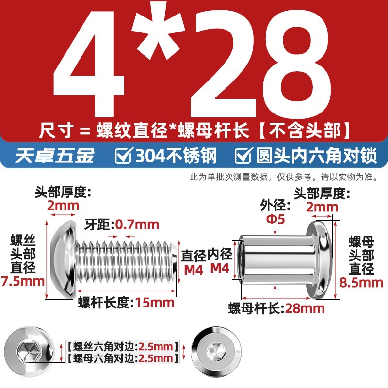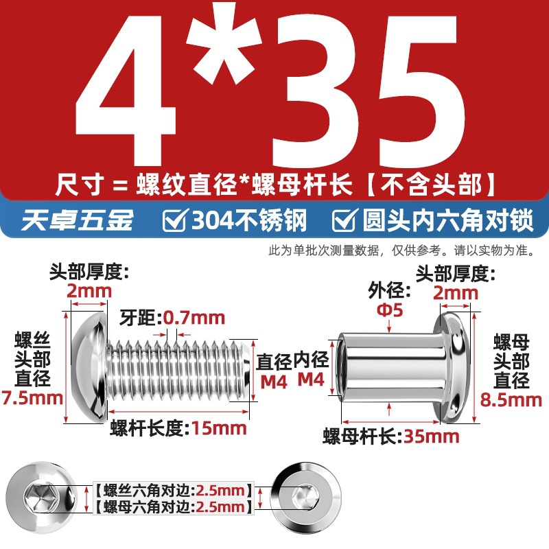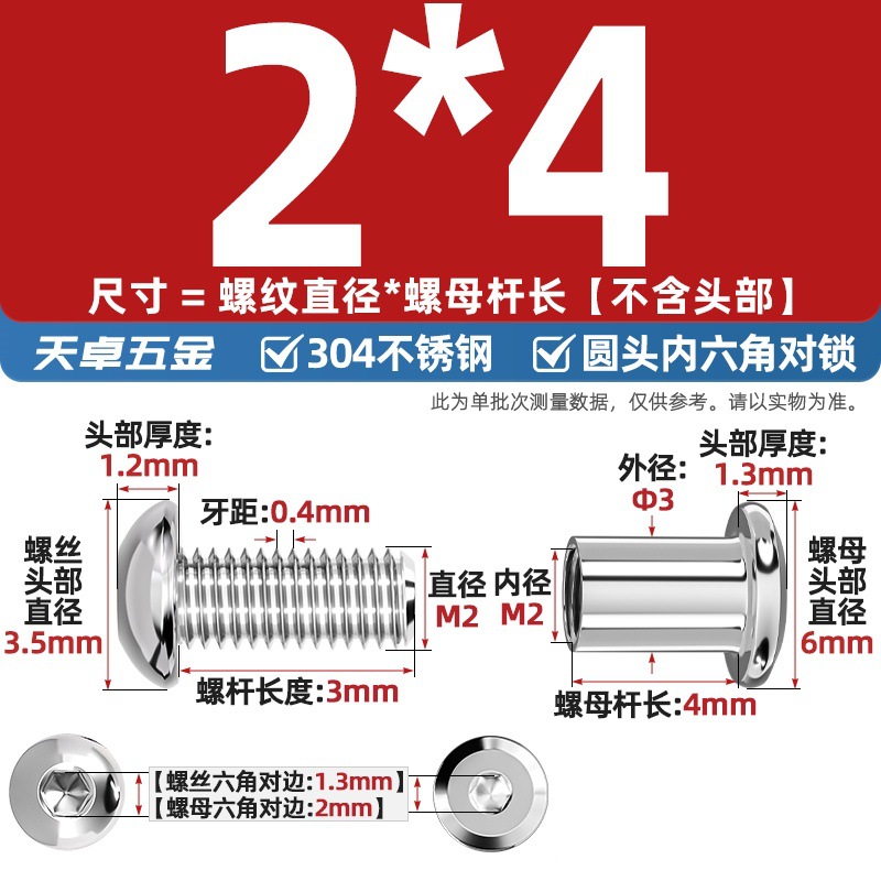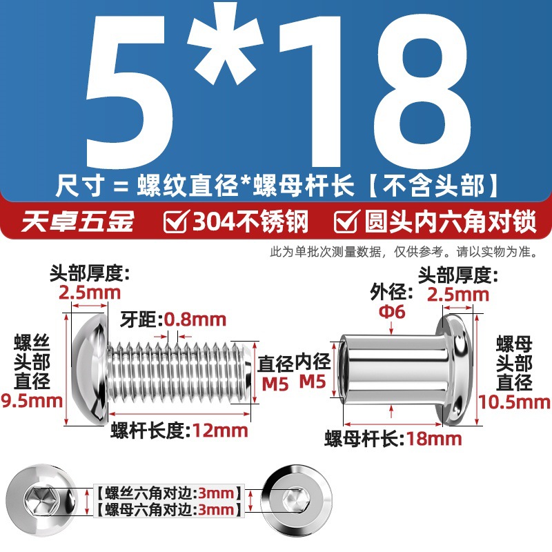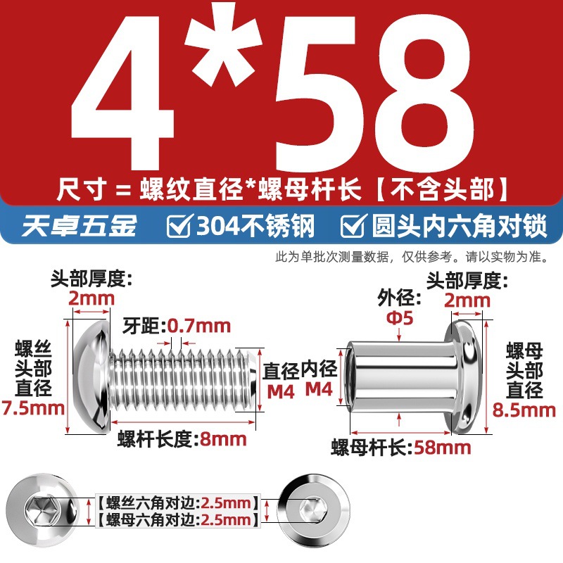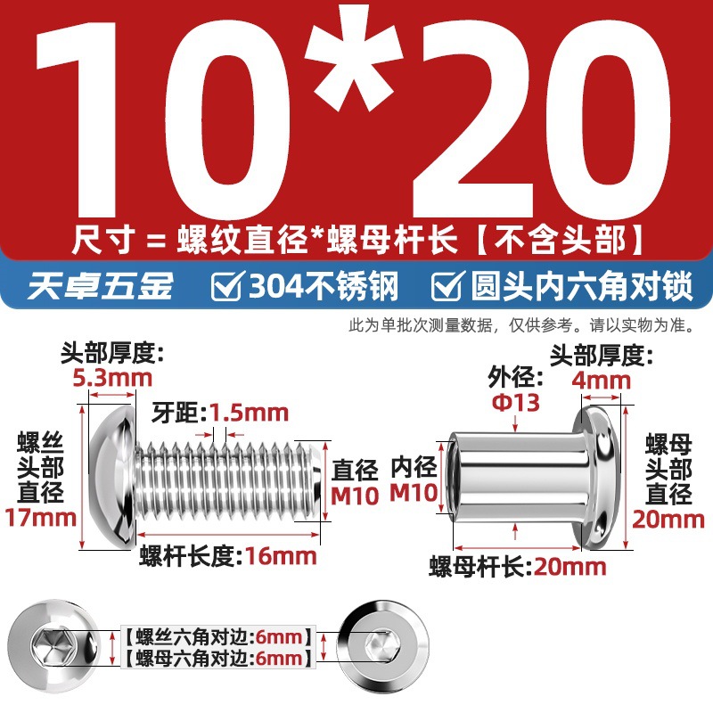 304 스테인레스 스틸 라운드 헤드 육각형 소켓 여성 리벳 엉덩이 자물쇠 나사 너트 부목 가구 조합 세트스토어 가기