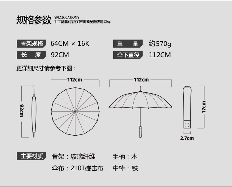 • 27인치 16본 블래스트 패브릭 우드 스트레이트 핸들-블랙