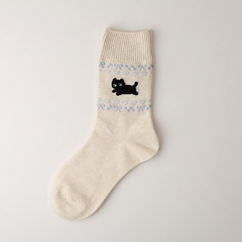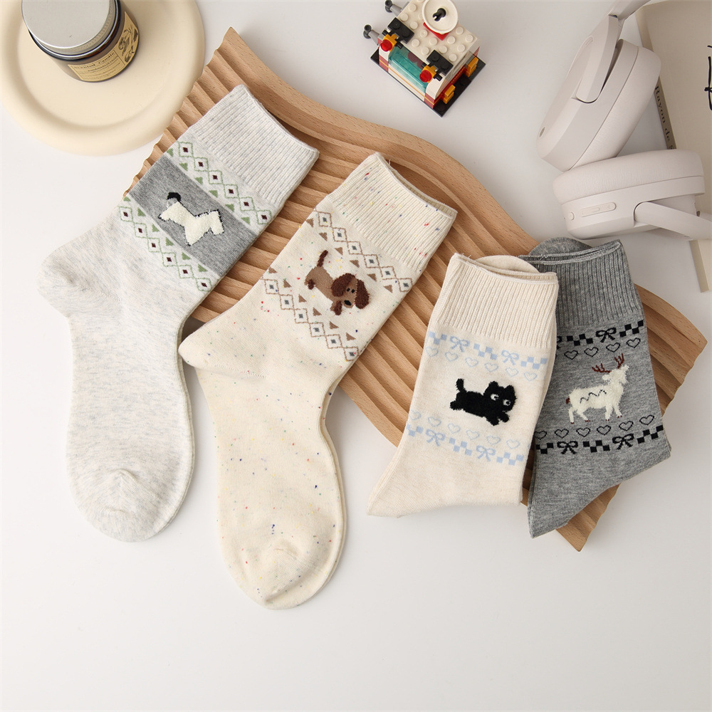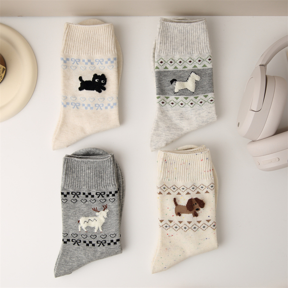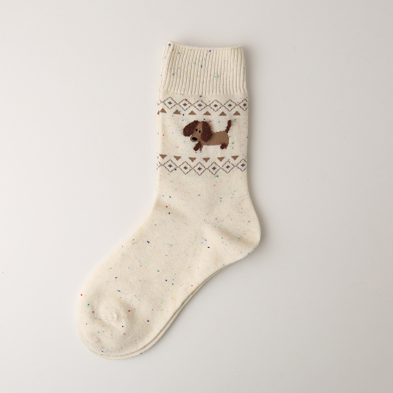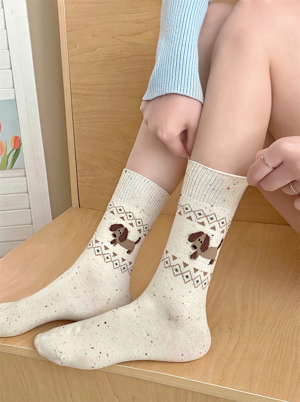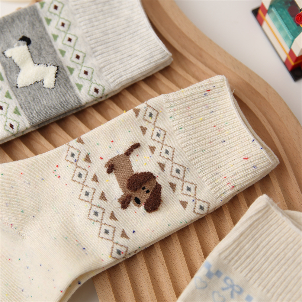 25 개의 새로운 양말 여성 양말 뼈없는 복고풍 스타일 공정한 섬 강아지 양말 귀여운 만화 튜브 양말 양말 면화 양말
