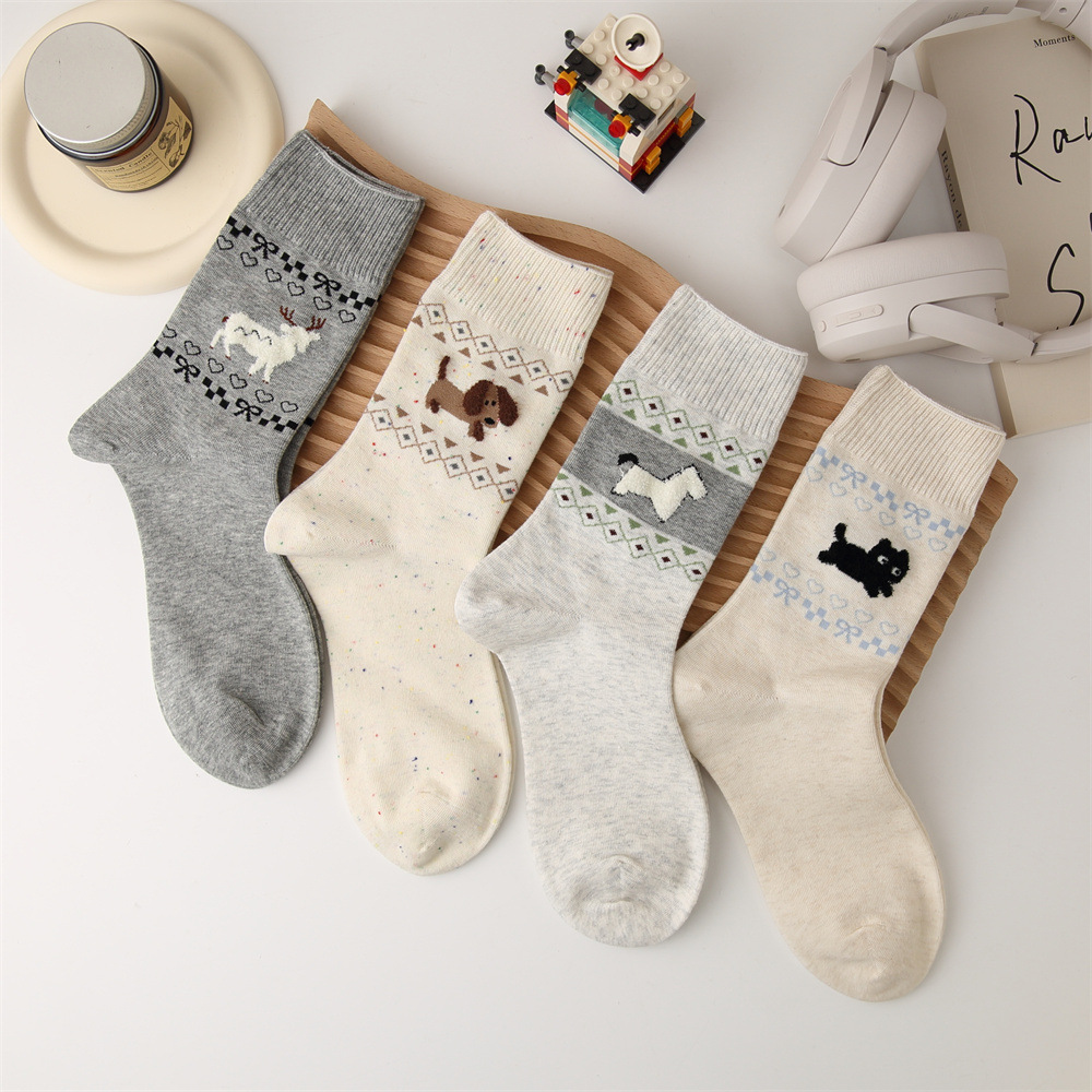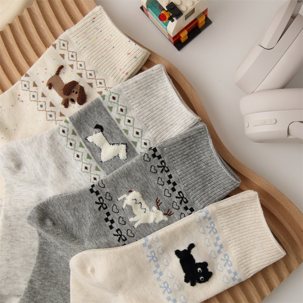 25 개의 새로운 양말 여성 양말 뼈없는 복고풍 스타일 공정한 섬 강아지 양말 귀여운 만화 튜브 양말 양말 면화 양말스토어 가기