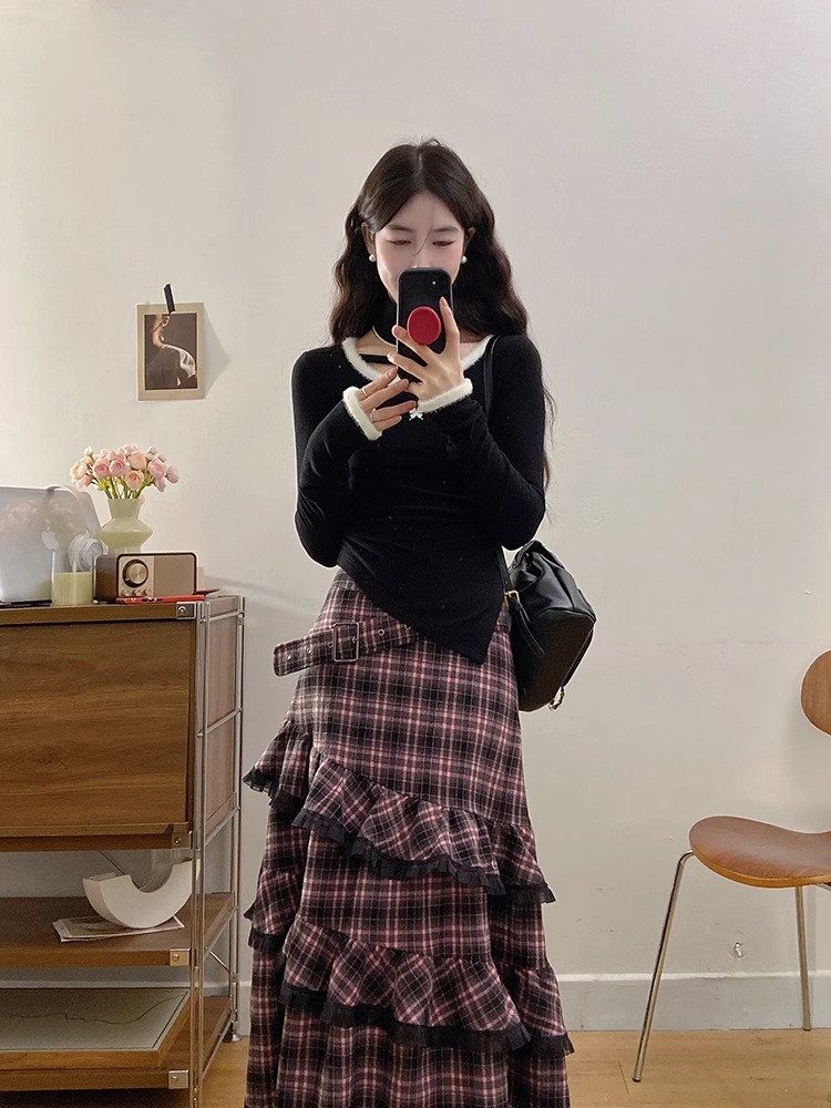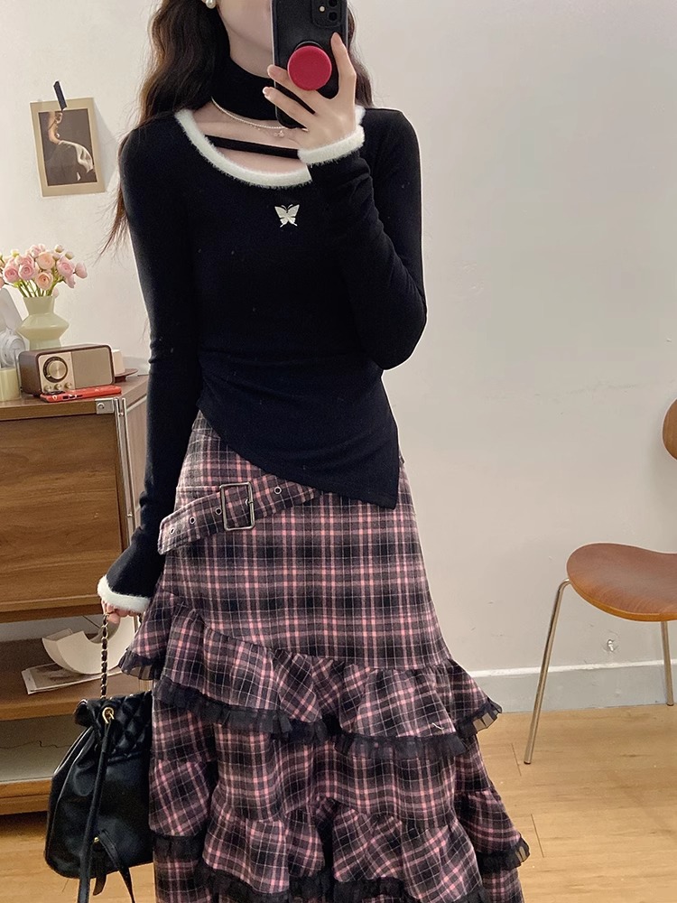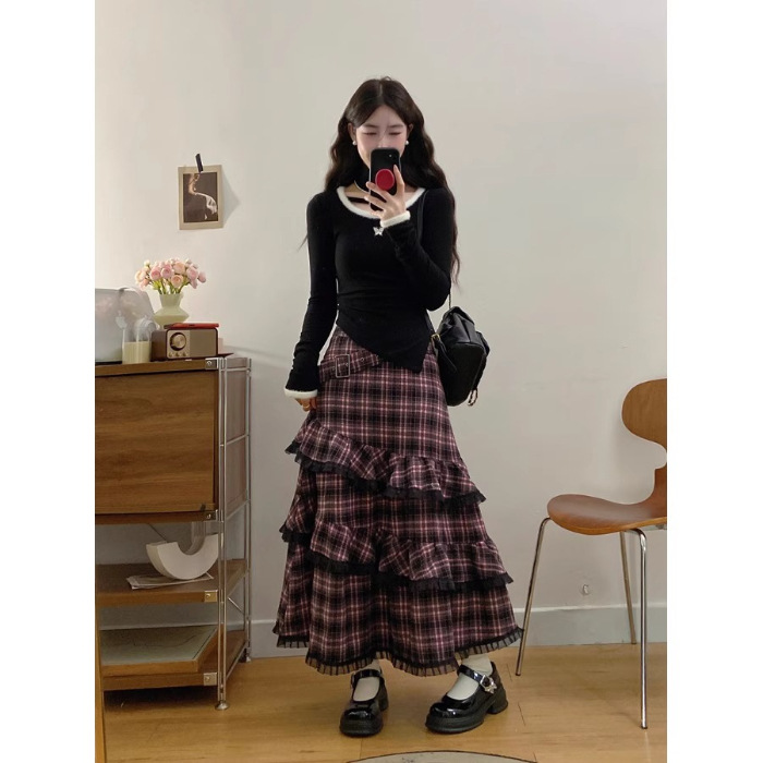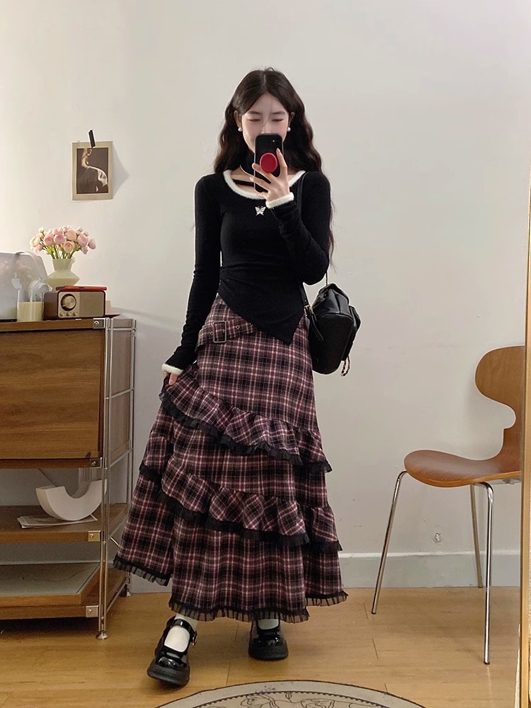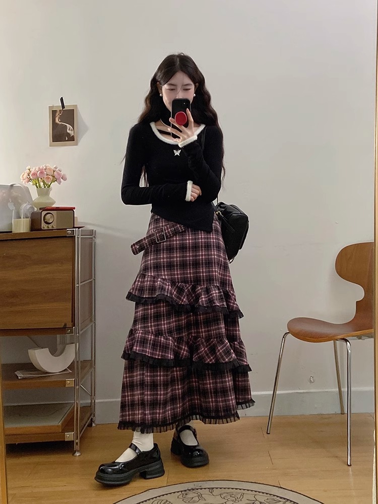 작은 격자 무늬 반몸 원피스 어린이 2025 년 봄과 가을 새로운 대학 스타일은 완전한 느낌의 세트를 착용