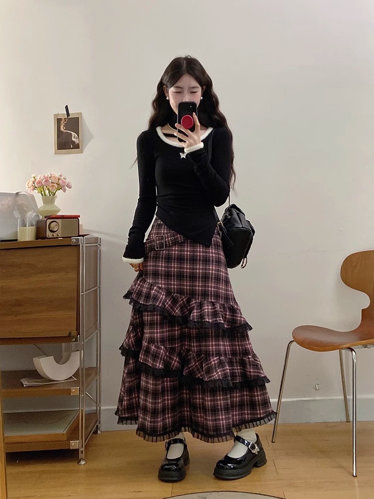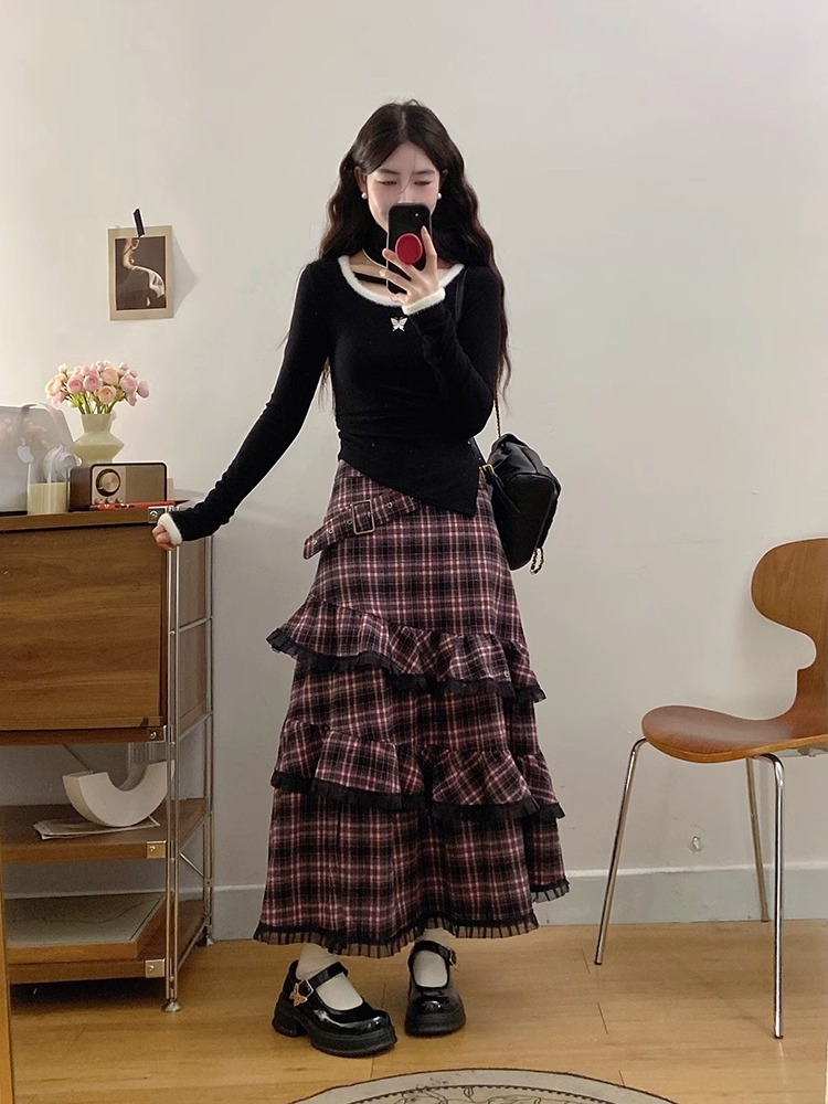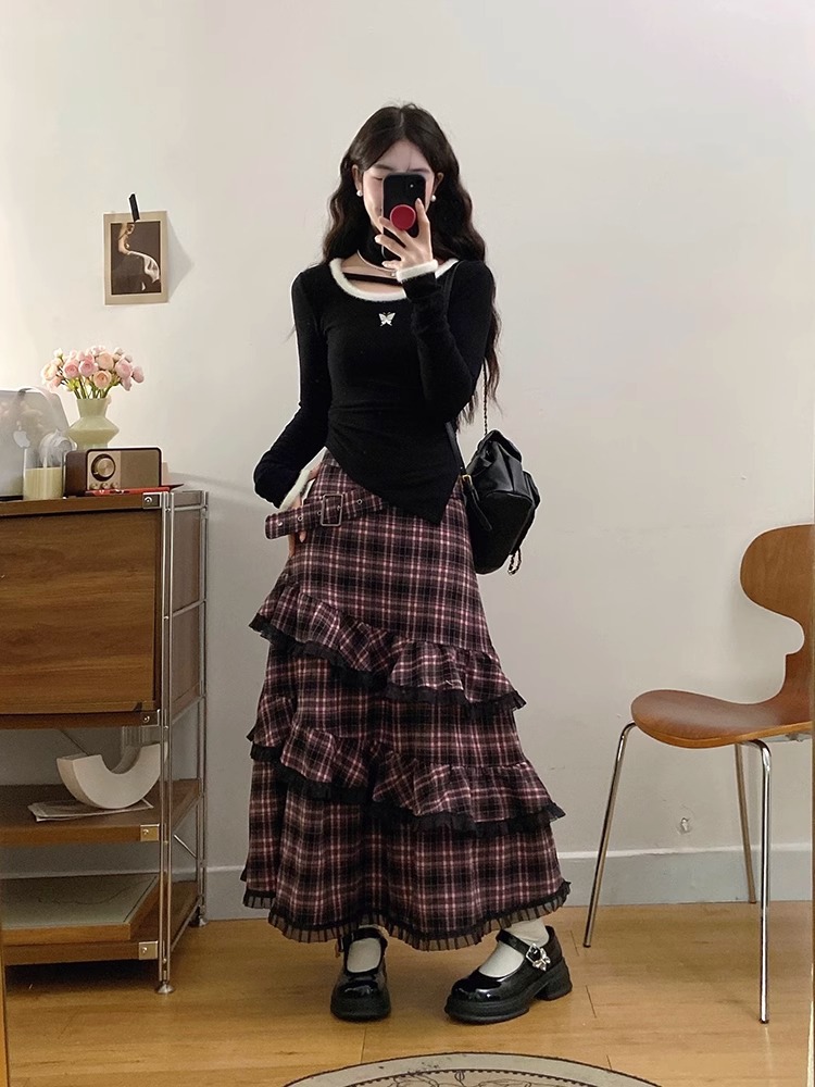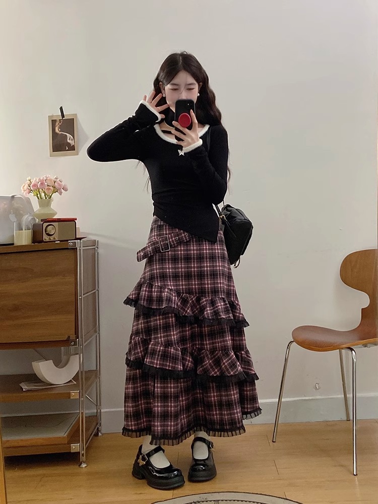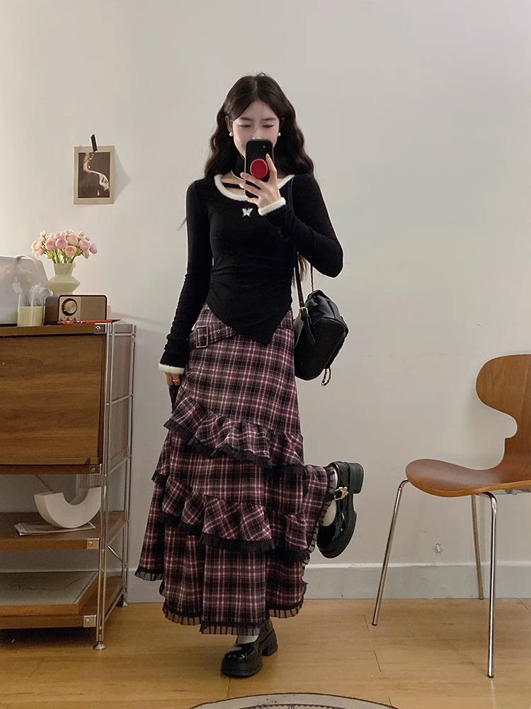 작은 격자 무늬 반몸 원피스 어린이 2025 년 봄과 가을 새로운 대학 스타일은 완전한 느낌의 세트를 착용