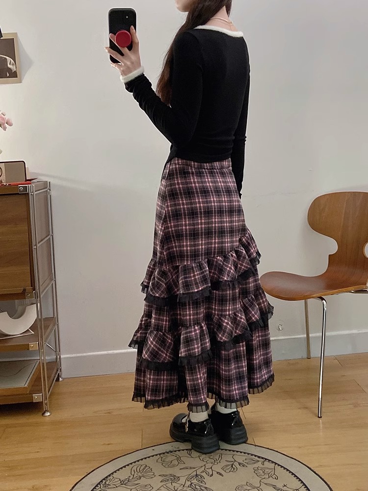 작은 격자 무늬 반몸 원피스 어린이 2025 년 봄과 가을 새로운 대학 스타일은 완전한 느낌의 세트를 착용스토어 가기