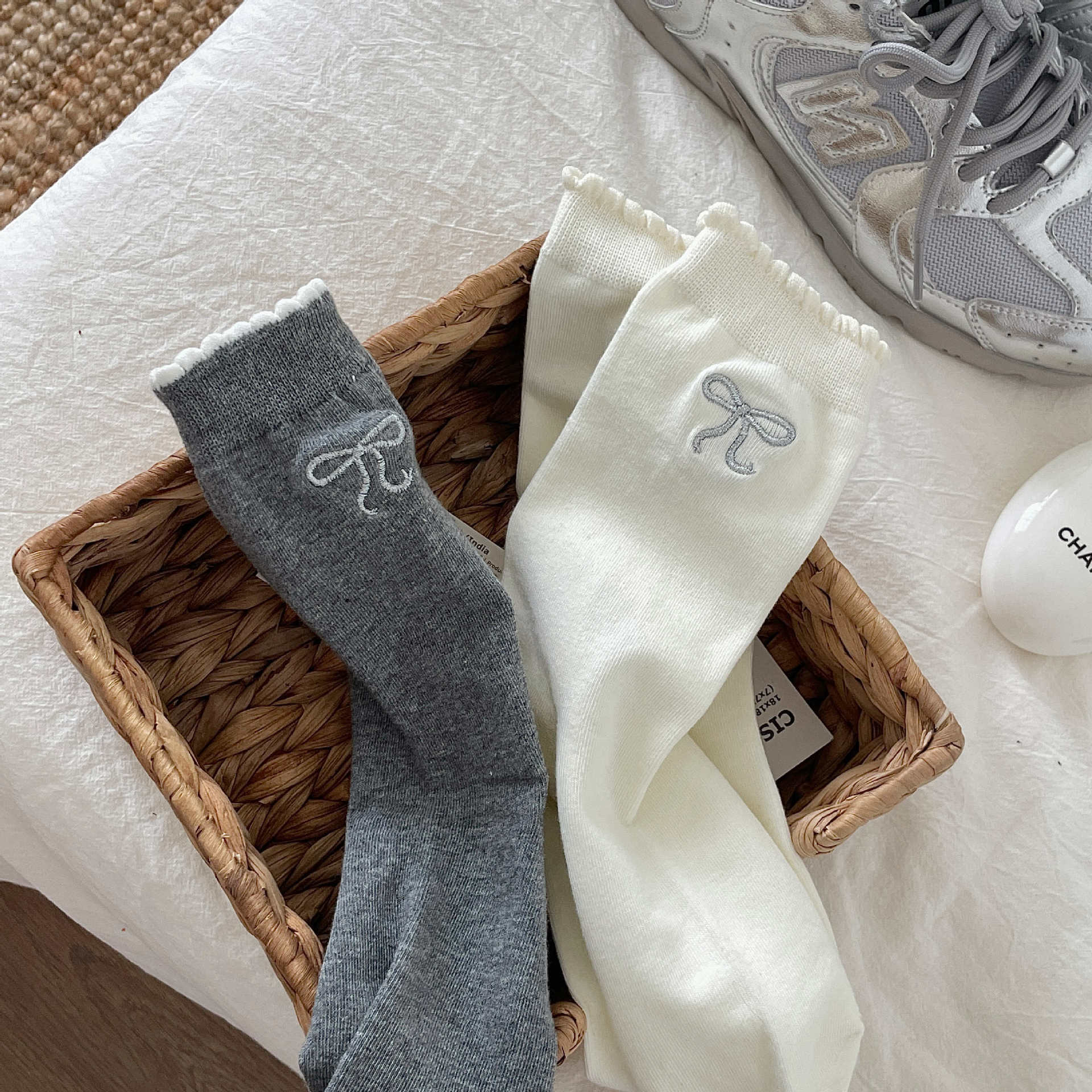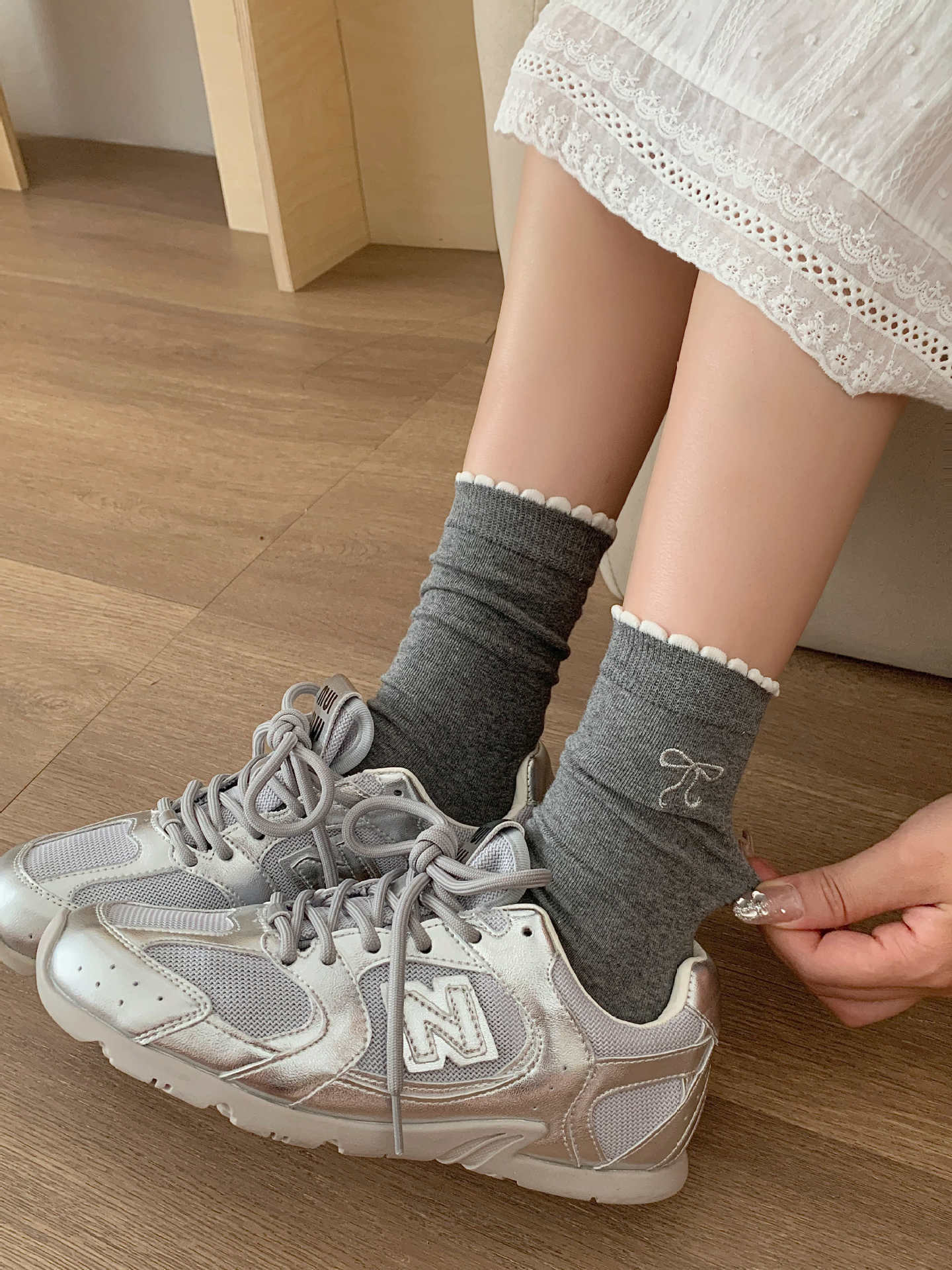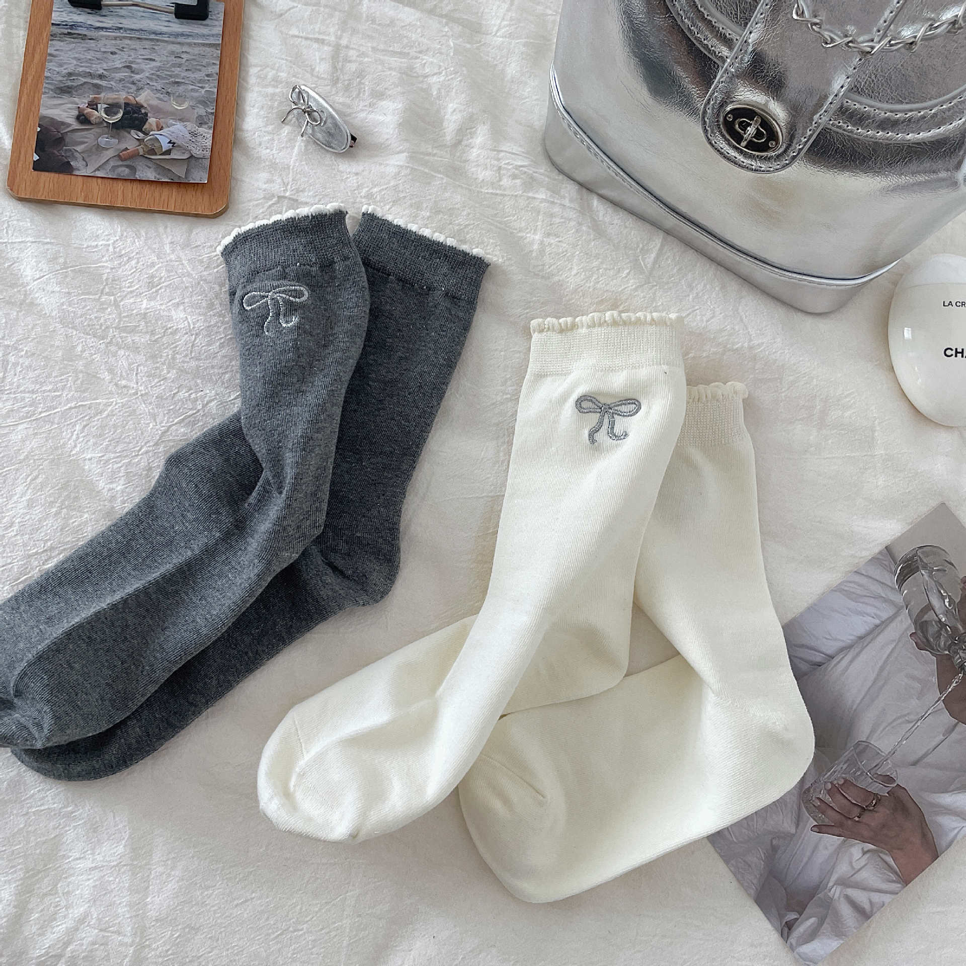 빗질 코튼 버블 입 실버 활 여자 여름 올매치 자수 미드 튜브 양말 땀 흡수성 스태킹 양말 그레이 양말스토어 가기