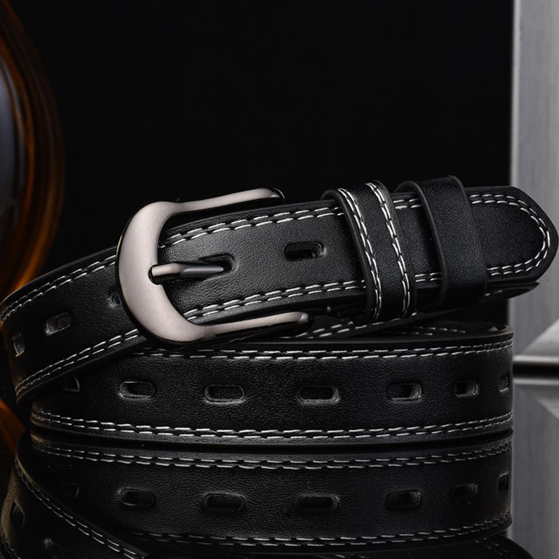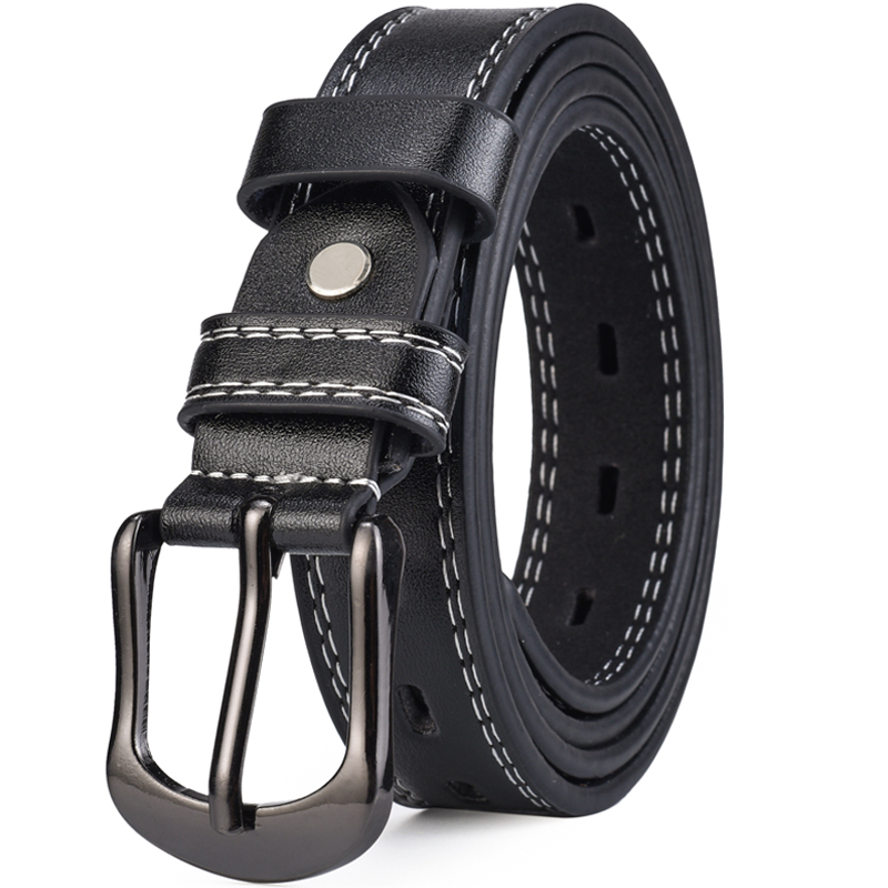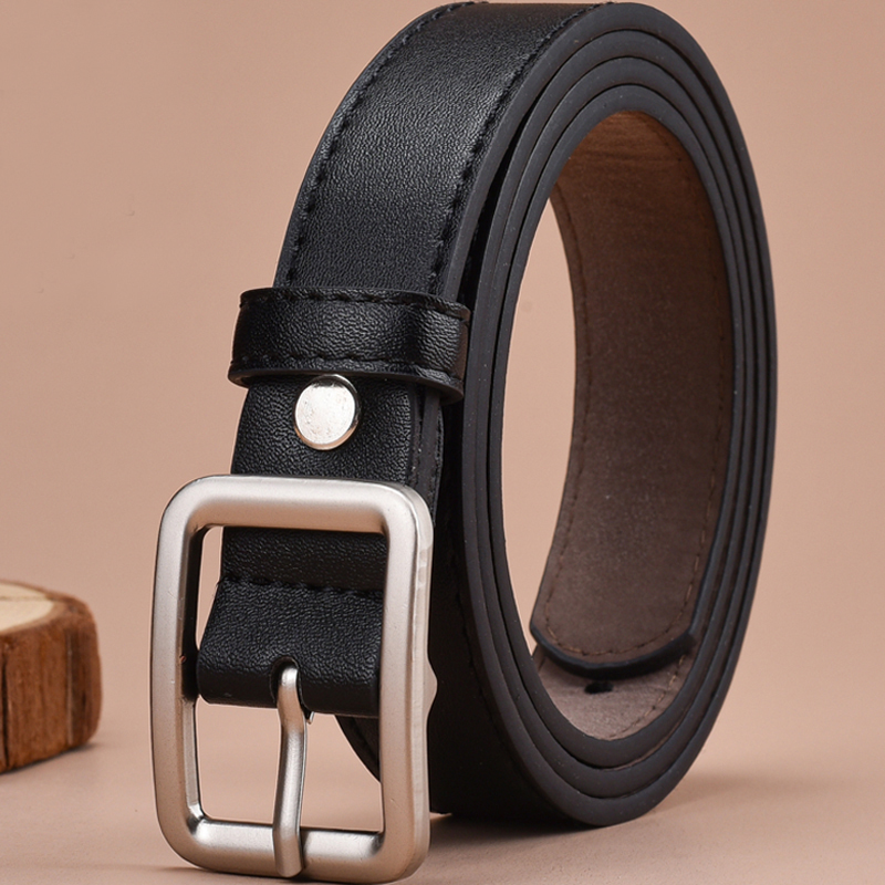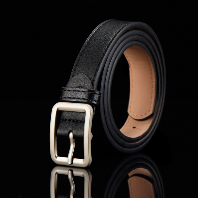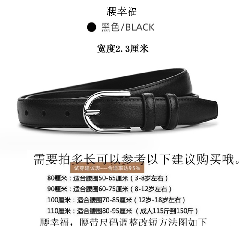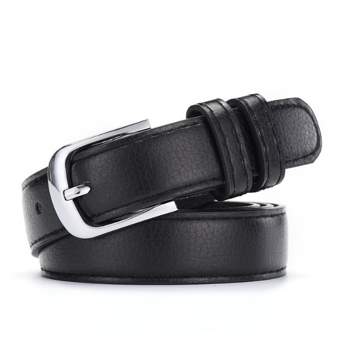• 2.3CM 와이드 인조 가죽 소프트 및 양면 실버 타원형 버클 스트랩 블랙
