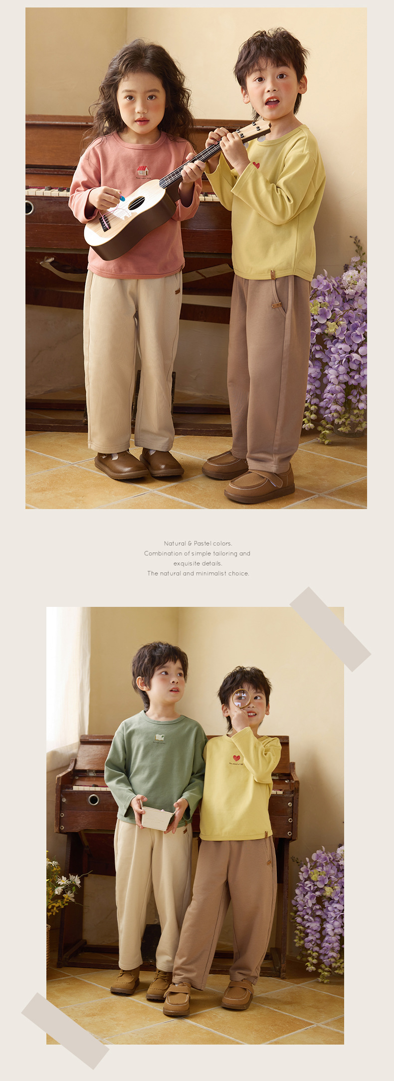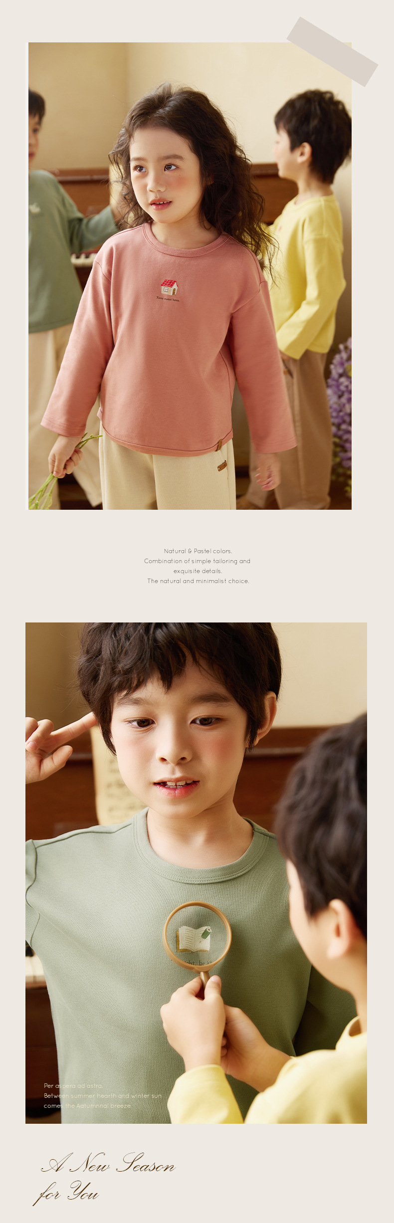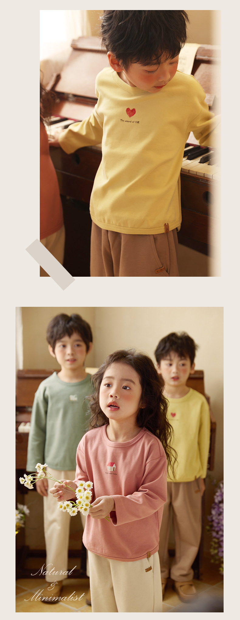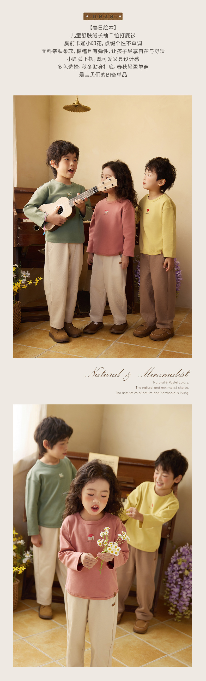 Neza [봄 그림책] 어린이 긴 소매 티셔츠 봄 원피스 소녀베이스 셔츠 옷 아동복 단색