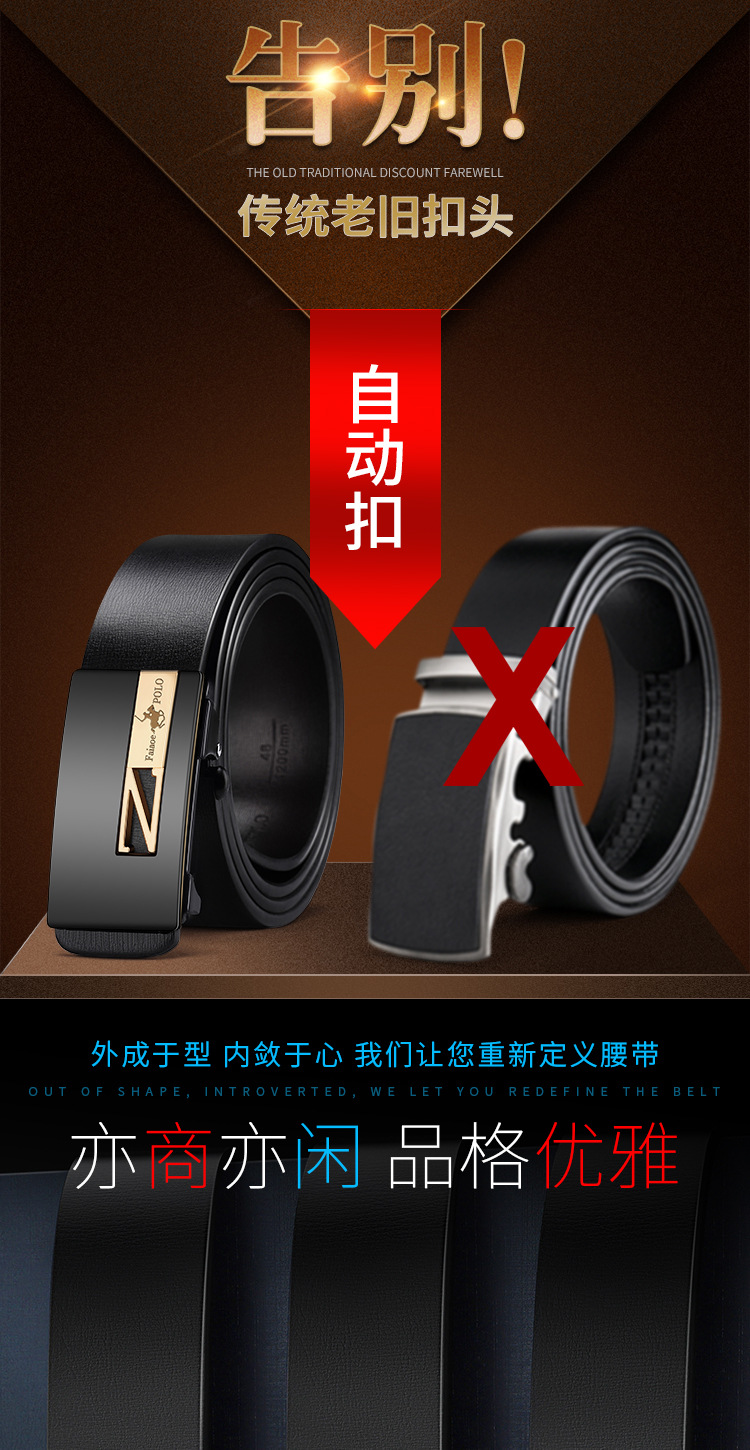 뉴 폴 하이 엔드 남성 벨트 정품 가죽 순수 카우보이 자동 버클 비즈니스 캐주얼 청소년 트렌디 벨트 바지