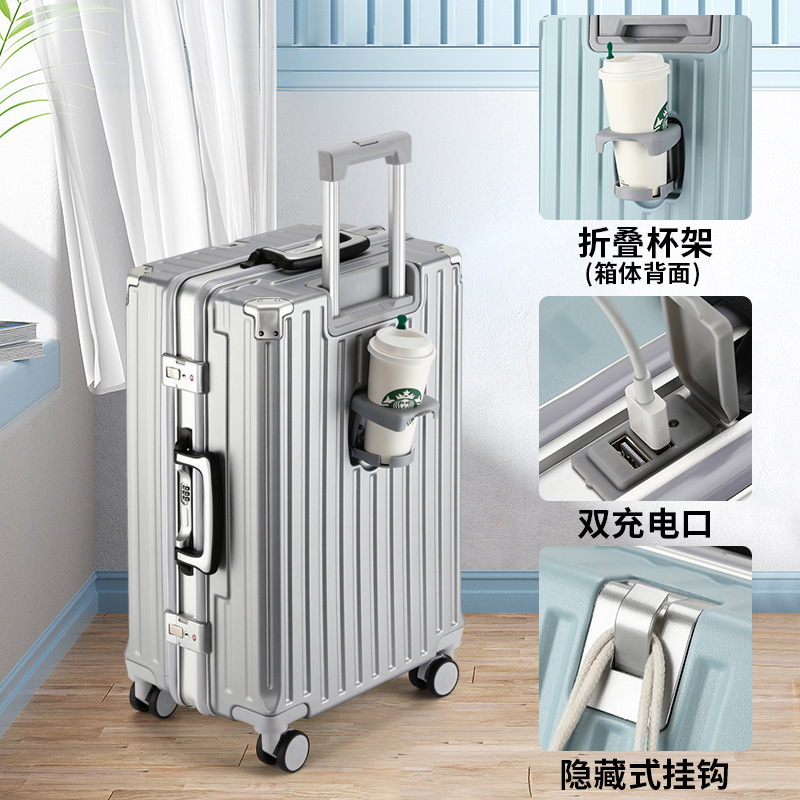 다기능 가방, 물컵 홀더, 트롤리 케이스, 알루미늄 프레임 가방, 범용 휠, 남성용 및 여성용 비밀번호 상자, 대용량스토어 가기