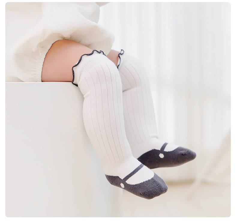 아기 스타킹 25 가을 새로운 스타일 빗질 면화 다리 신생아 0-3 개월 레이스 무릎 위 아기 양말