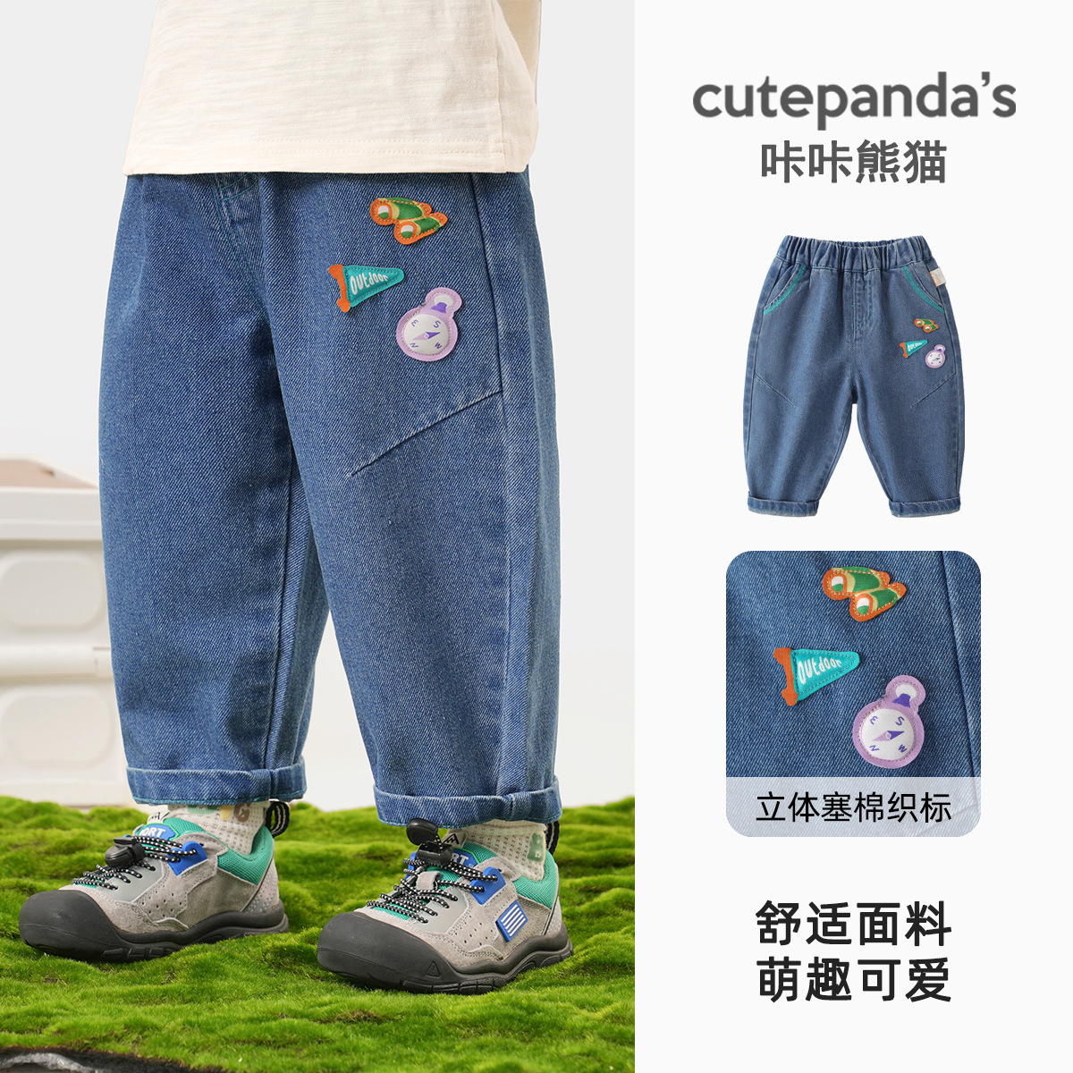Kaka Panda 어린이 청바지 가을 봄, 가을 소년과 소녀 긴 바지 아기 어린이 캐주얼 바지 아동 의류 유행스토어 가기