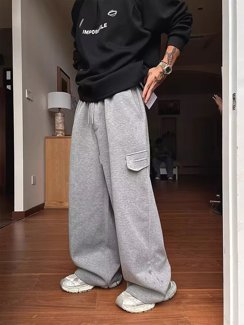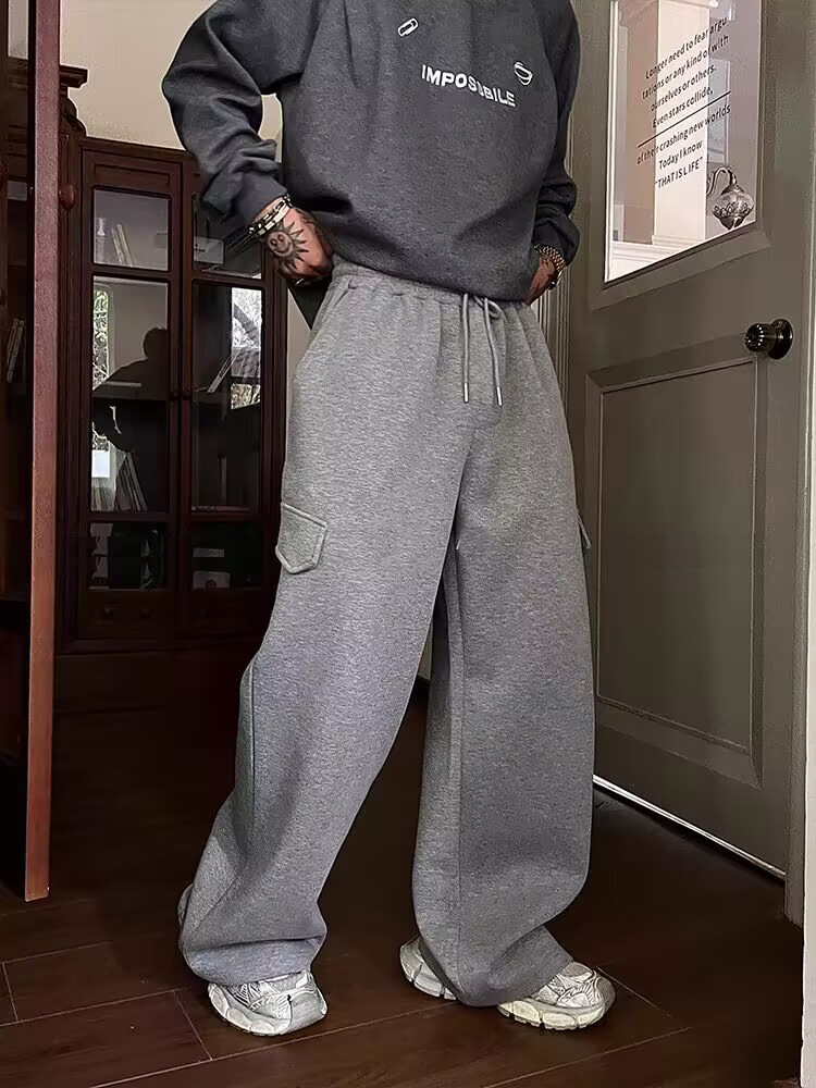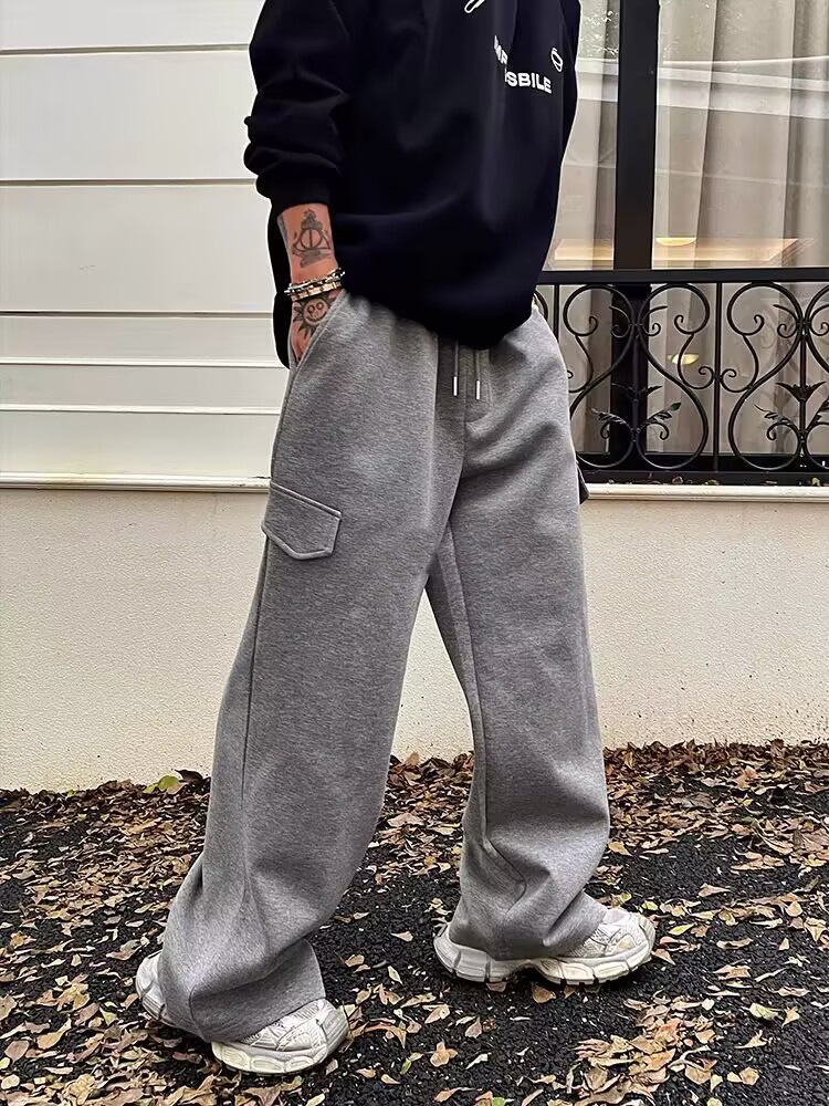 아메리칸 스타일 그레이 스웨트 팬츠 남성용 루즈 와이드 레그 바지 멀티 포켓 테더 크레인 바지 마체 테 캐주얼 스포츠 바지
