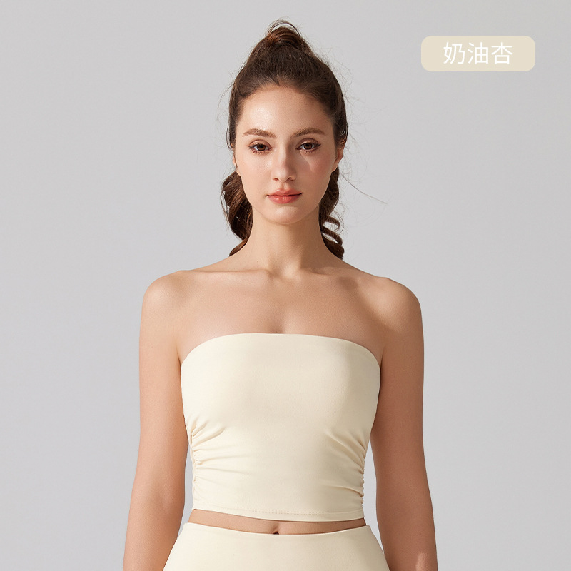 유럽과 미국의 요가 의류 여성용 스트랩리스 조끼 아름다운 백 스포츠 속옷 충격 방지 빠른 건조 스트랩리스 브라 피트니스 탑