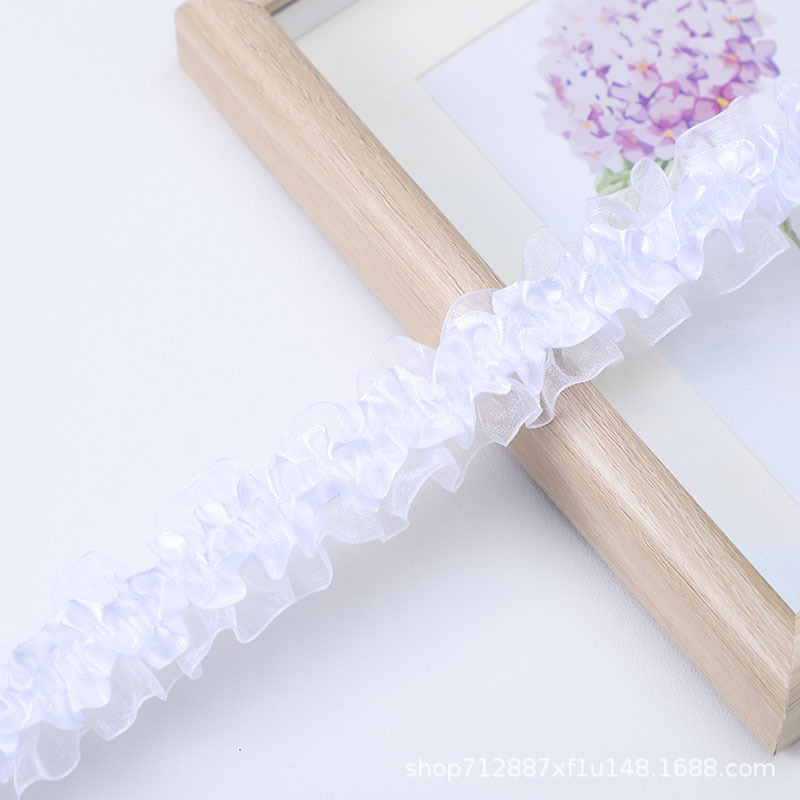 재고 3.8cm 스트레치 더블 레이어 폴리 에스테르 투명 주름 쉬폰 레이스 로리타 스커트 액세서리 수제 DIY