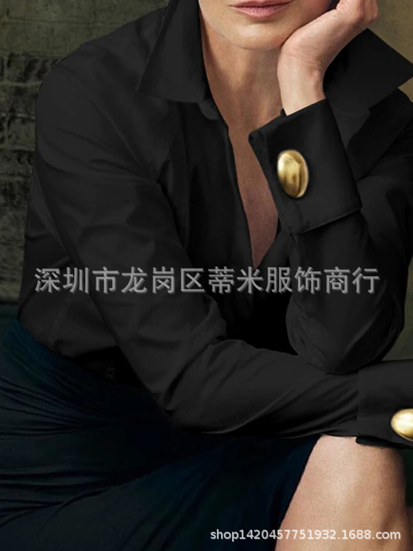 2025 Amazon AliExpress Europe Station 새로운 유럽과 미국의 여성 사무실 통근 클래식 긴 소매 셔츠 탑스토어 가기