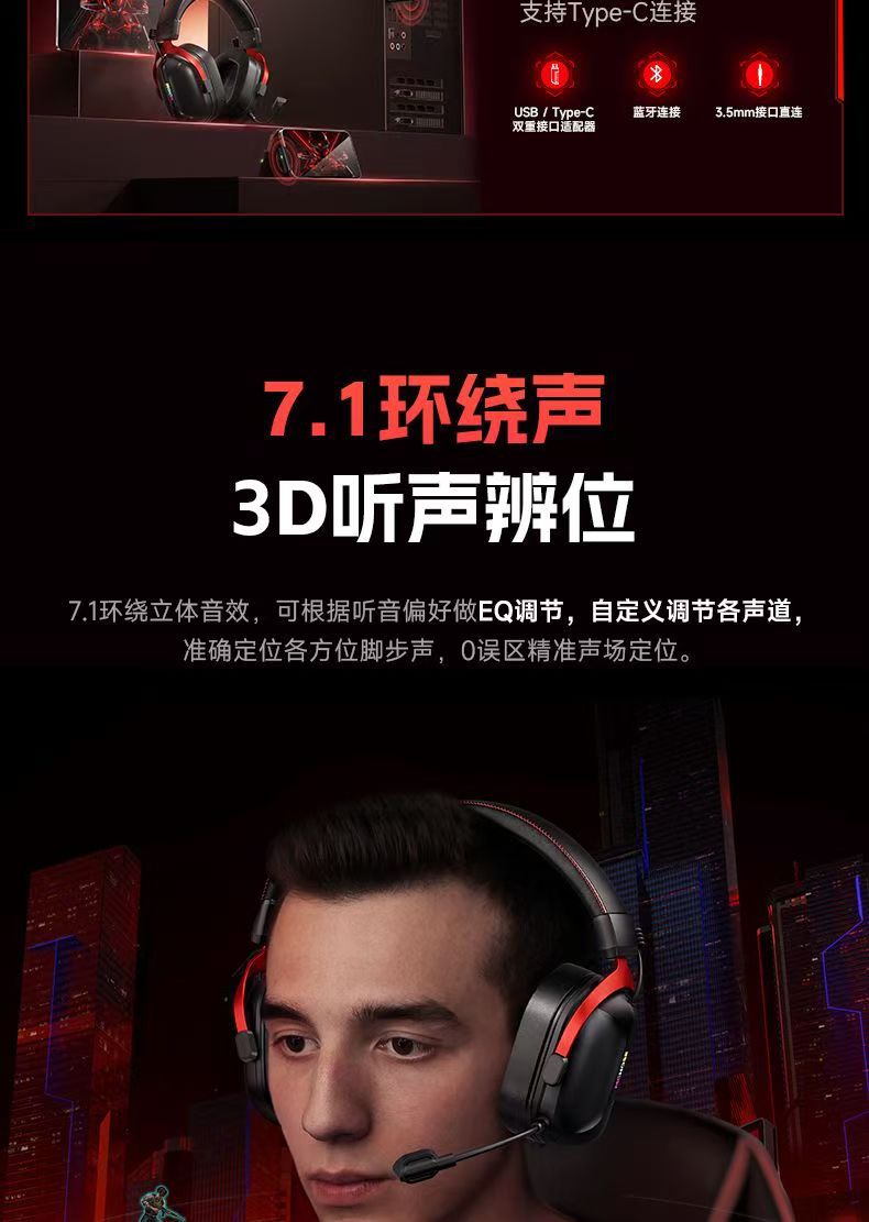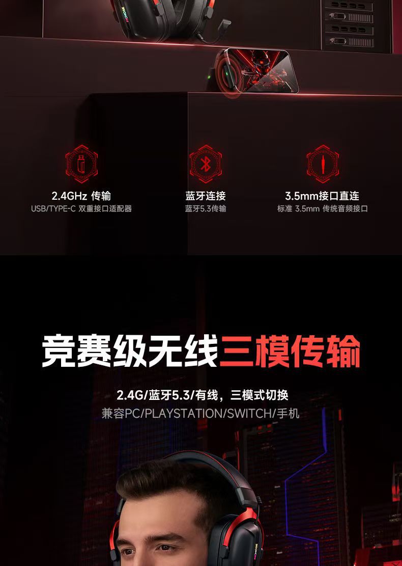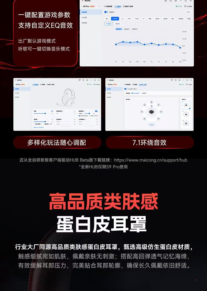 MCHOSE 마이 S9 프로 헤드셋 헤드셋 3 모드 E-스포츠 게임 블루투스 컴퓨터 Mac Wireless USB7.1
