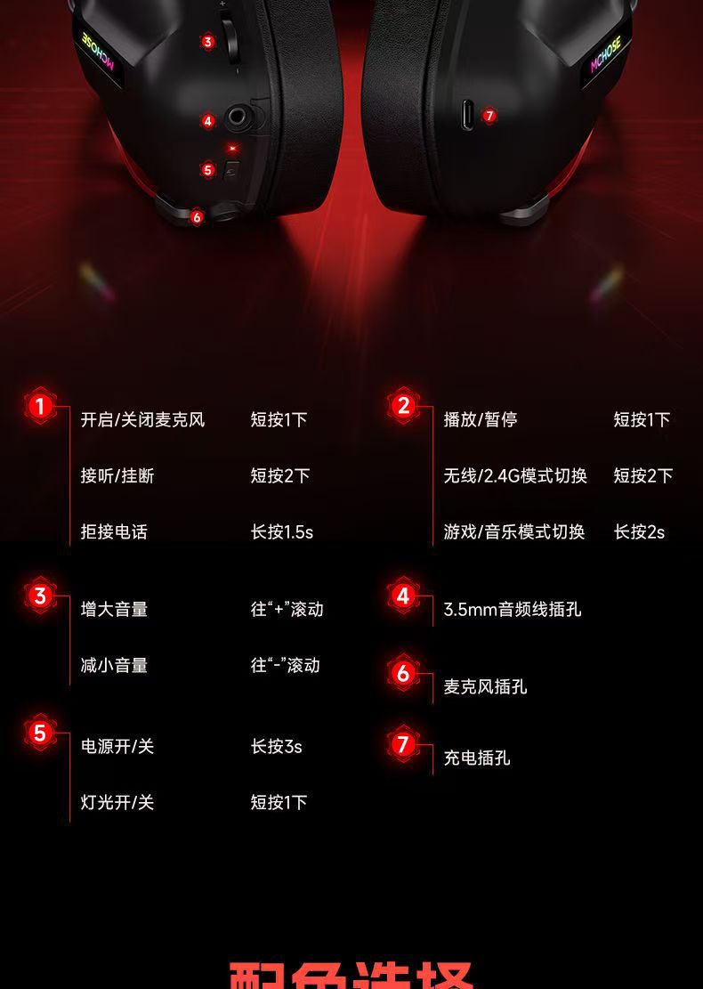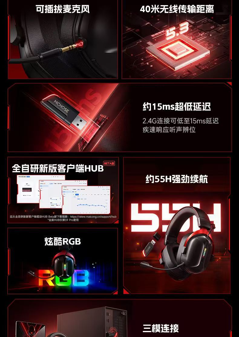 MCHOSE 마이 S9 프로 헤드셋 헤드셋 3 모드 E-스포츠 게임 블루투스 컴퓨터 Mac Wireless USB7.1스토어 가기