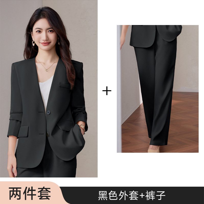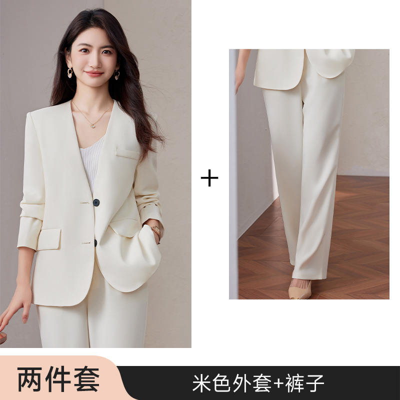 칼라리스 세트 재킷 여성 2025 새로운 봄 및 가을 방송 호스트 고급 감각 전문 세트 세트 작업복