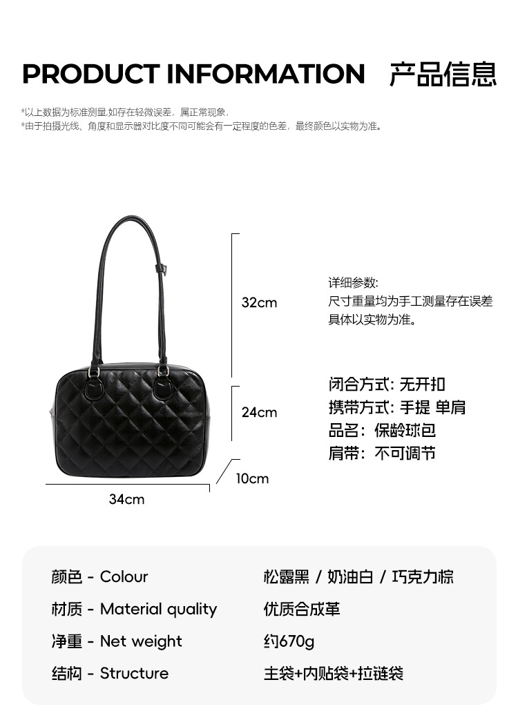 대용량 토스트 백 여성 2025 새로운 통근 휴대용 어깨 토트 백 Rhomboid 보스턴 볼링 백스토어 가기
