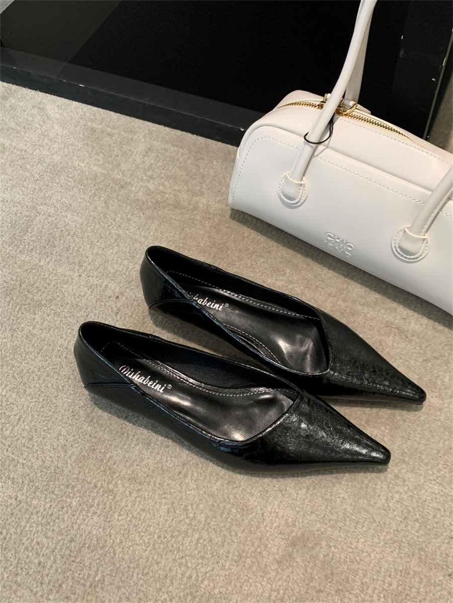 봄 2025 새로운 포인팅 얕은 하이힐 레오파드 무늬 패션 올매치 우아한 통근 로우 힐 키튼 다큐멘터리 신발스토어 가기