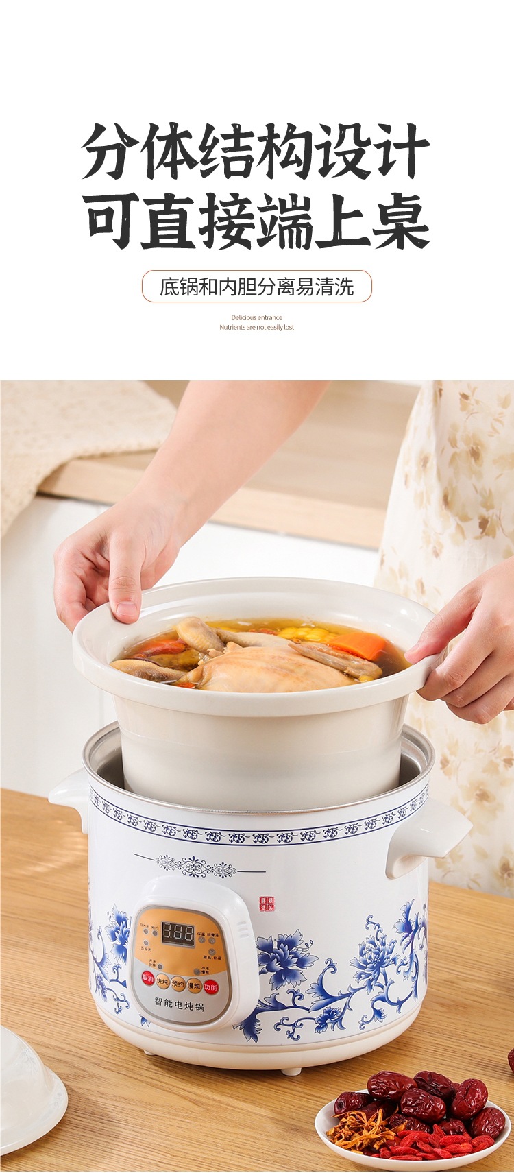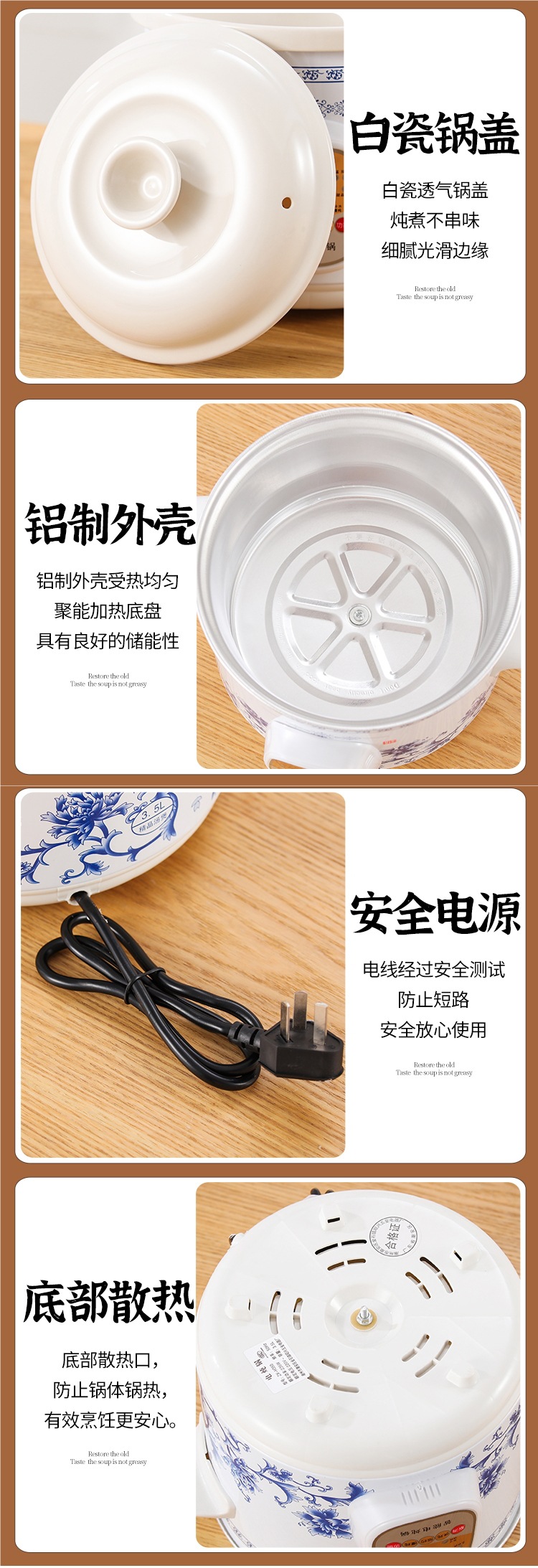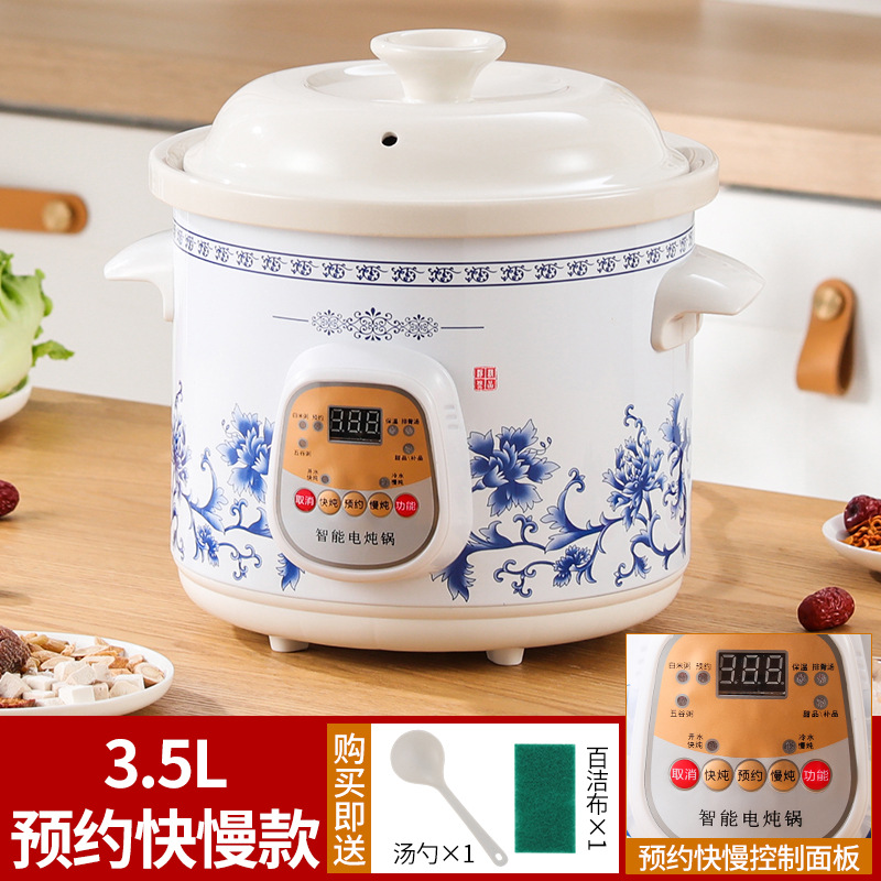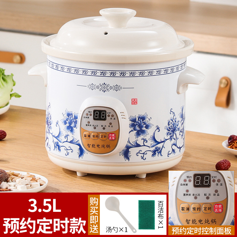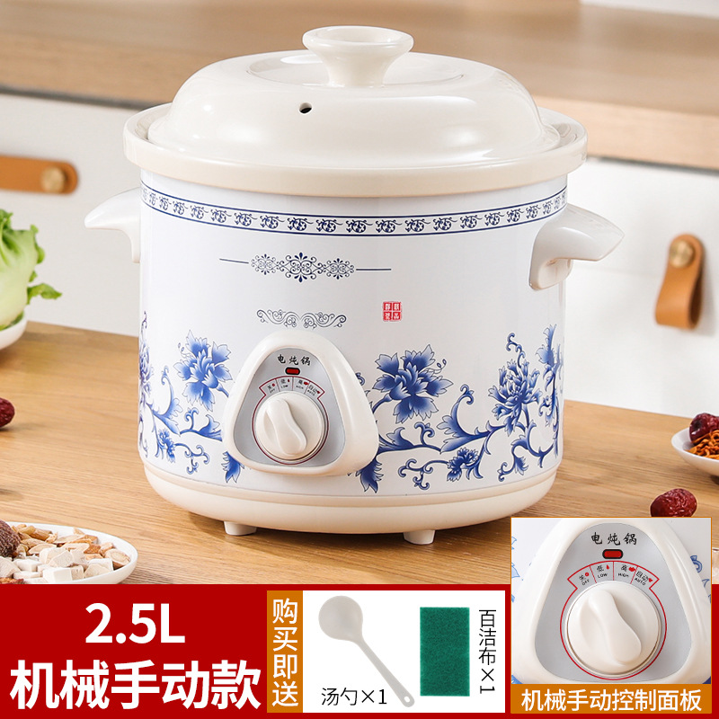 가정용 흰색 도자기 건강 전기 스튜 냄비 수프 냄비 보라색 캐서롤 자동 미니 세라믹 스튜 수프 냄비 요리 죽스토어 가기