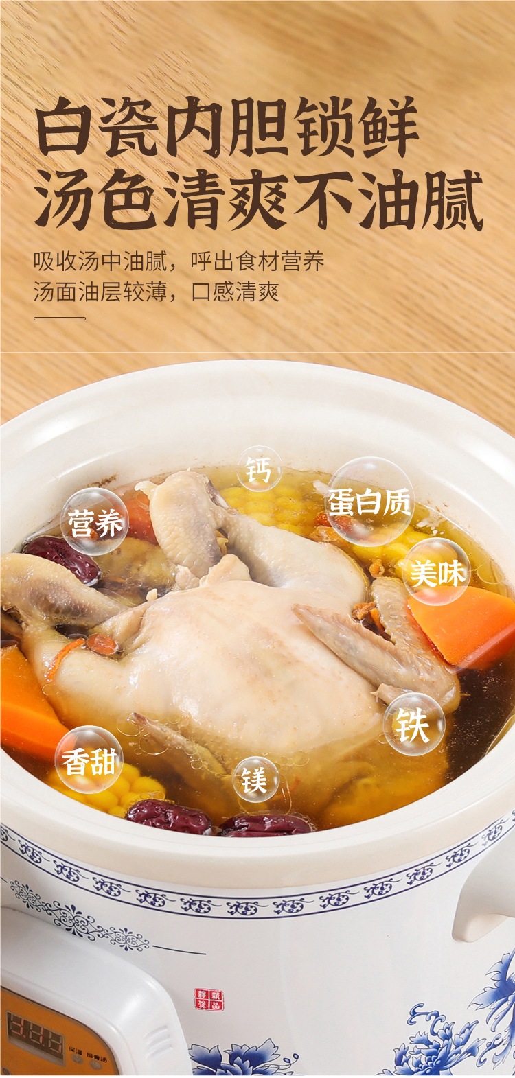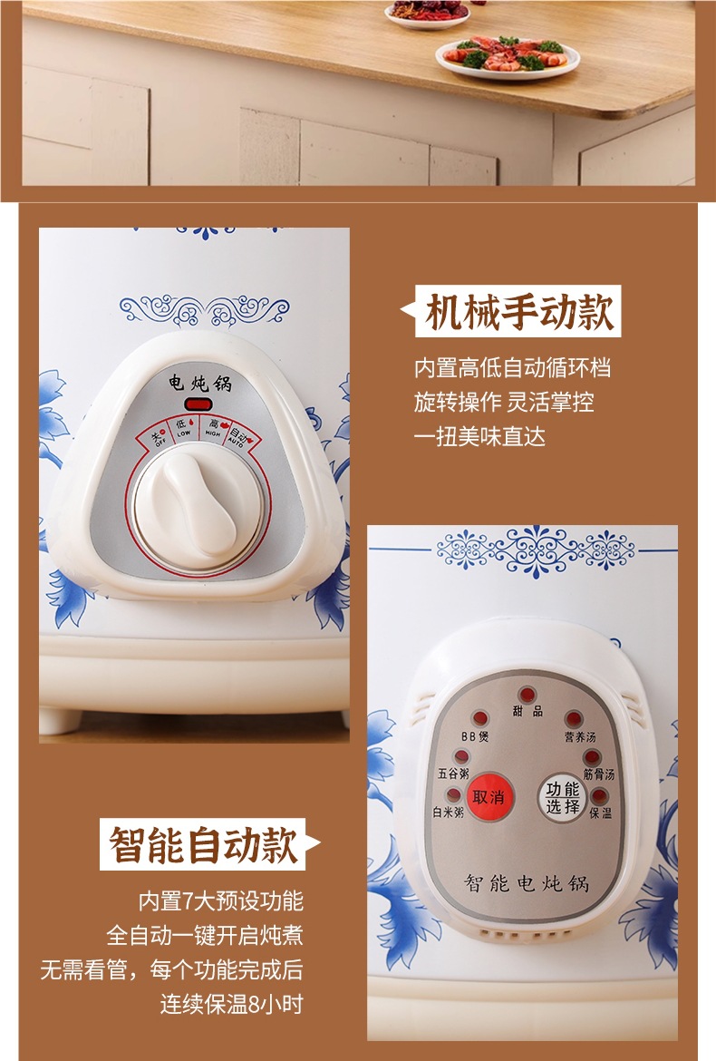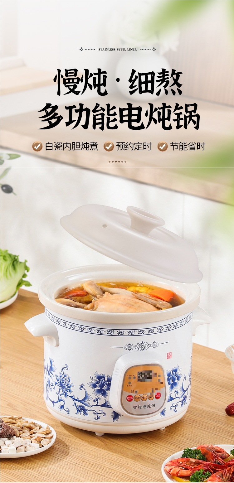 가정용 흰색 도자기 건강 전기 스튜 냄비 수프 냄비 보라색 캐서롤 자동 미니 세라믹 스튜 수프 냄비 요리 죽