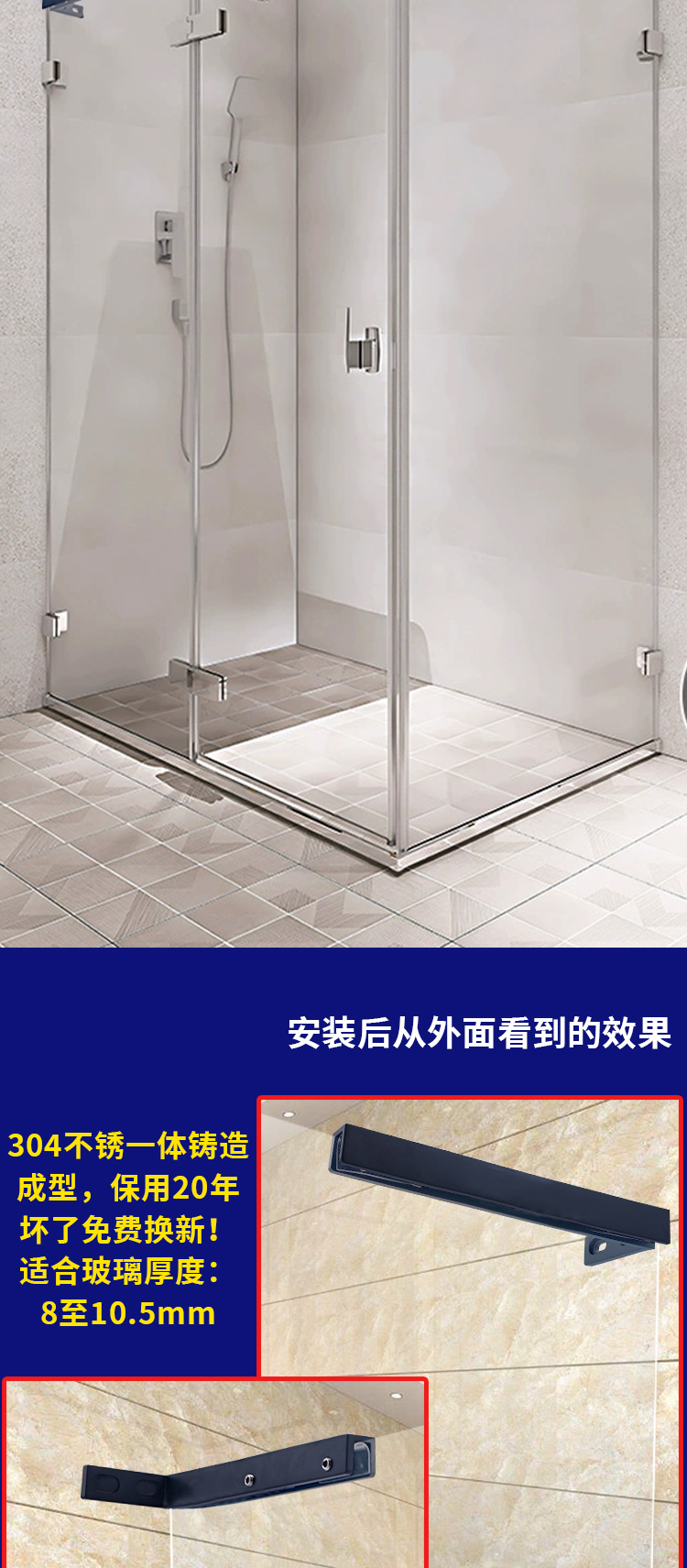 F * 프레임리스 샤워 룸 유리 도어 7 자 풀 바 스테인레스 스틸 욕실 파티션 고정 카드 유리 지지대스토어 가기