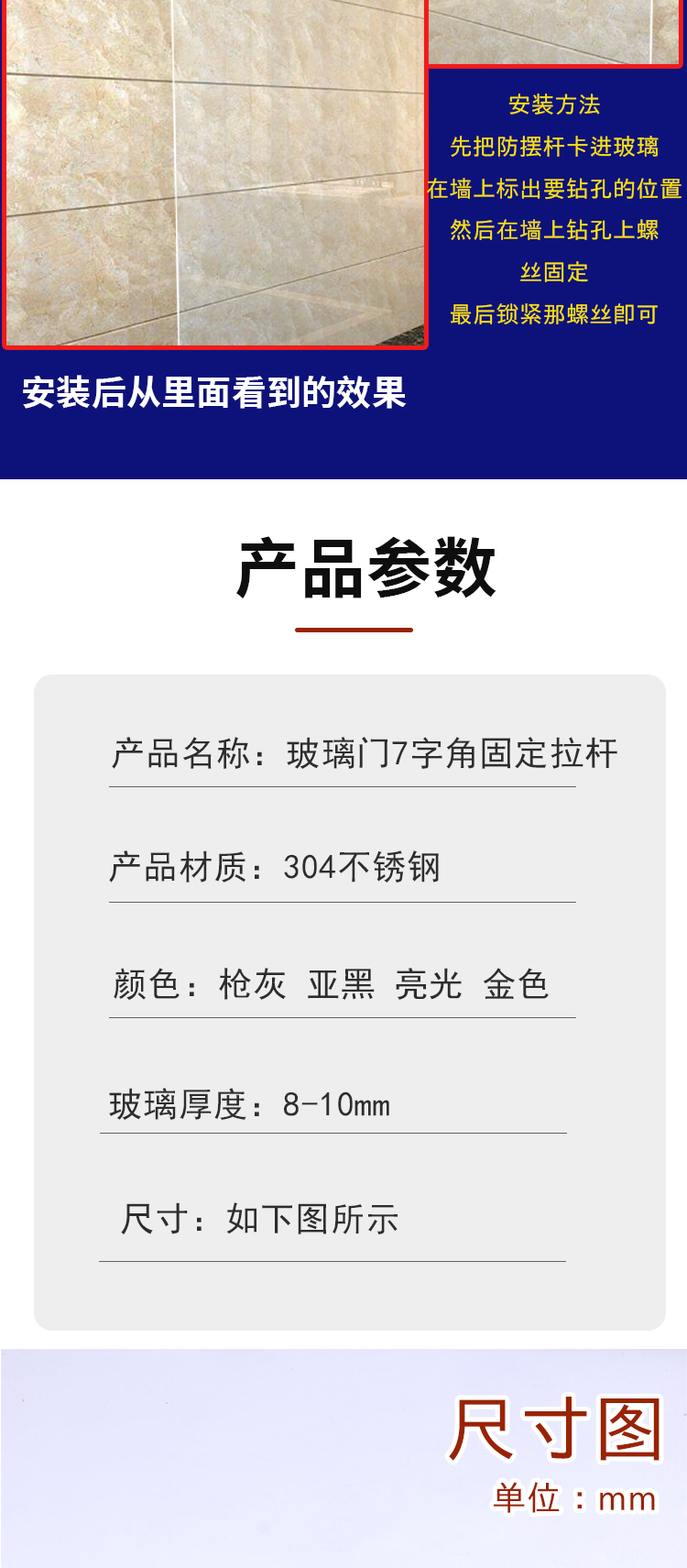 F * 프레임리스 샤워 룸 유리 도어 7 자 풀 바 스테인레스 스틸 욕실 파티션 고정 카드 유리 지지대