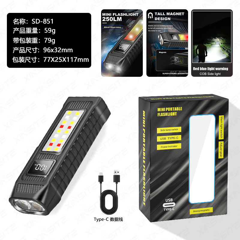 국경 간 손전등 야외 다기능 자석 이중 광원 조명 방수 강한 빛 장거리 휴대용 비상 작업 조명