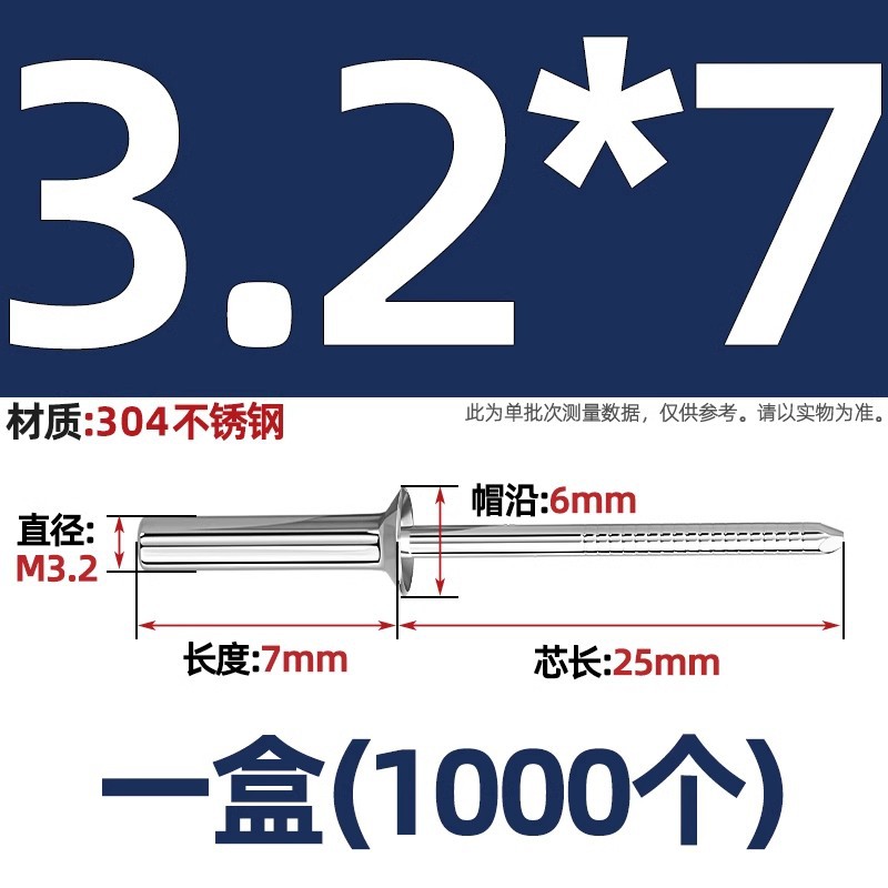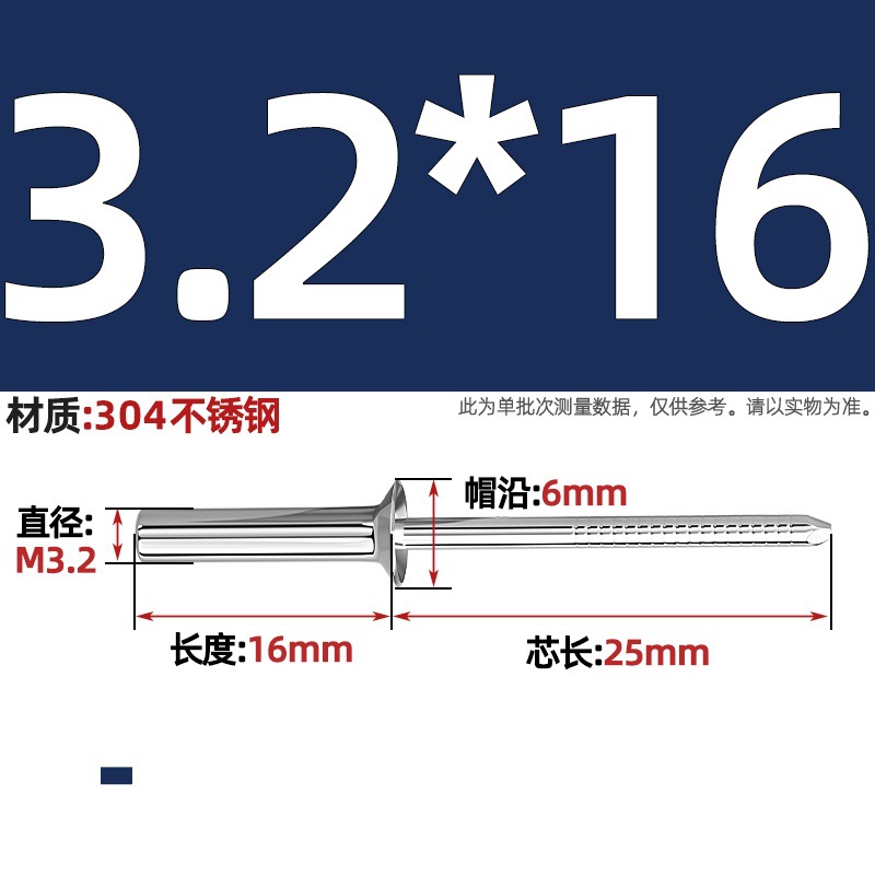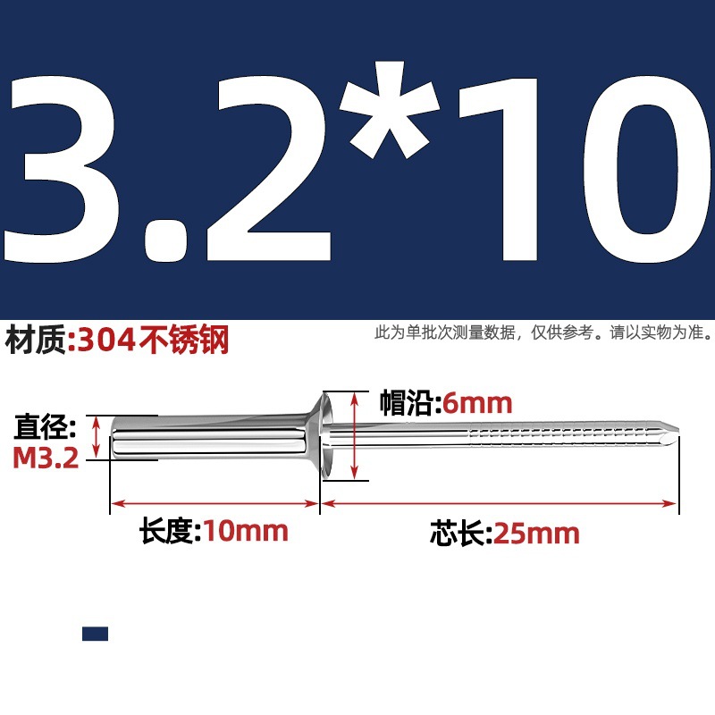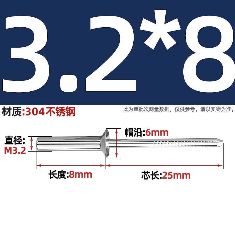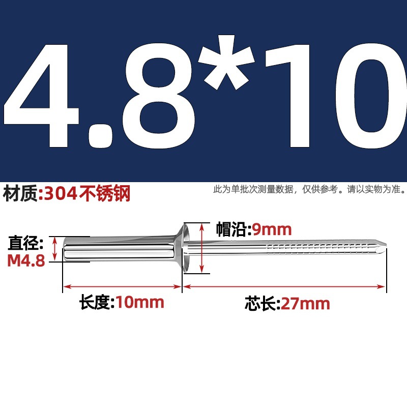 材质说明:该铆钉头部材质为304材质 抽芯为铁材质