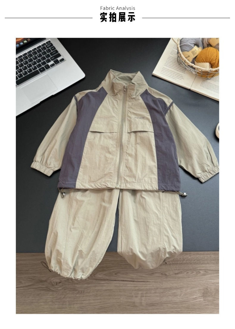 아동복 2025 새로운 가을 스타일 소년과 소녀 한국어 버전 컬러 블록 작업복 투피스 세트 아동용 지퍼 투피스 세트 유행