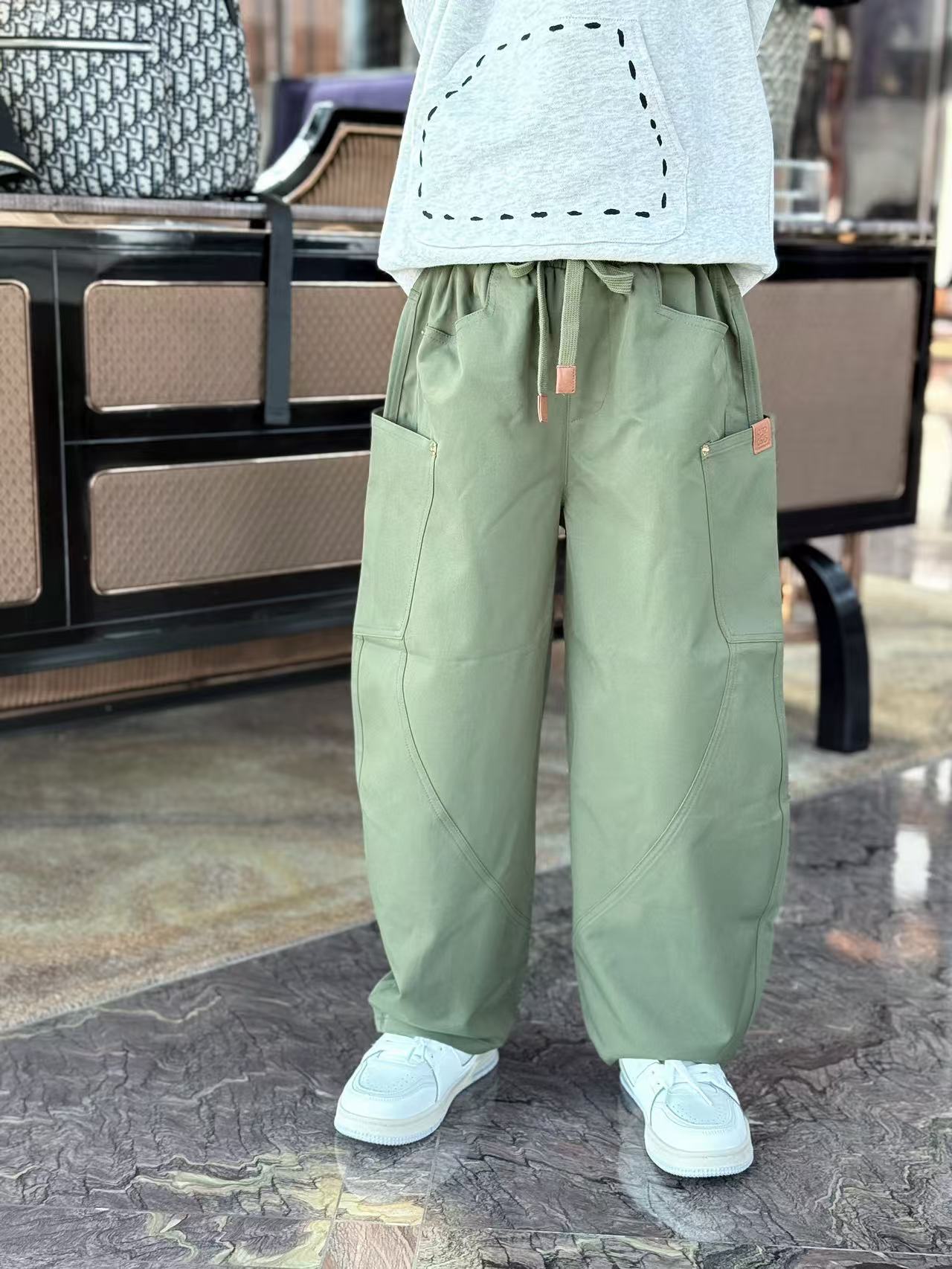 25 봄 새 소년과 소녀 2 색 툴링 마체 테 바지 캐주얼스토어 가기