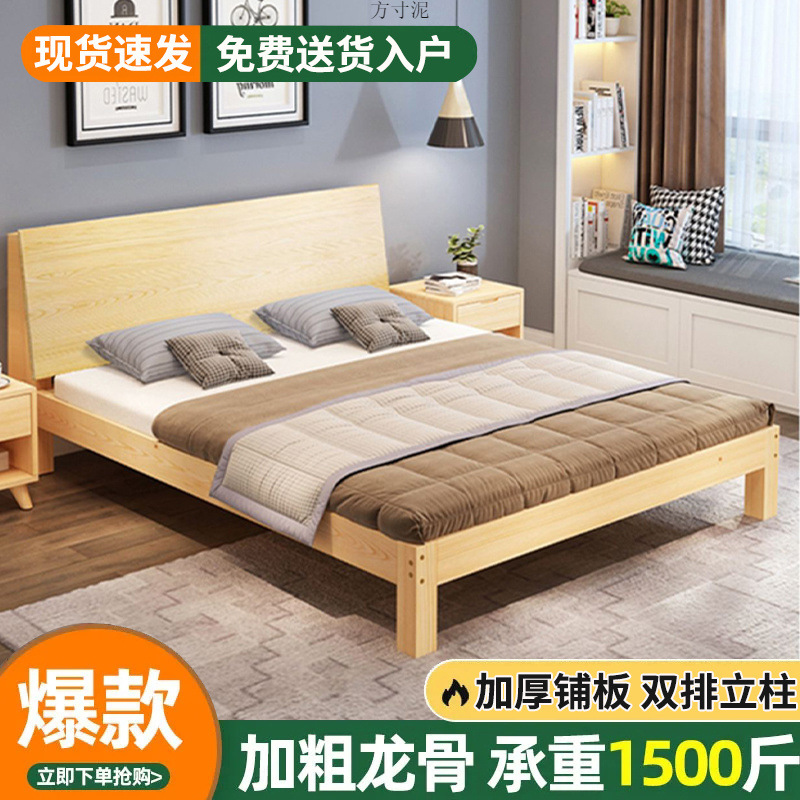 현대 간단한 단단한 나무 침대 마스터 침실 1.8 m 더블 침대 경제적 인 1.5 m 임대 룸 1m 싱글 침대 프레임 공급 체인스토어 가기