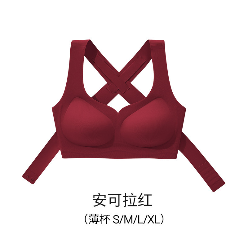 크로스 백 트레이스리스 속옷 여성 프론트 버클 풀 업 처지 방지 아름다운 등 교정 혹등 스포츠 브라스토어 가기