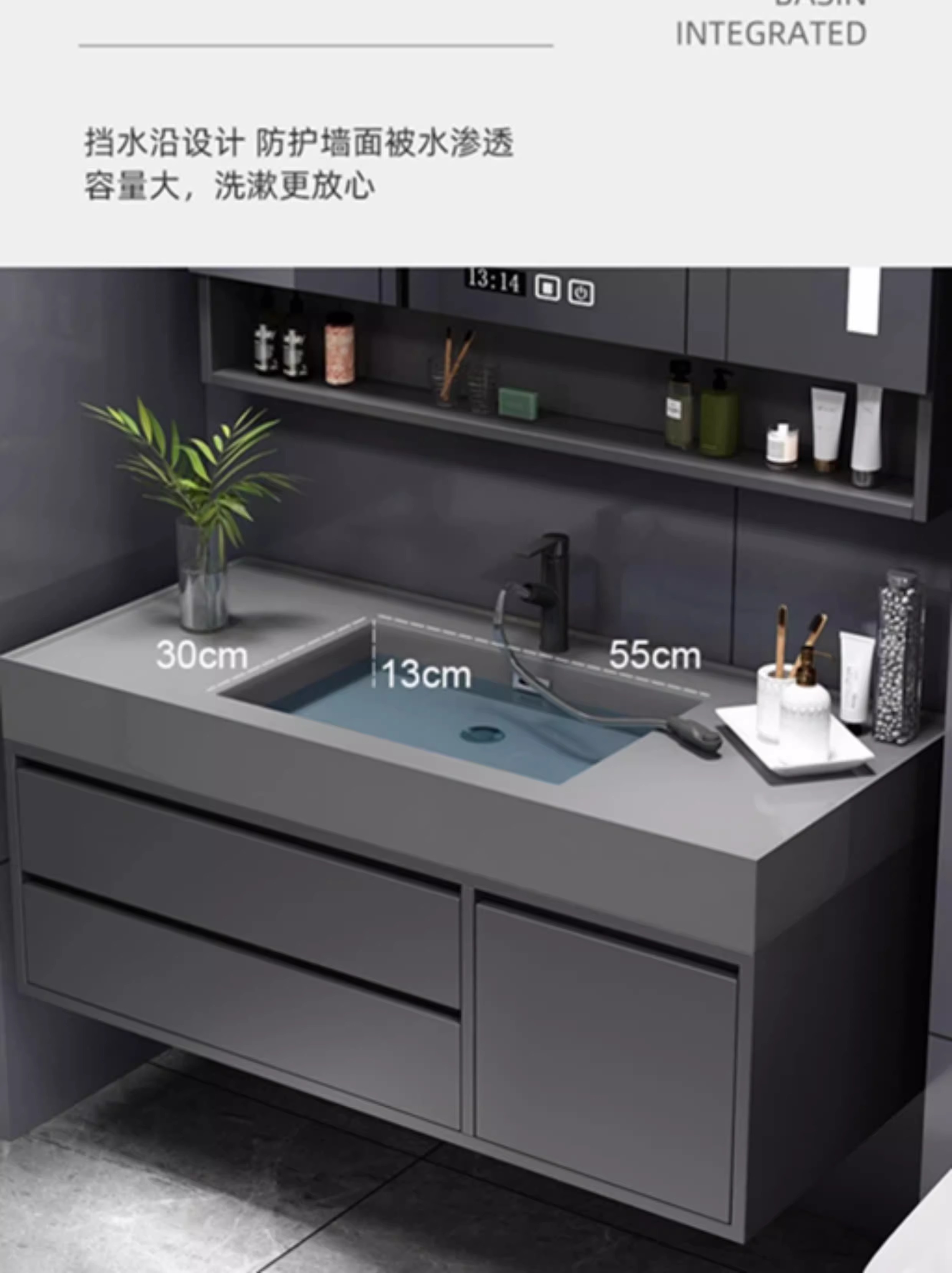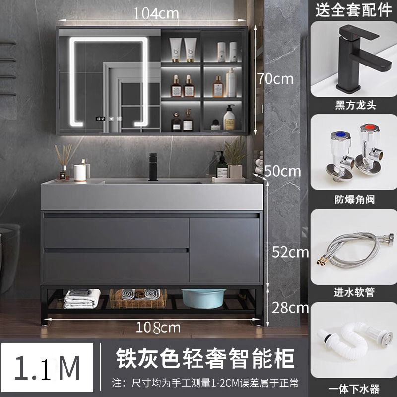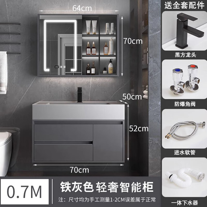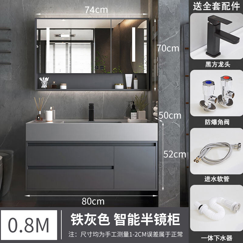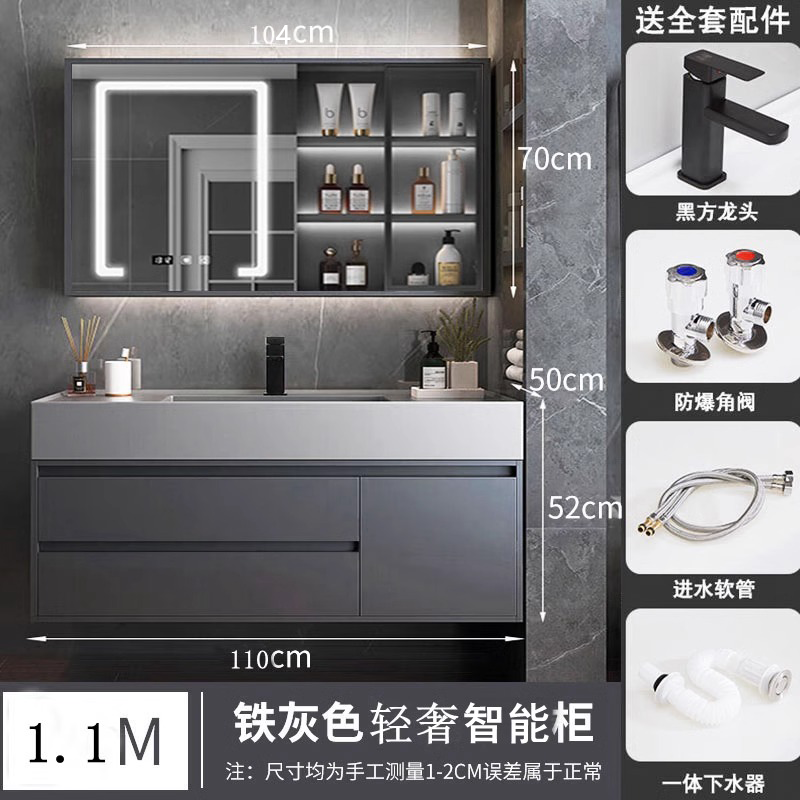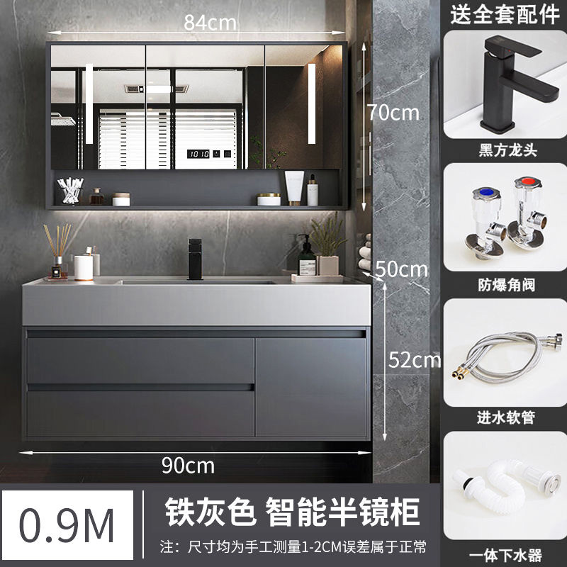 A8L 가벼운 럭셔리 나노 록 욕실 캐비닛 현대 간단한 단단한 나무 지능형 조합 페이스 워시 분지 욕실 세척스토어 가기