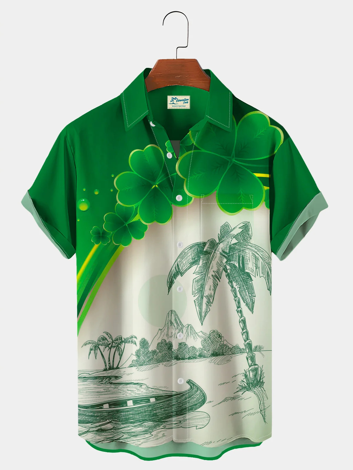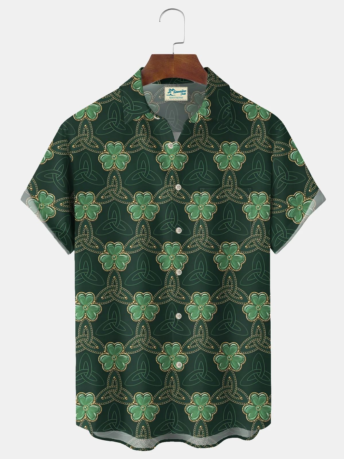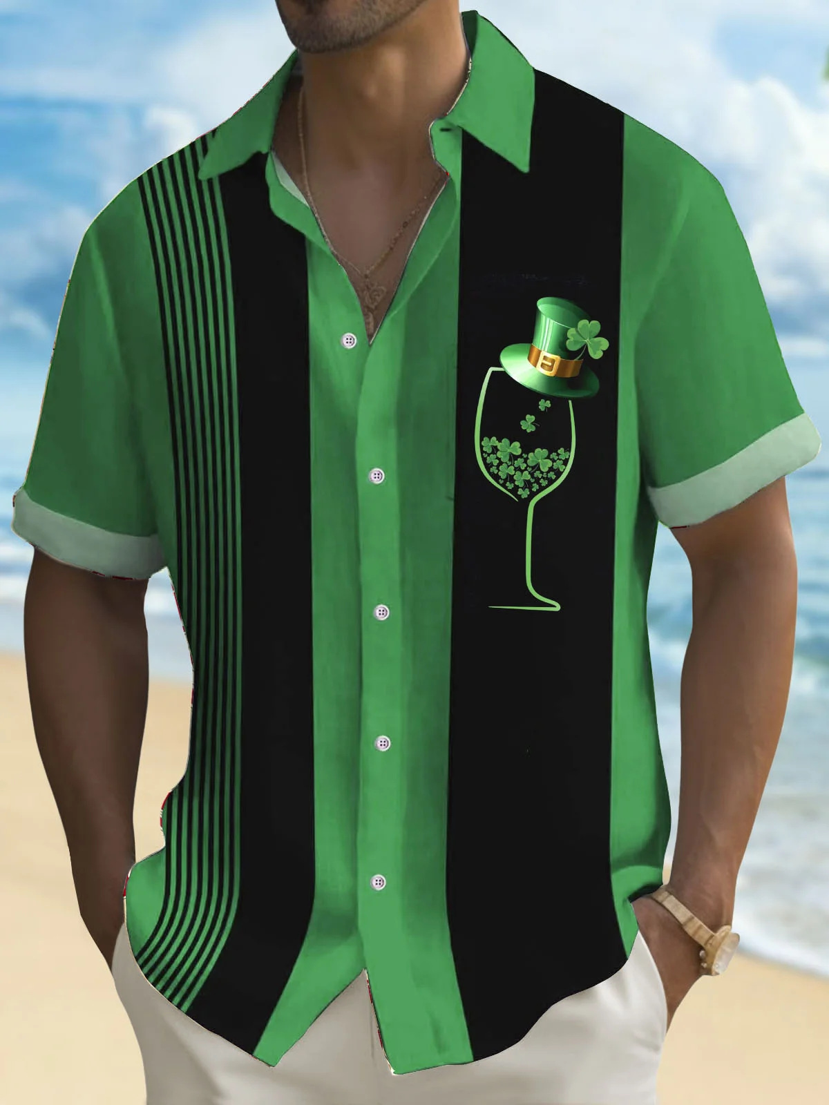 유럽과 미국의 세인트 패트릭의 날 빈티지 샴록 와인 유리 인쇄 하와이 셔츠 플러스 사이즈 휴일 짧은 소매 셔츠스토어 가기