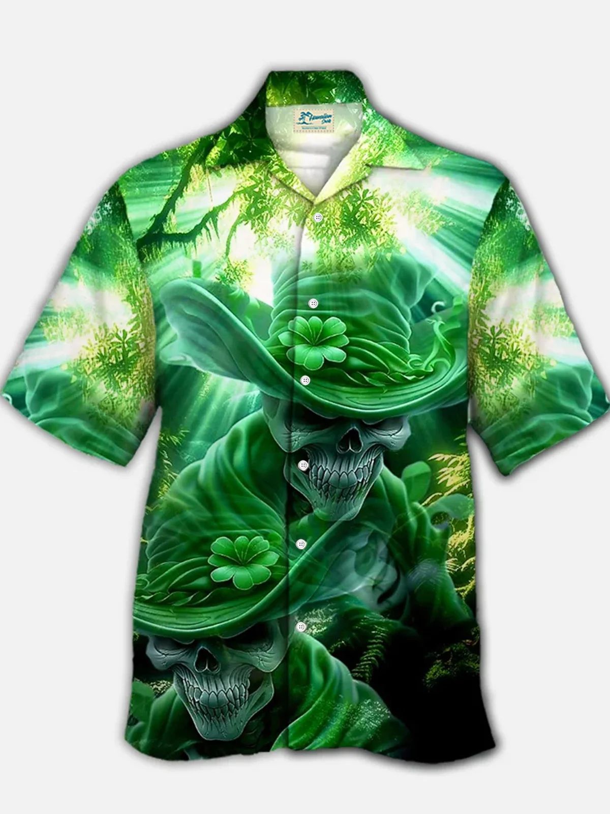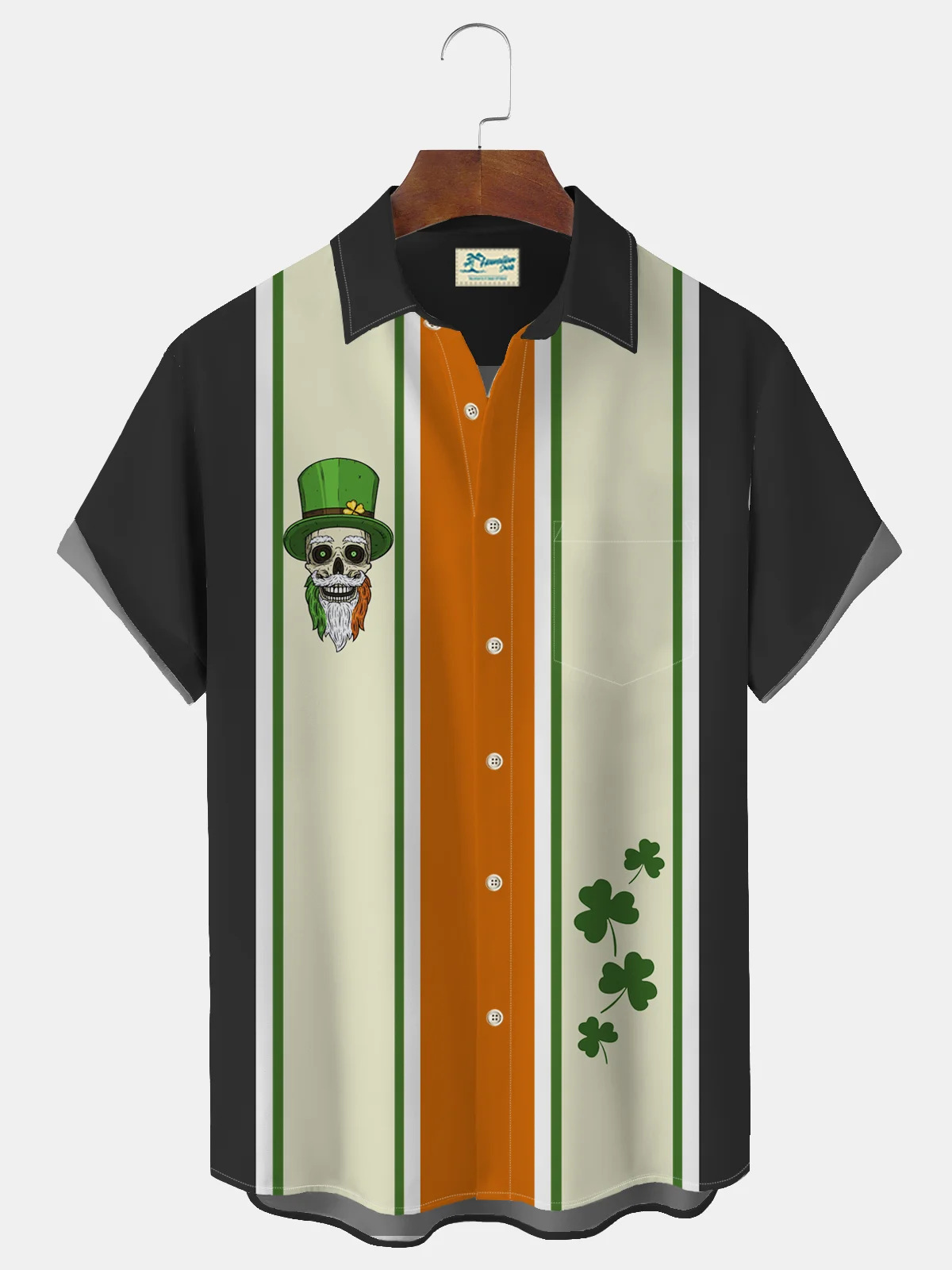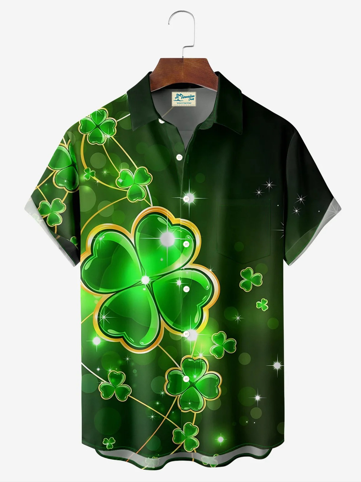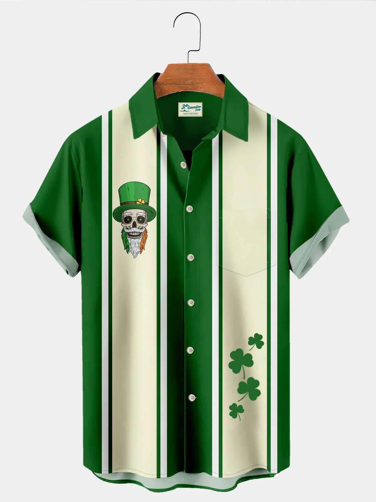 유럽과 미국의 세인트 패트릭의 날 빈티지 샴록 와인 유리 인쇄 하와이 셔츠 플러스 사이즈 휴일 짧은 소매 셔츠스토어 가기