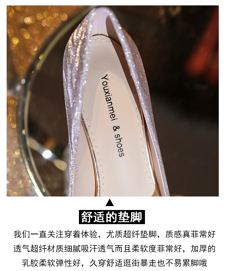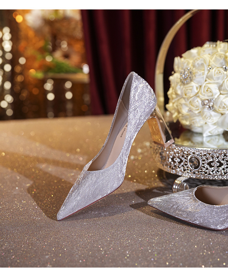 7777D 하이힐 여성 스퀸 신부 들러리 신발 웨딩 슈즈 새로운 두꺼운 힐 포인팅 디자인 센스 틈새 우아한 싱글 슈즈스토어 가기